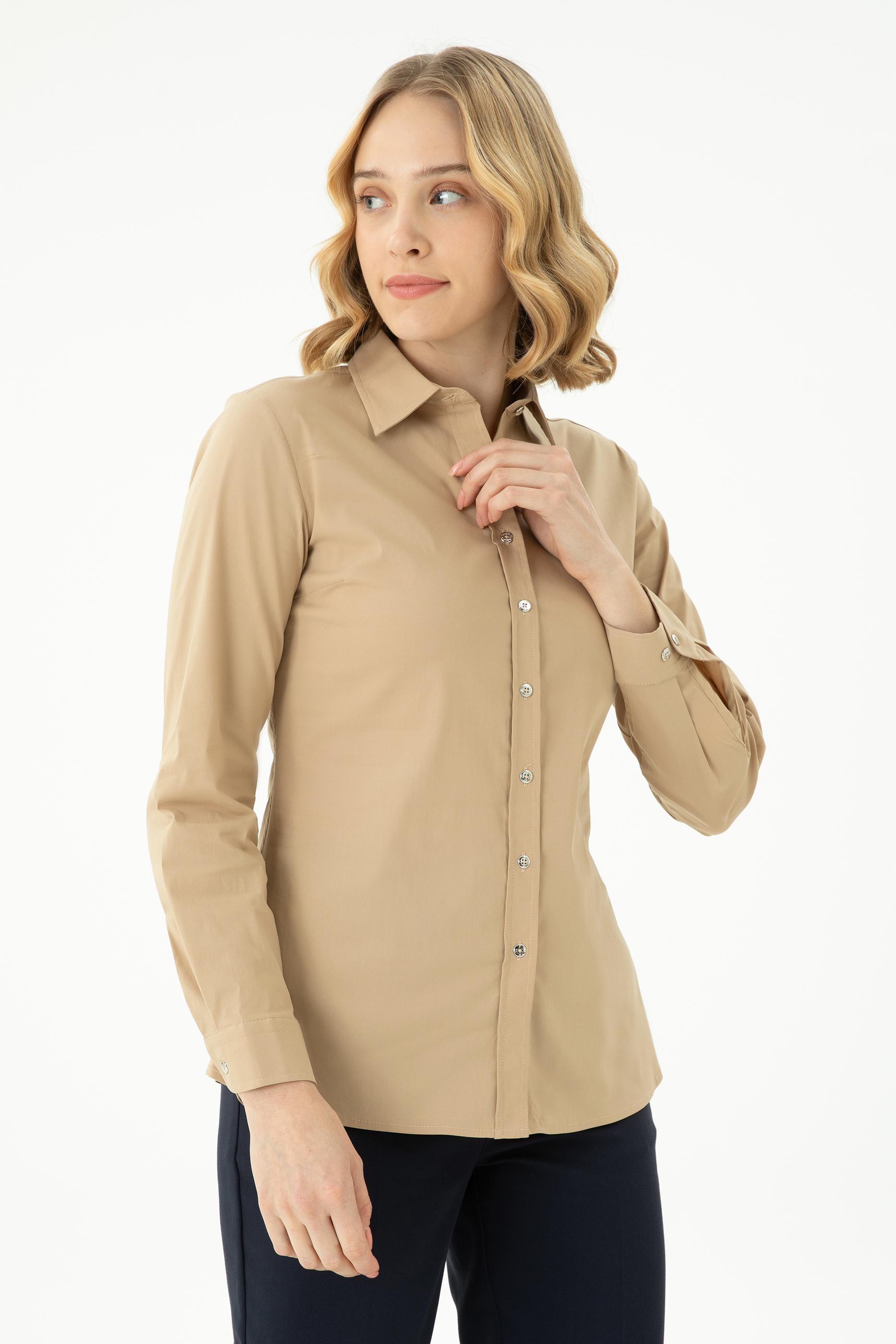 - Kadın Kum Uzun Kollu Basic Gömlek
