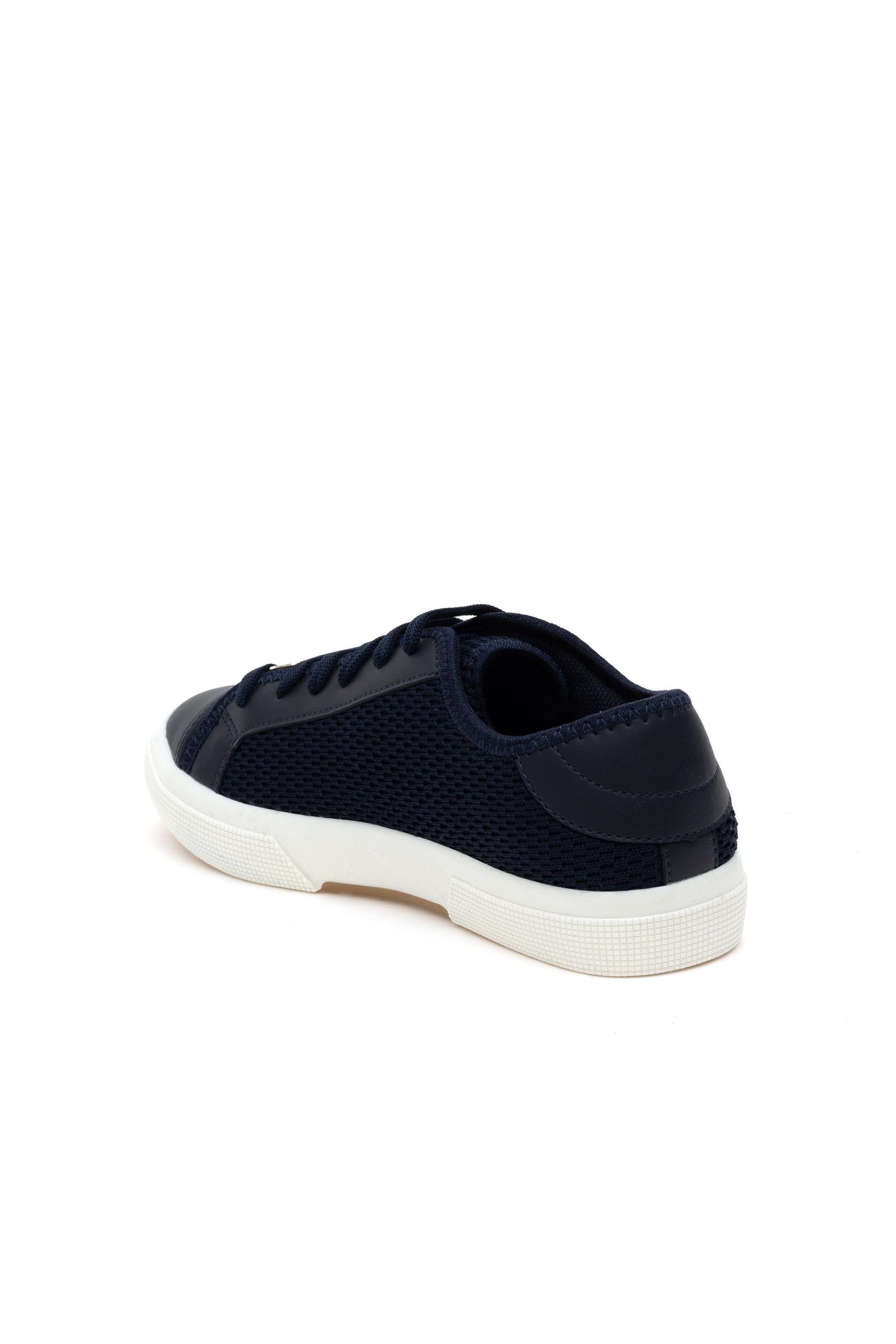 Lacivert rengiyle modern bir tarzı yansıtan kadın sneaker, %100 pamuk malzemesiyle konforlu bir kullanım sunar. Günlük giyimden şık kombinlere kadar geniş bir kullanım alanı sağlar. Üst yüzeyi nefes alabilen pamuk kumaştan oluşur ve ayağı rahatsız etmeden doğal bir uyum sunar. Burun kısmı dayanıklı ve pürüzsüz bir yapıya sahiptir, böylece uzun süreli kullanımda formunu korur. Yan panellerde yer alan örgü detayları, hafiflik ve esneklik kazandırarak hareket özgürlüğü sağlar. Bağcıklarıyla kişiye özel bir sıkılık ayarı yapılabilirken, dil kısmında ve yan tarafında bulunan logo detayı tasarıma şık bir karakter katar. Taban yapısı konfor ve dayanıklılığı bir araya getirir. Kaliteli kauçuktan üretilen dış taban, zemin tutuşunu güçlendirerek güvenli bir yürüyüş sunar. Orta tabandaki hafif dolgu, gün boyu rahat bir his sağlayarak ayağın doğal hareketini destekler. Beyaz taban rengi, lacivert üst yüzeyle mükemmel bir kontrast oluşturarak dinamik ve modern bir görünüm sunar. Sneaker modeli, şehir hayatının temposuna uyum sağlarken stil sahibi bir duruş sergilemek isteyenler için ideal bir tercih olur.