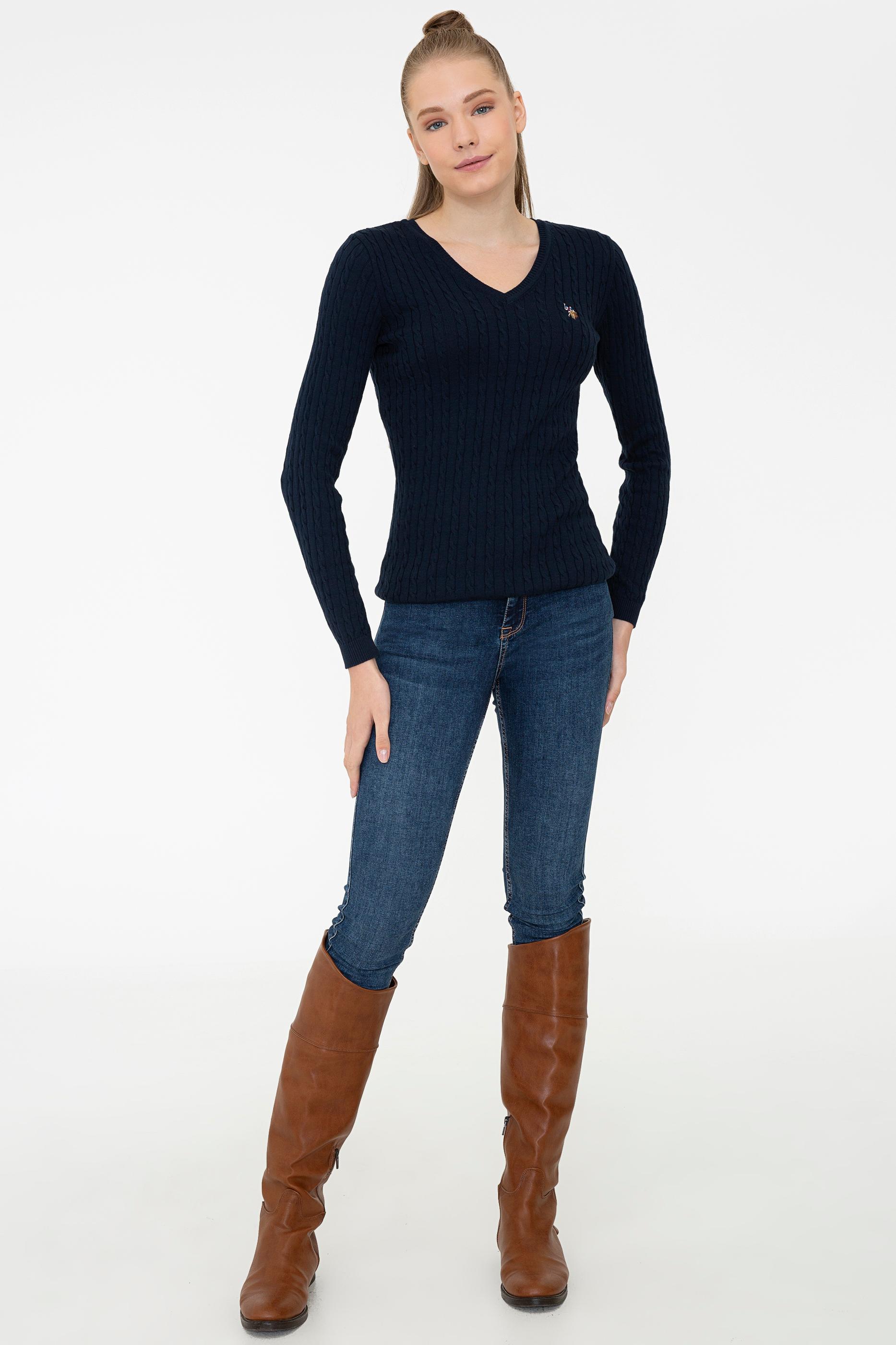 Basic kadın triko kazaklar sonbahar ve kış günlerinin vazgeçilmez kıyafet parçaları olarak gardıroplarda yerini alır. Bu tasarımlarla her an şık görünmek istiyorsanız U.S. Polo ASSN. kalitesinden faydalanabilirsiniz. Slim fit kadın triko kazağımız kombininizdeki diğer parçalarla bütünleşerek genel anlamda stil bir ambiyans kazanmanızı sağlar. V yaka kadın triko kazak modelimiz %100 pamuk karışımlı kumaşıyla cildinizdeki nem dengesini kontrol altına alır.