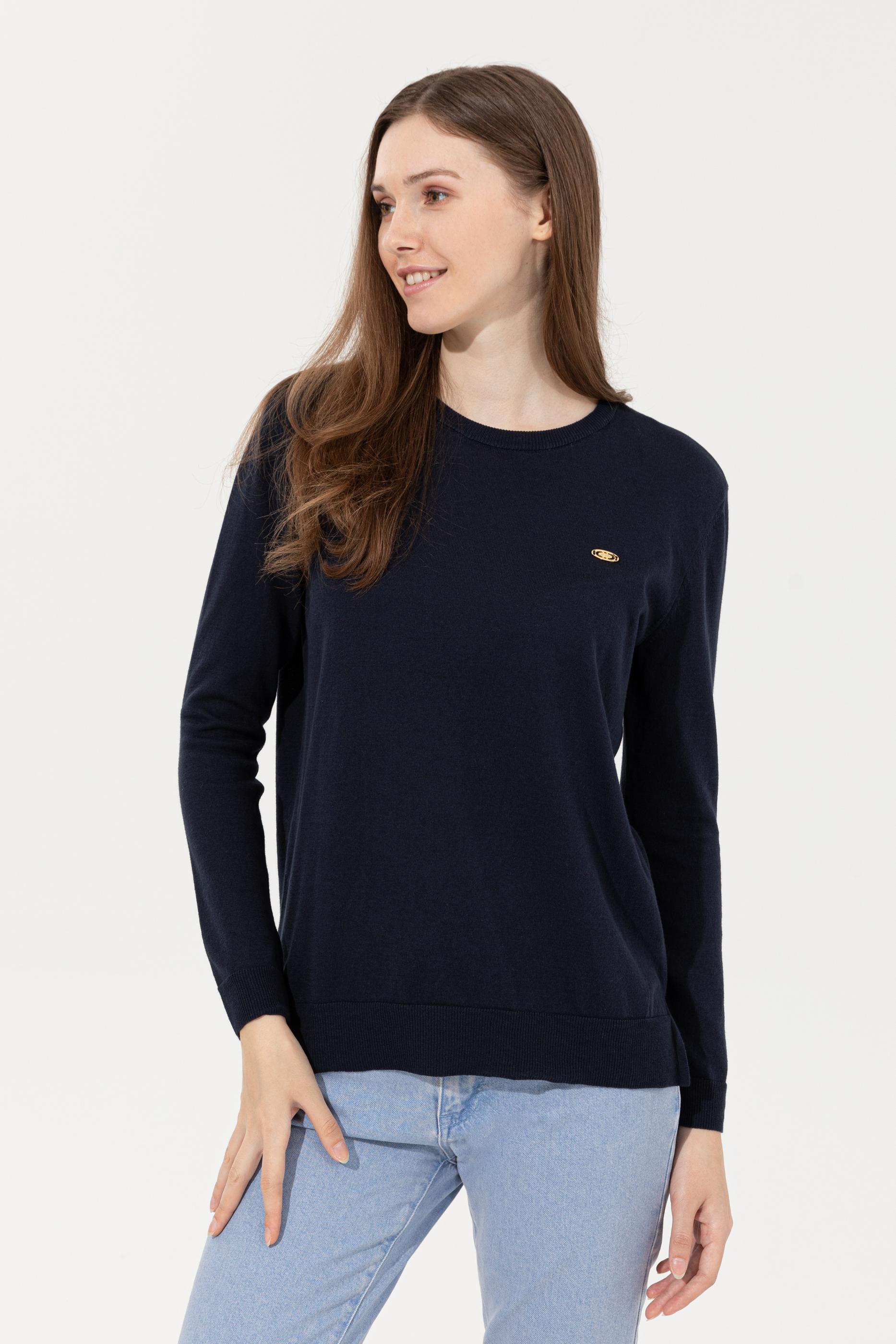 Kadın Lacivert Bisiklet Yaka Basic Kazak