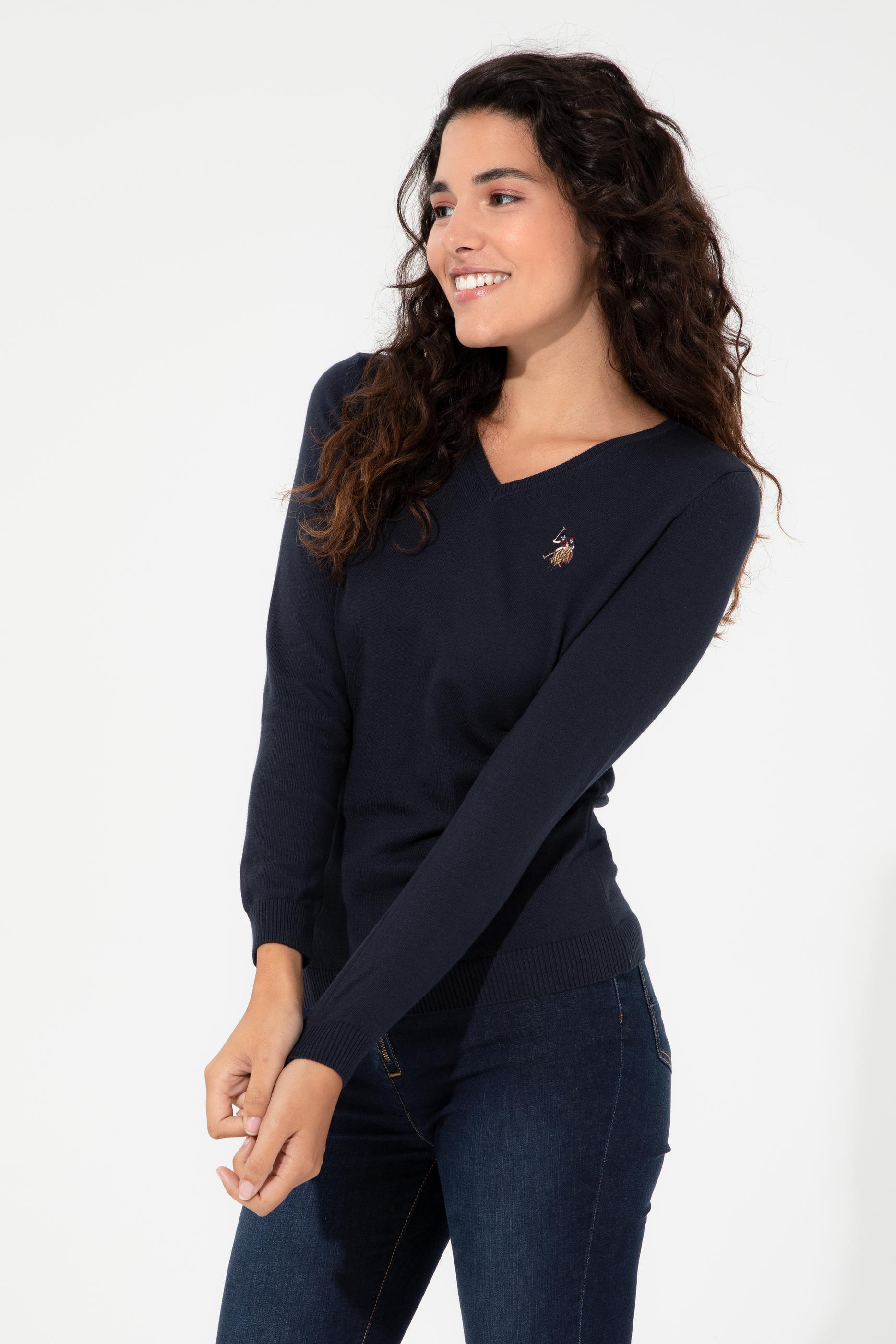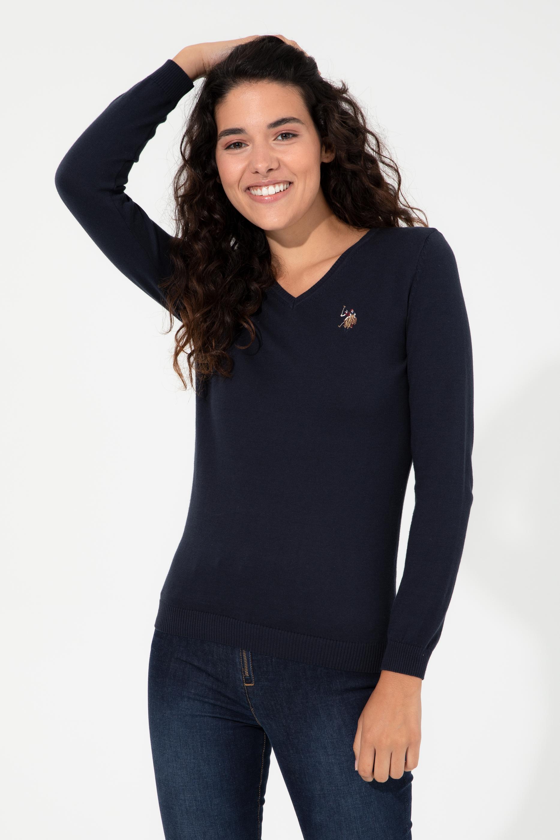 Kadın Lacivert Basic V Yaka Kazak