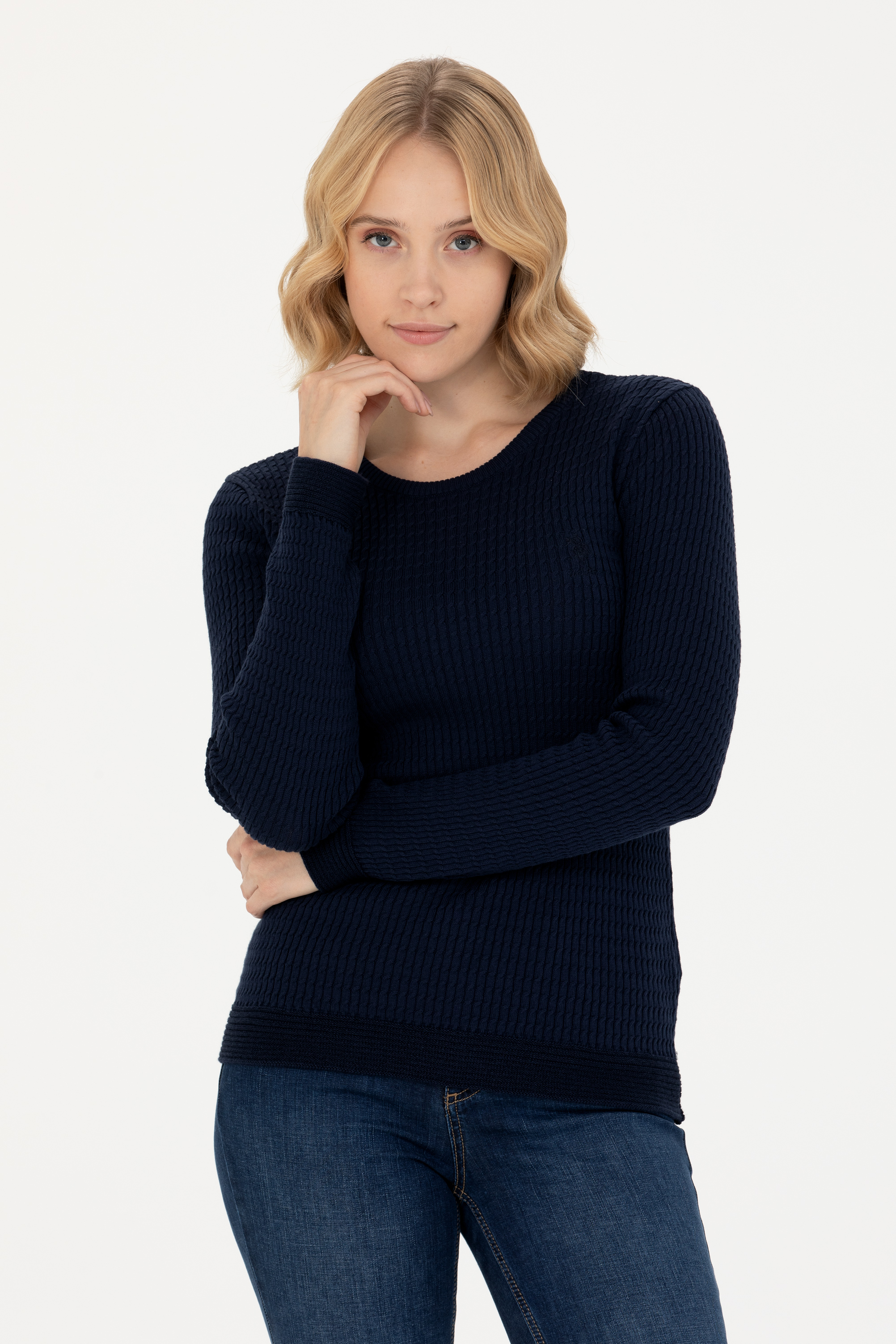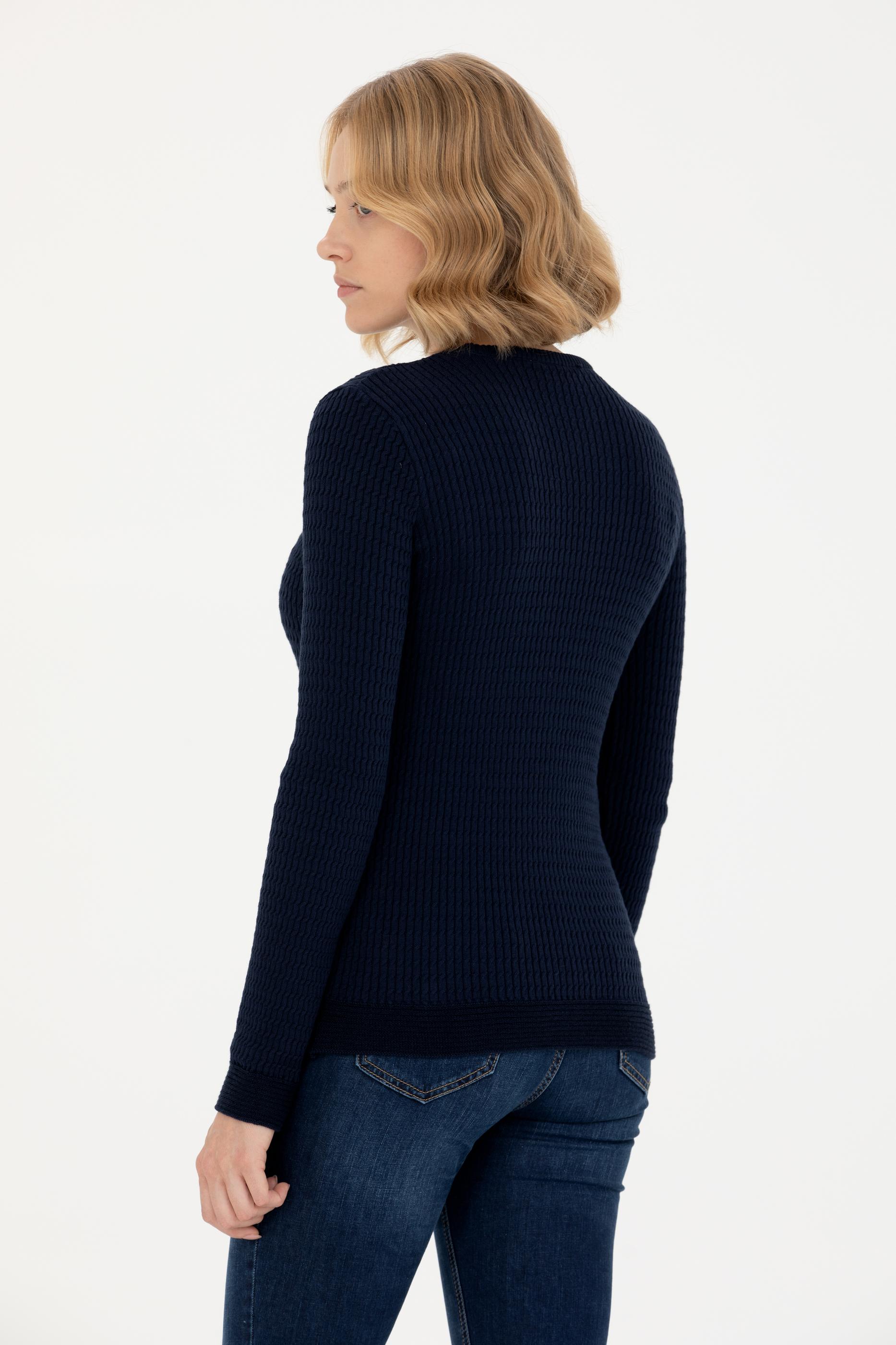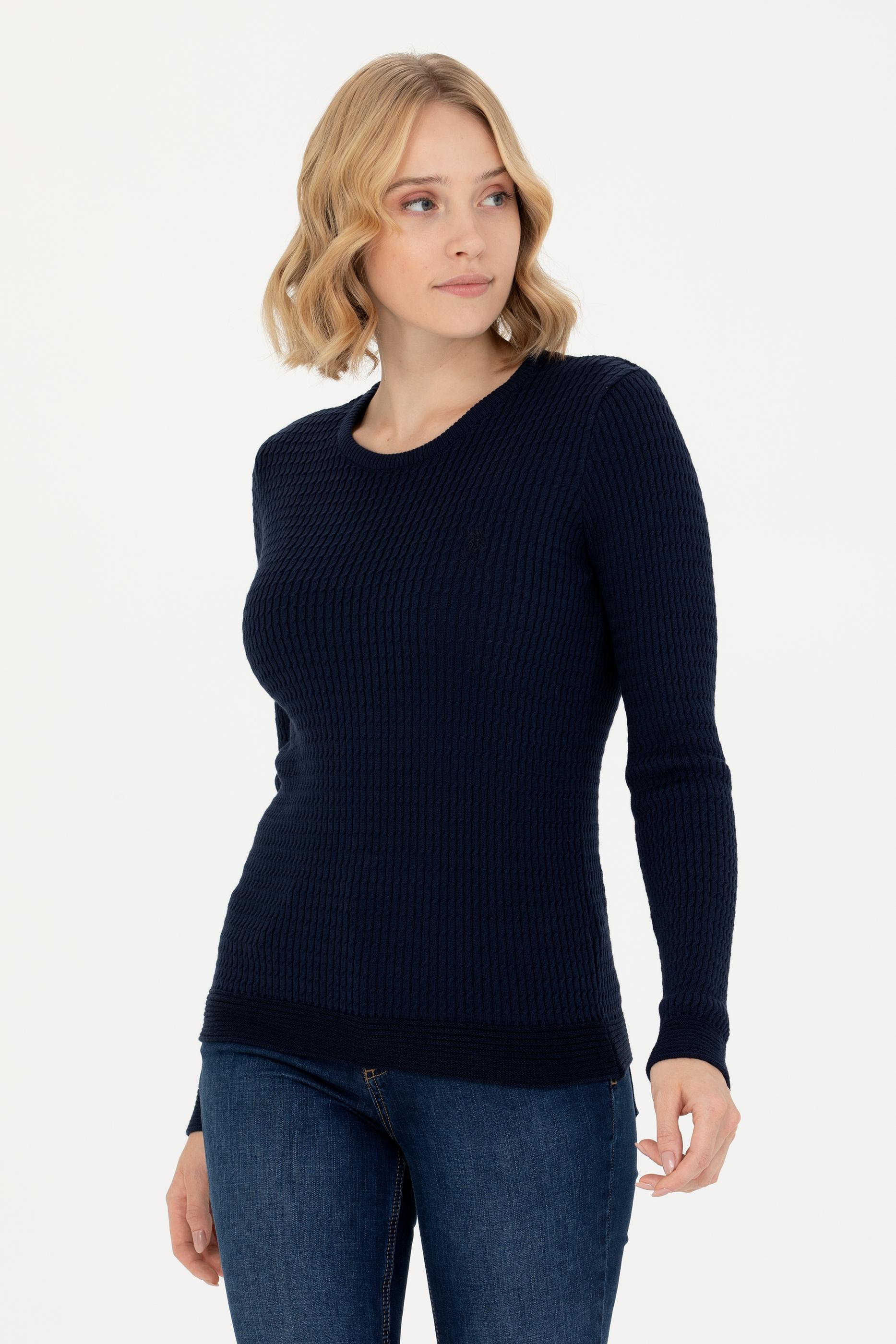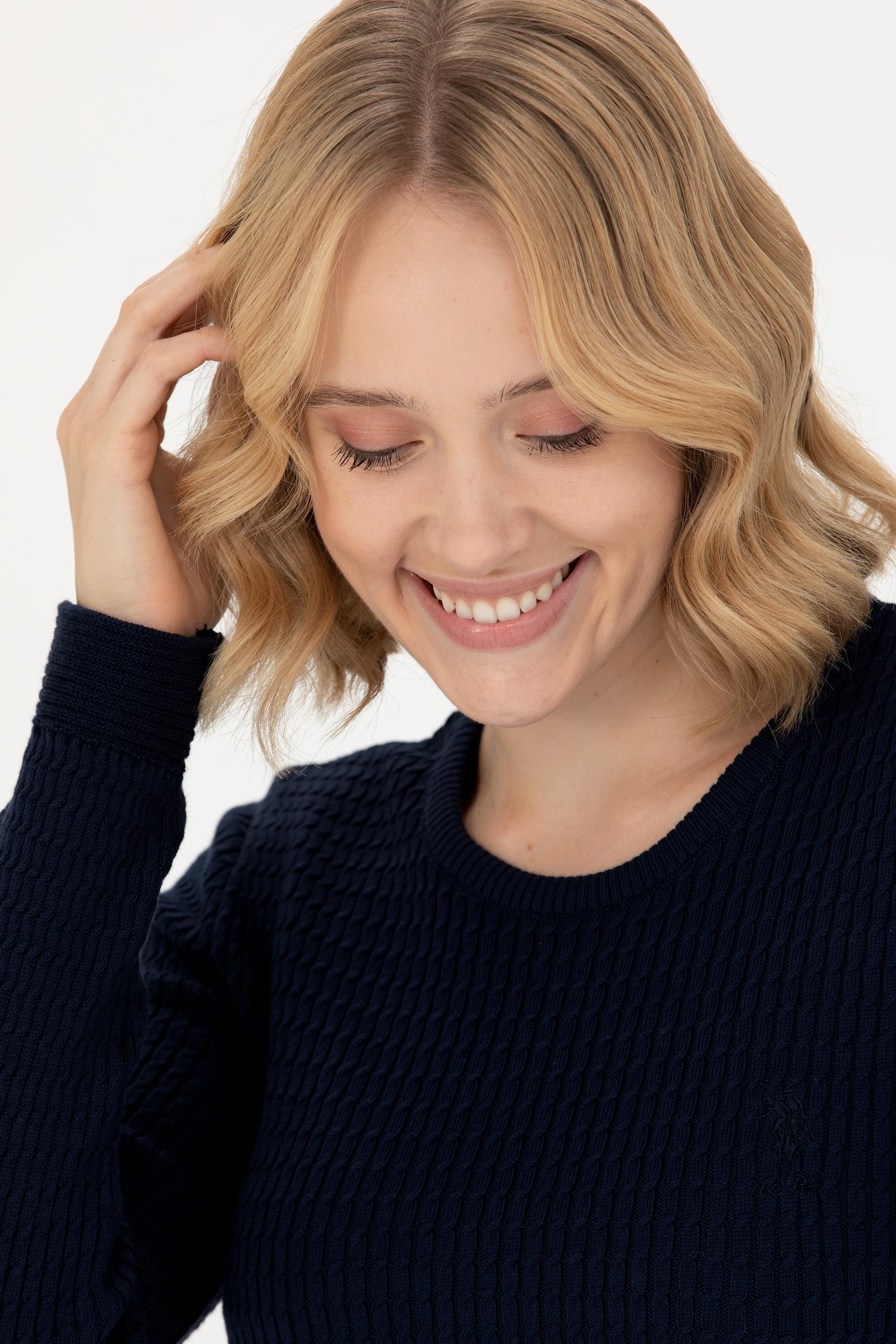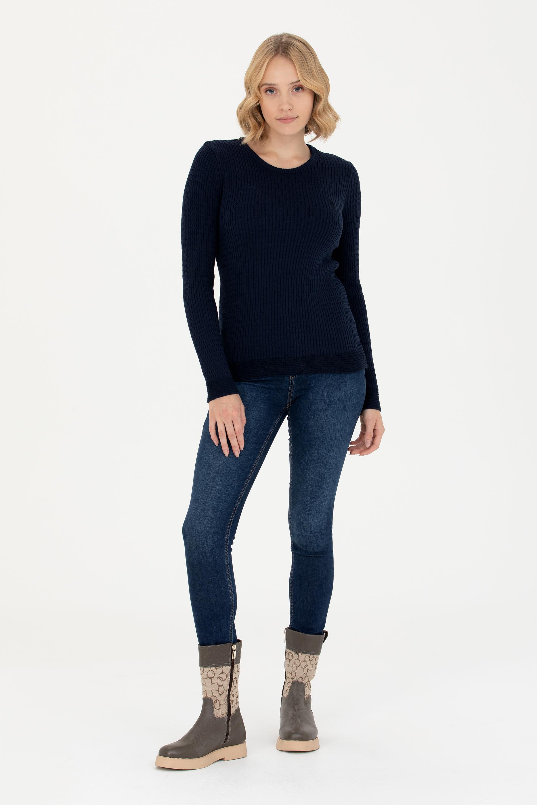Kadın Lacivert Bisiklet Yaka Basic Kazak
