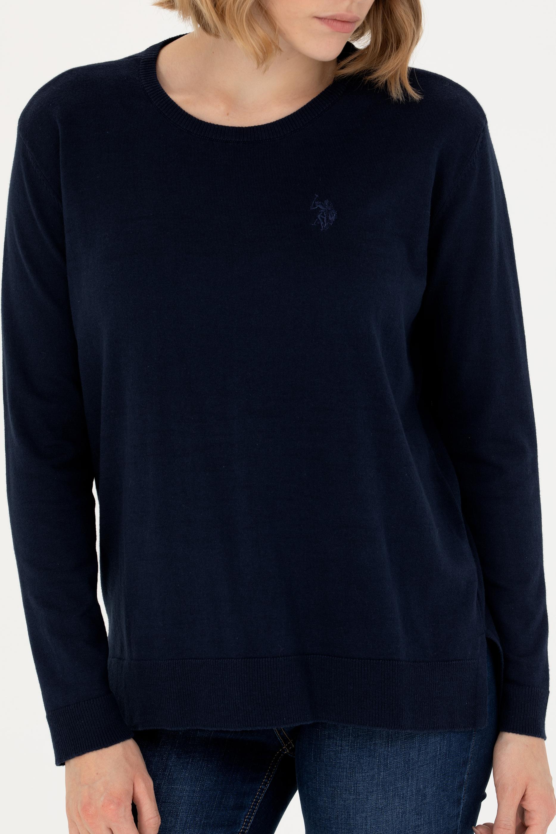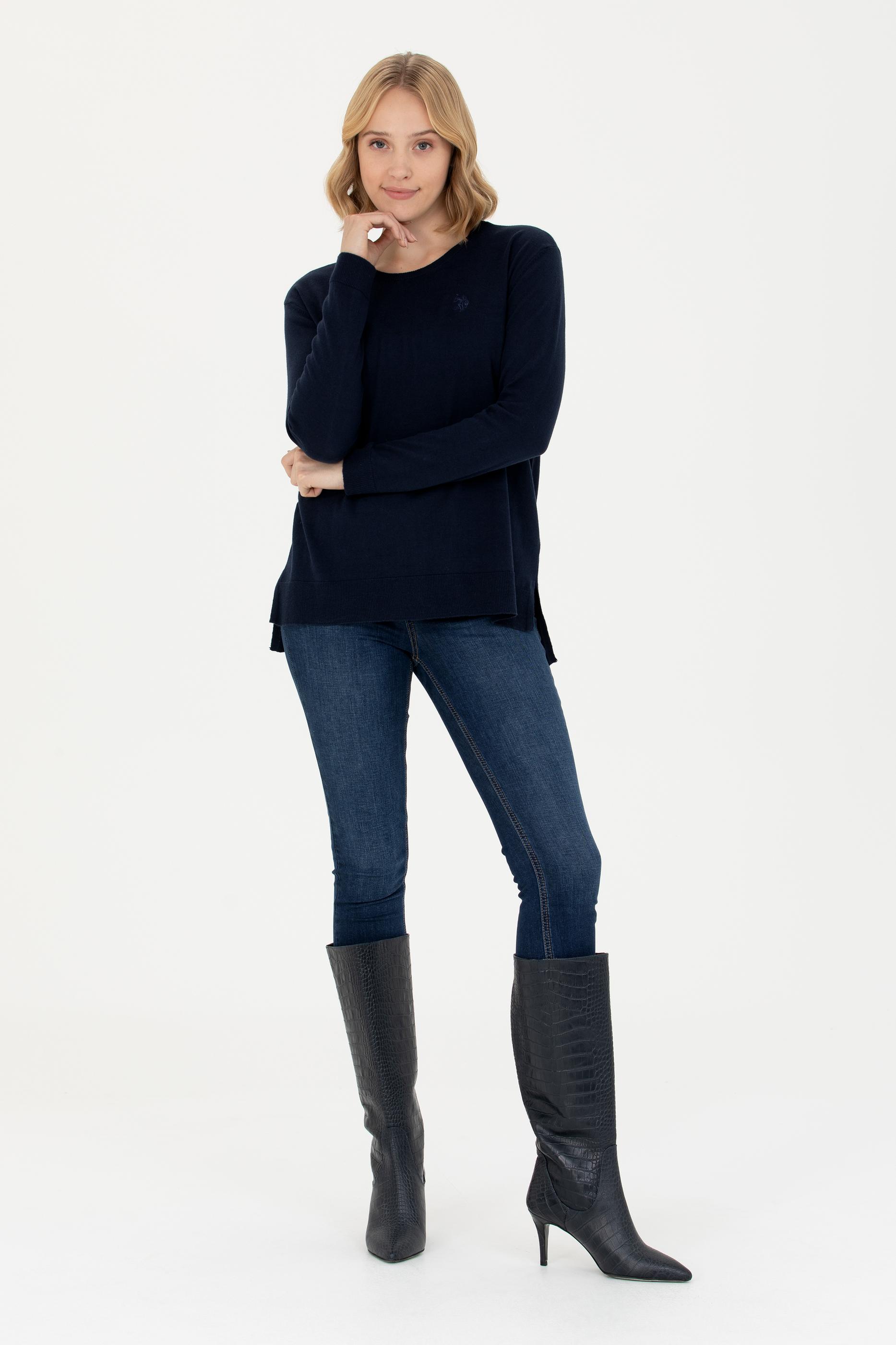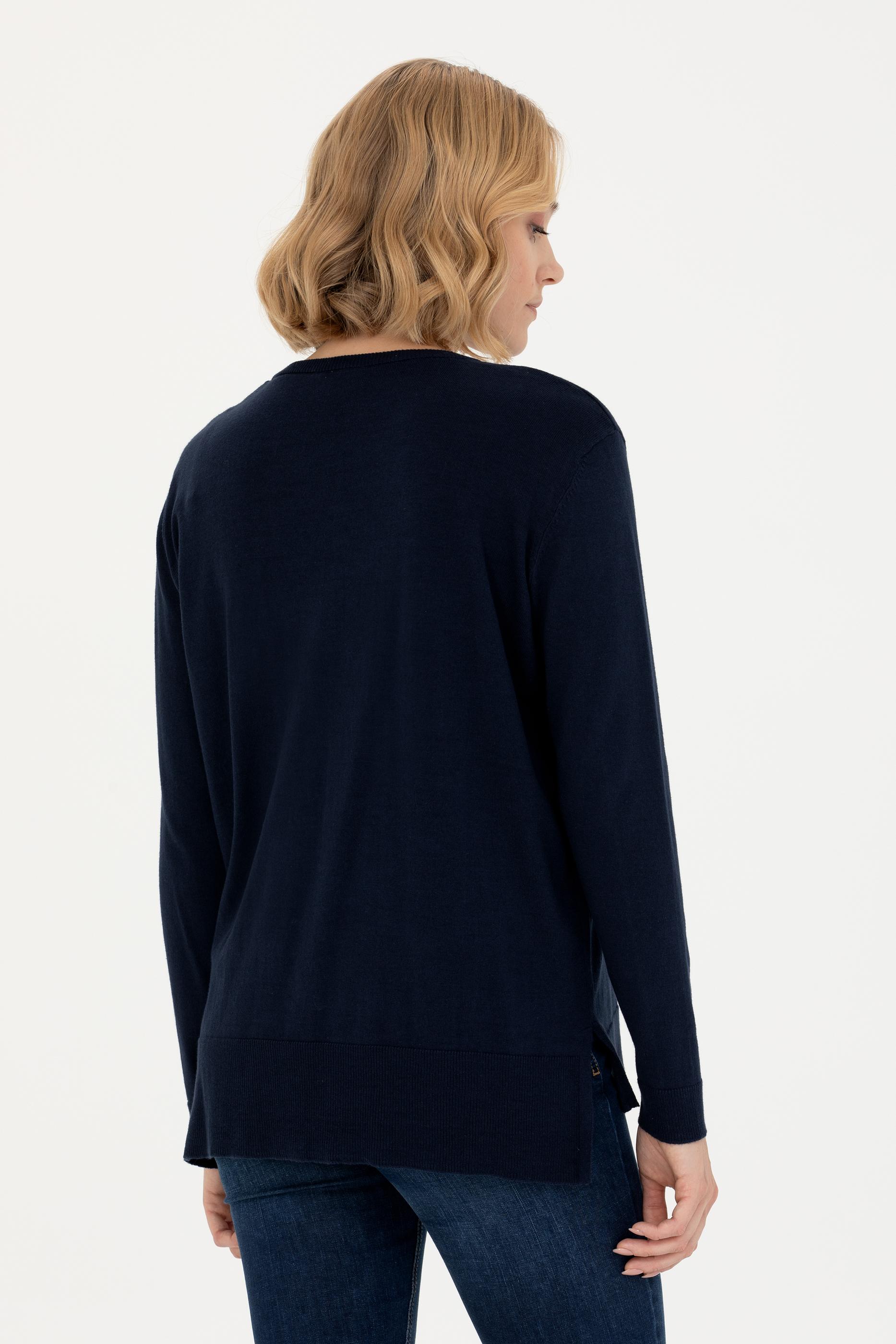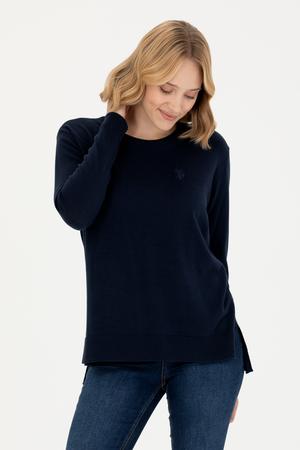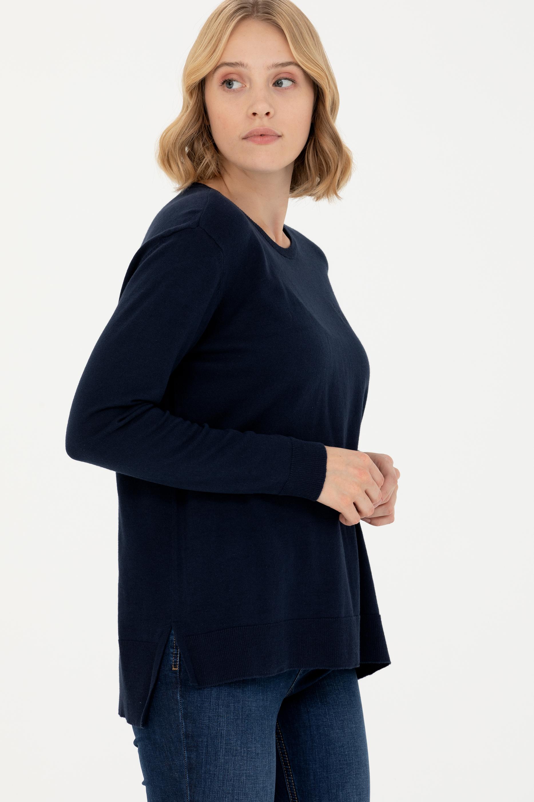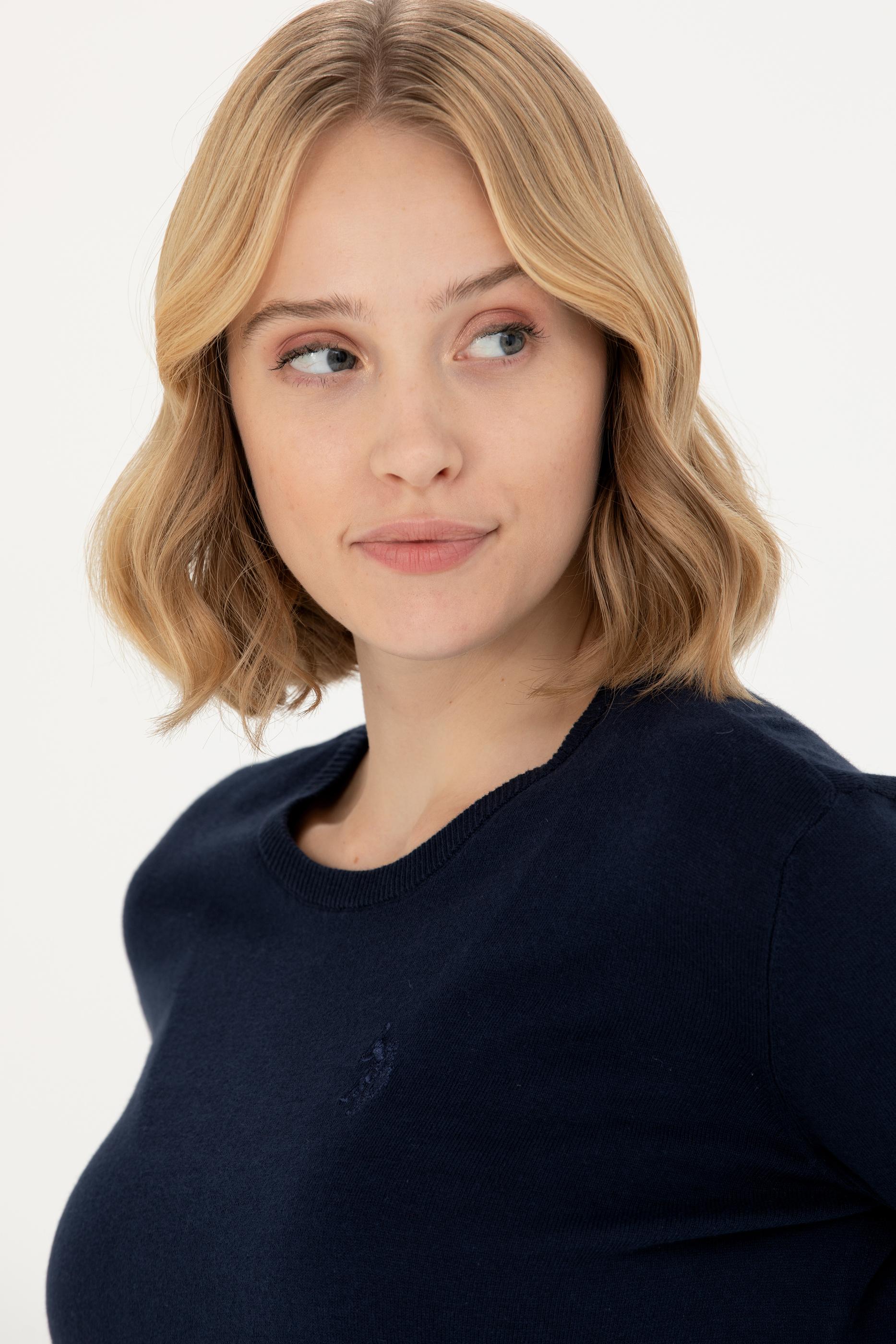 Kadın Lacivert Bisiklet Yaka Basic Kazak