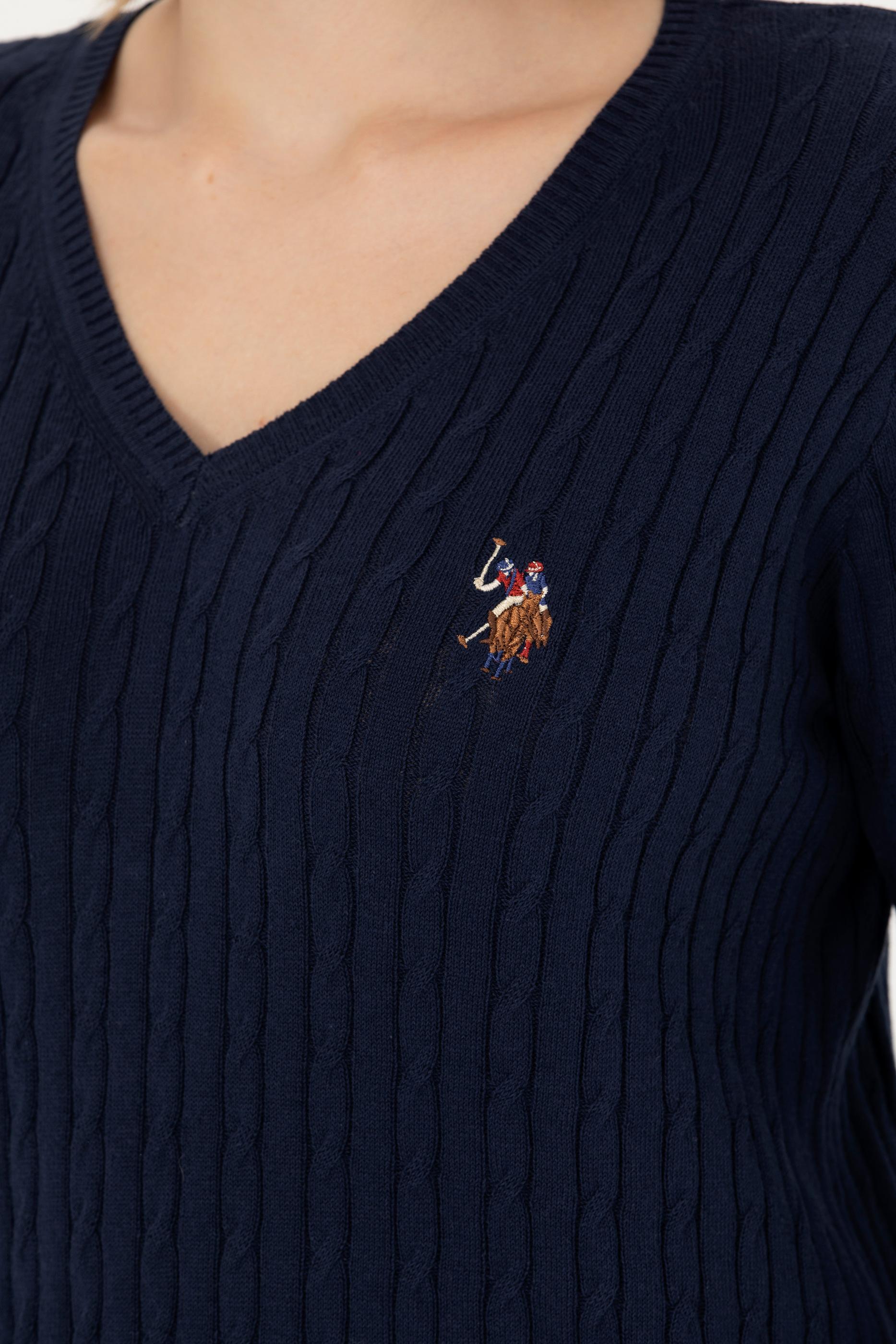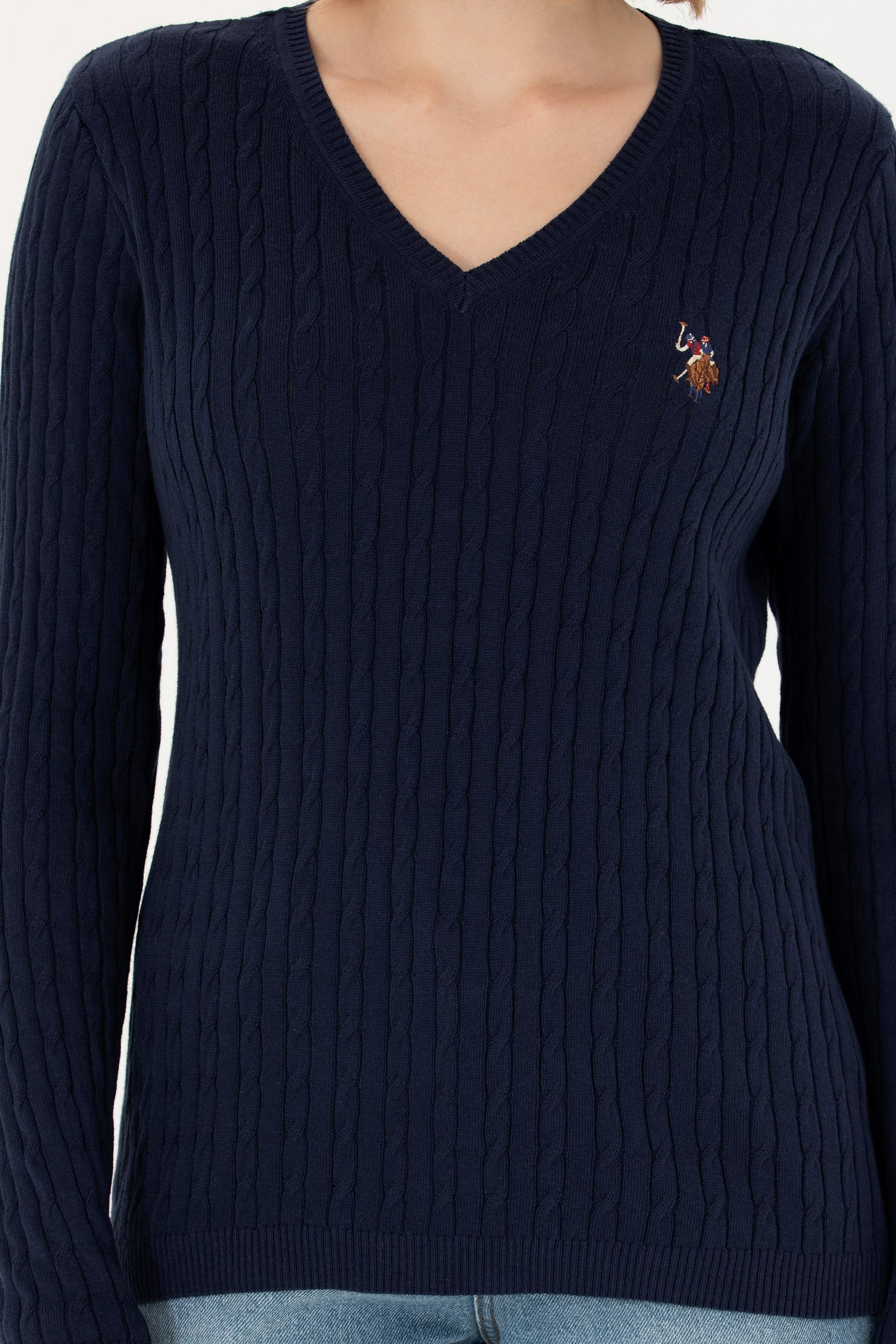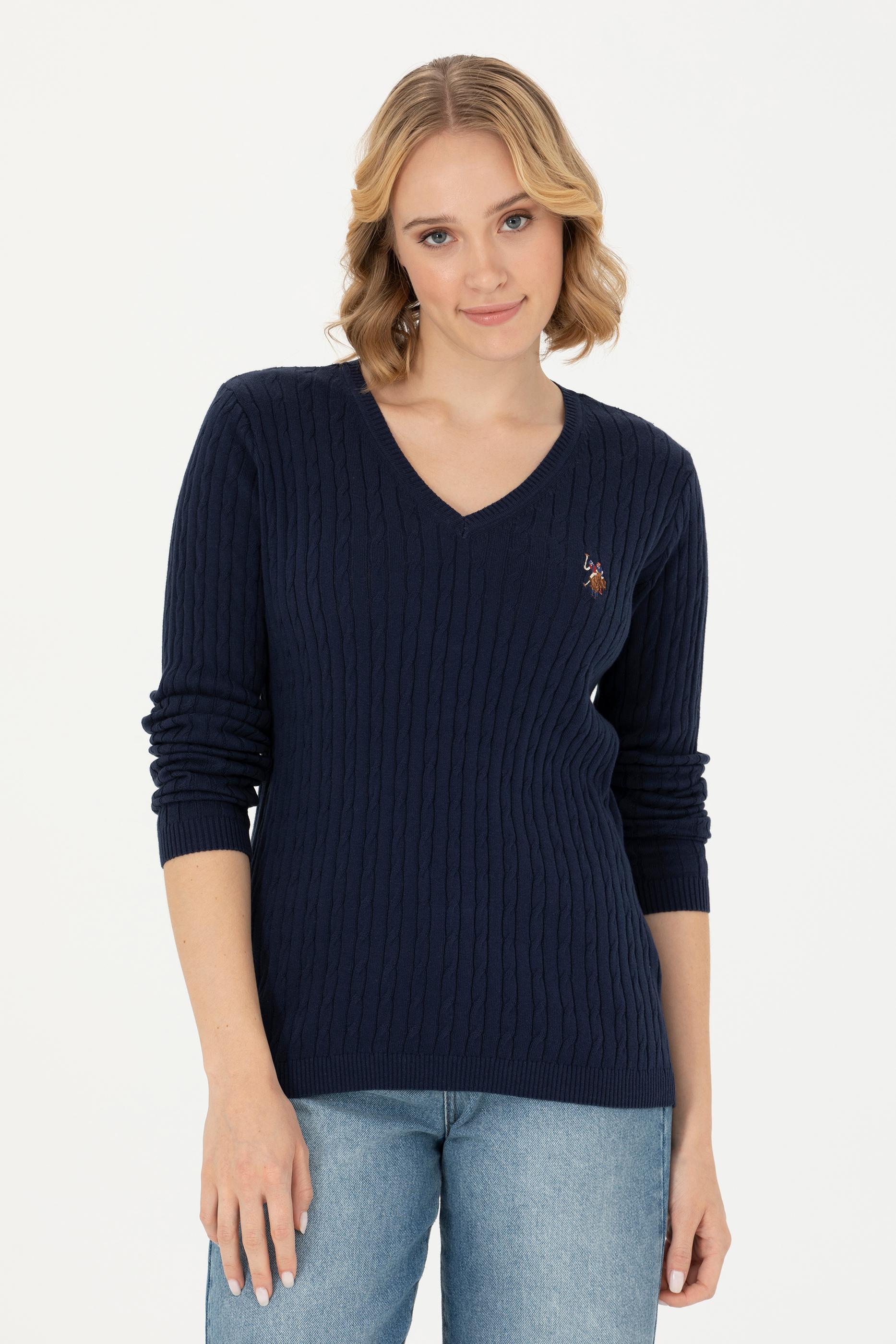 Kadın Lacivert V Yaka Basic Kazak