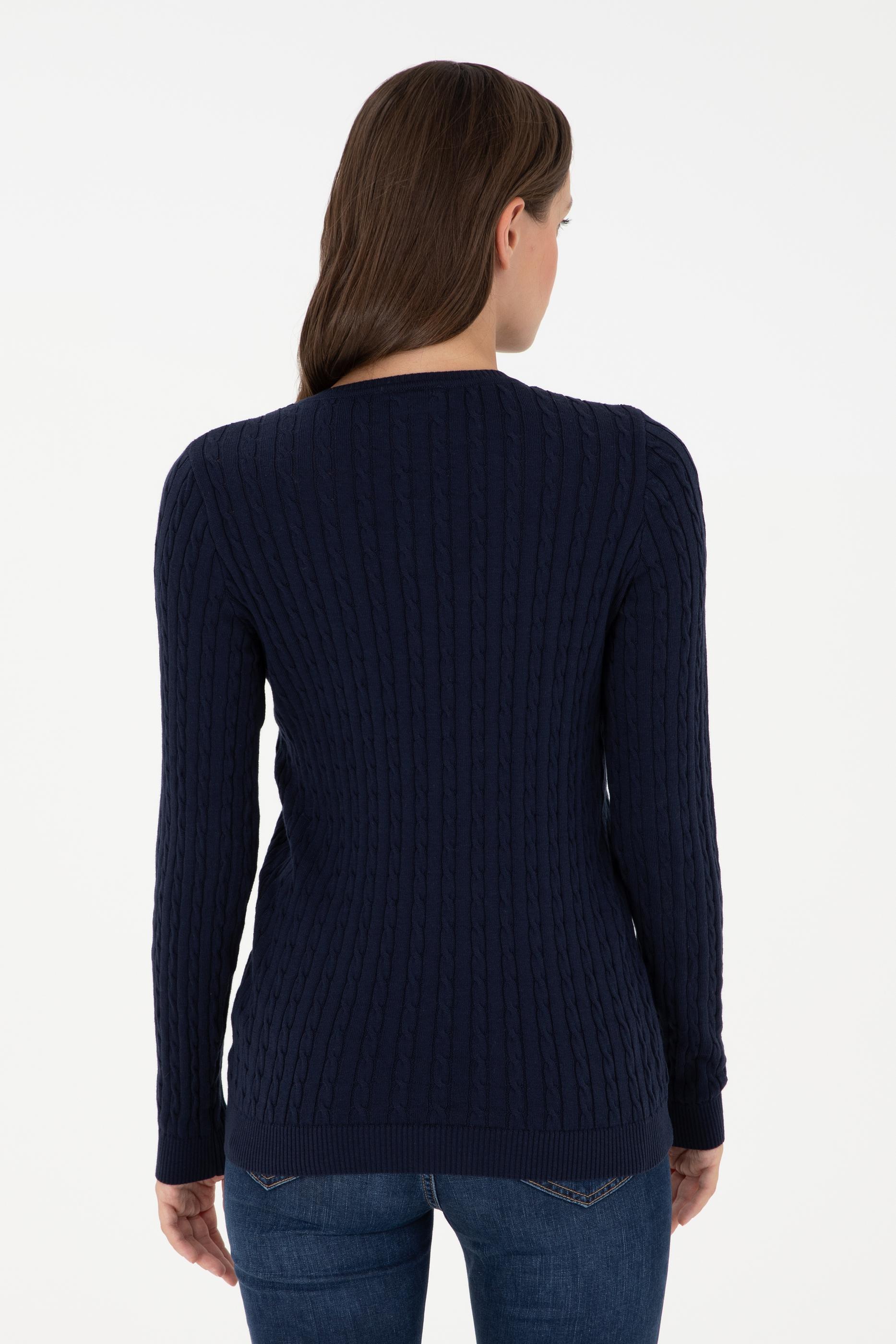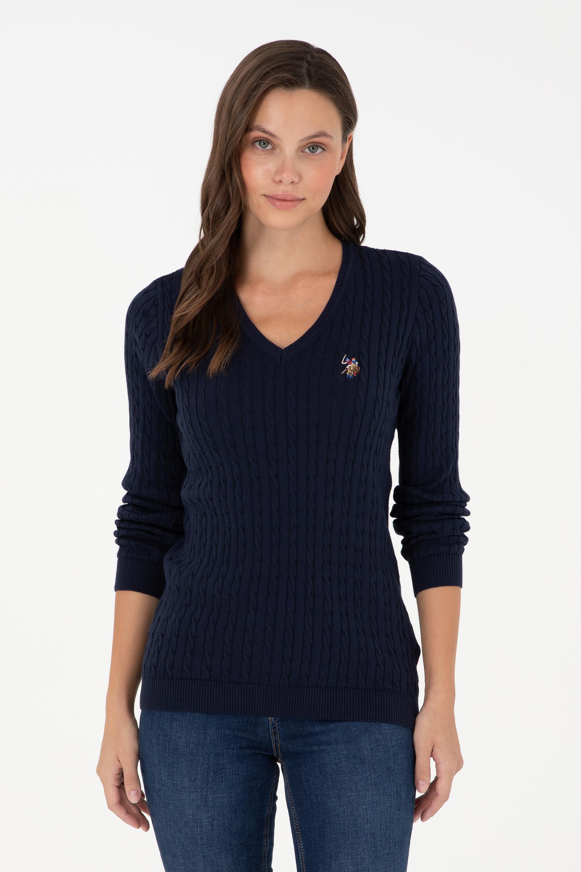 Kadın Lacivert V Yaka Basic Kazak