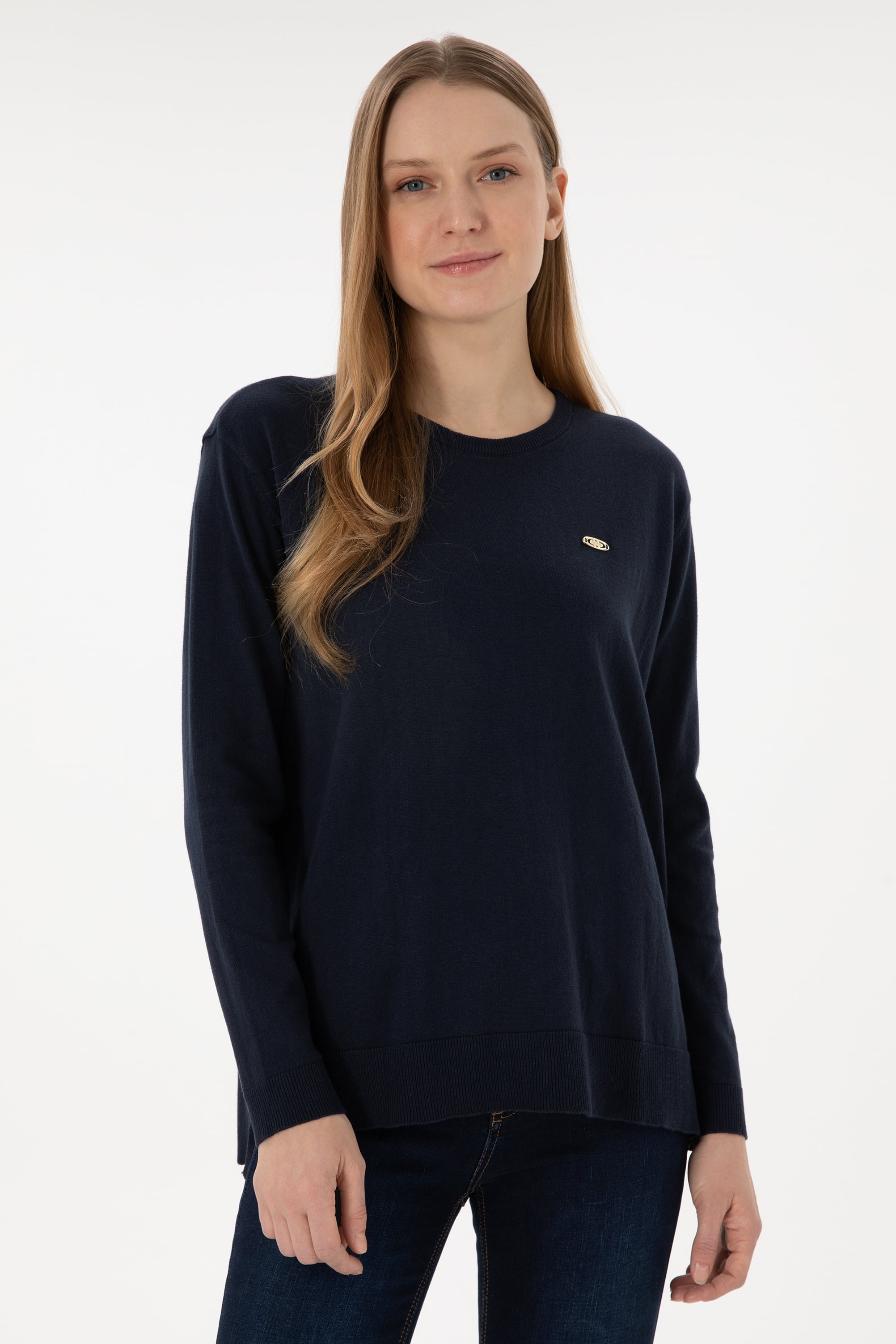 Kadın Lacivert Bisiklet Yaka Basic Kazak