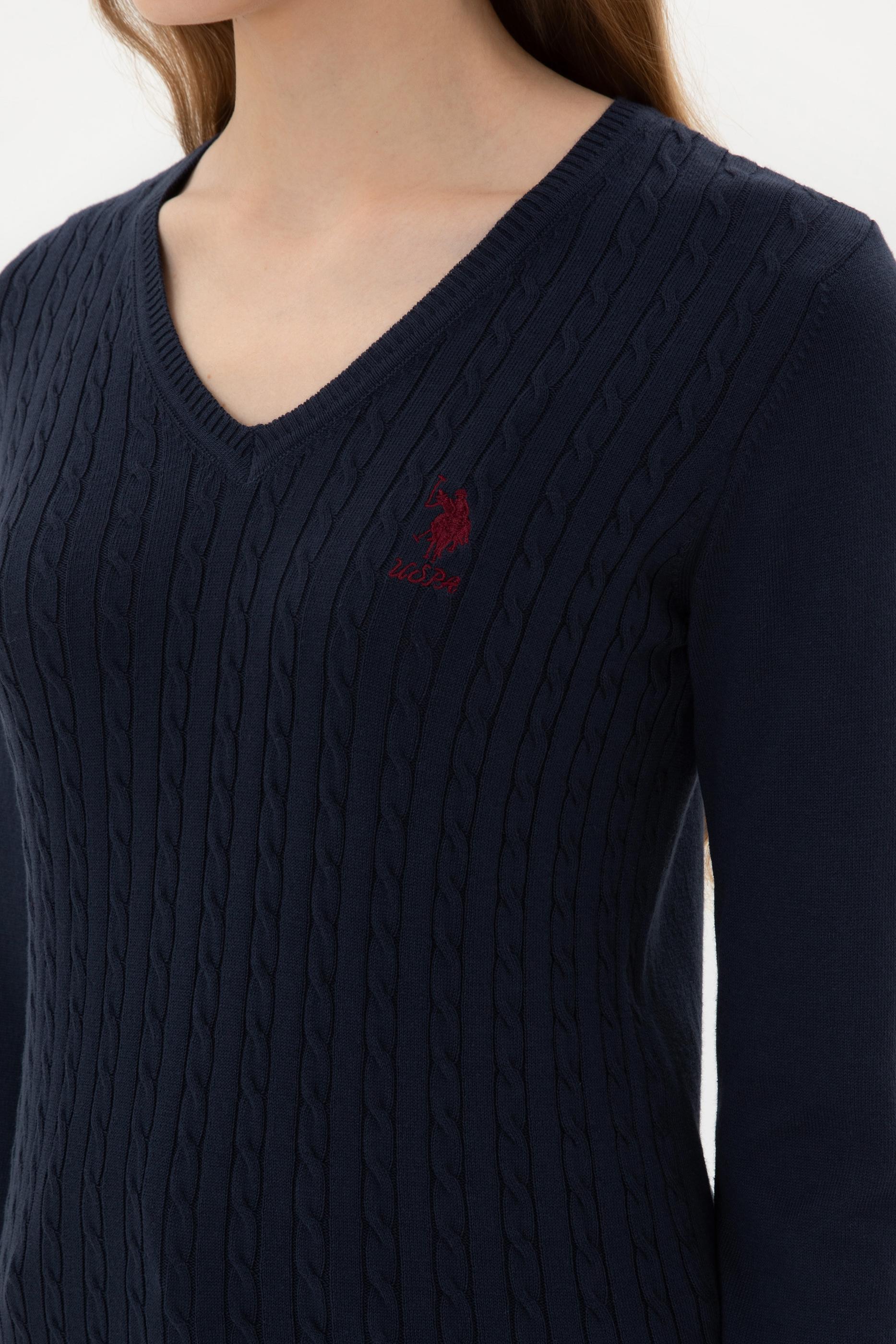 Kadın Lacivert V Yaka Basic Kazak