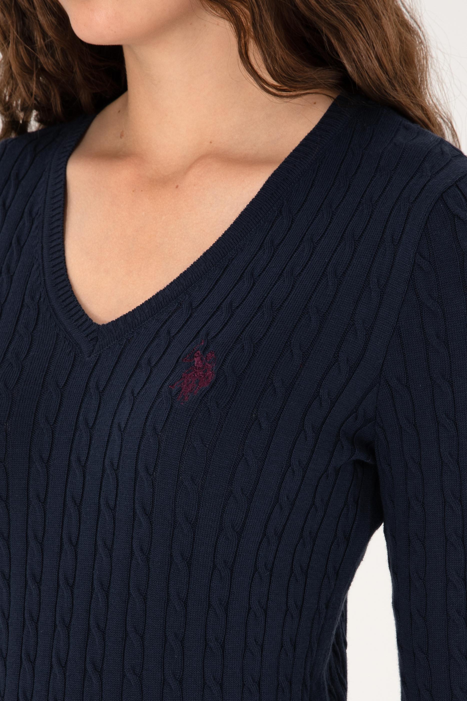 Kadın Lacivert V Yaka Basic Kazak - 50313625004