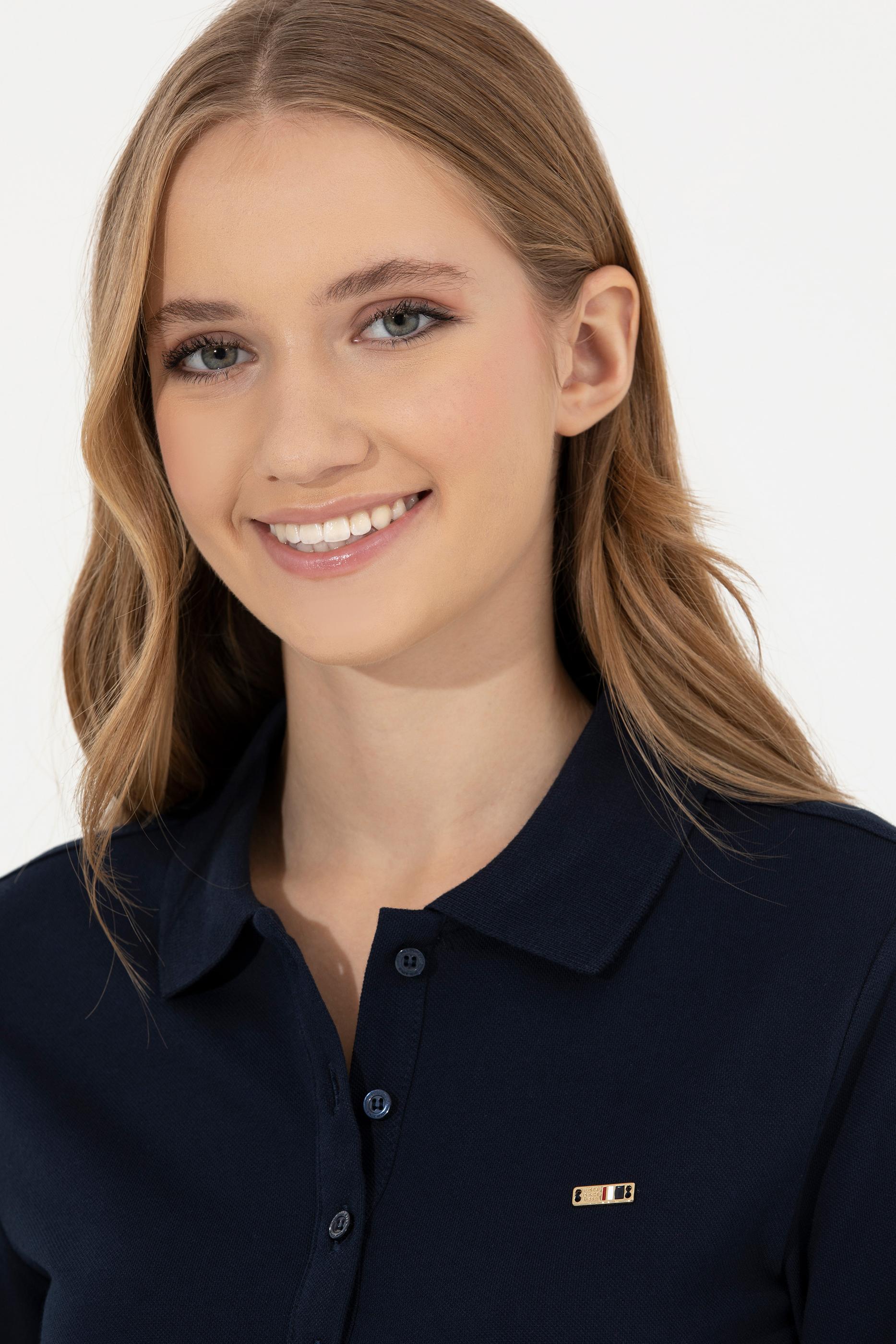 Kadın Lacivert Basic Polo Yaka Sweatshirt