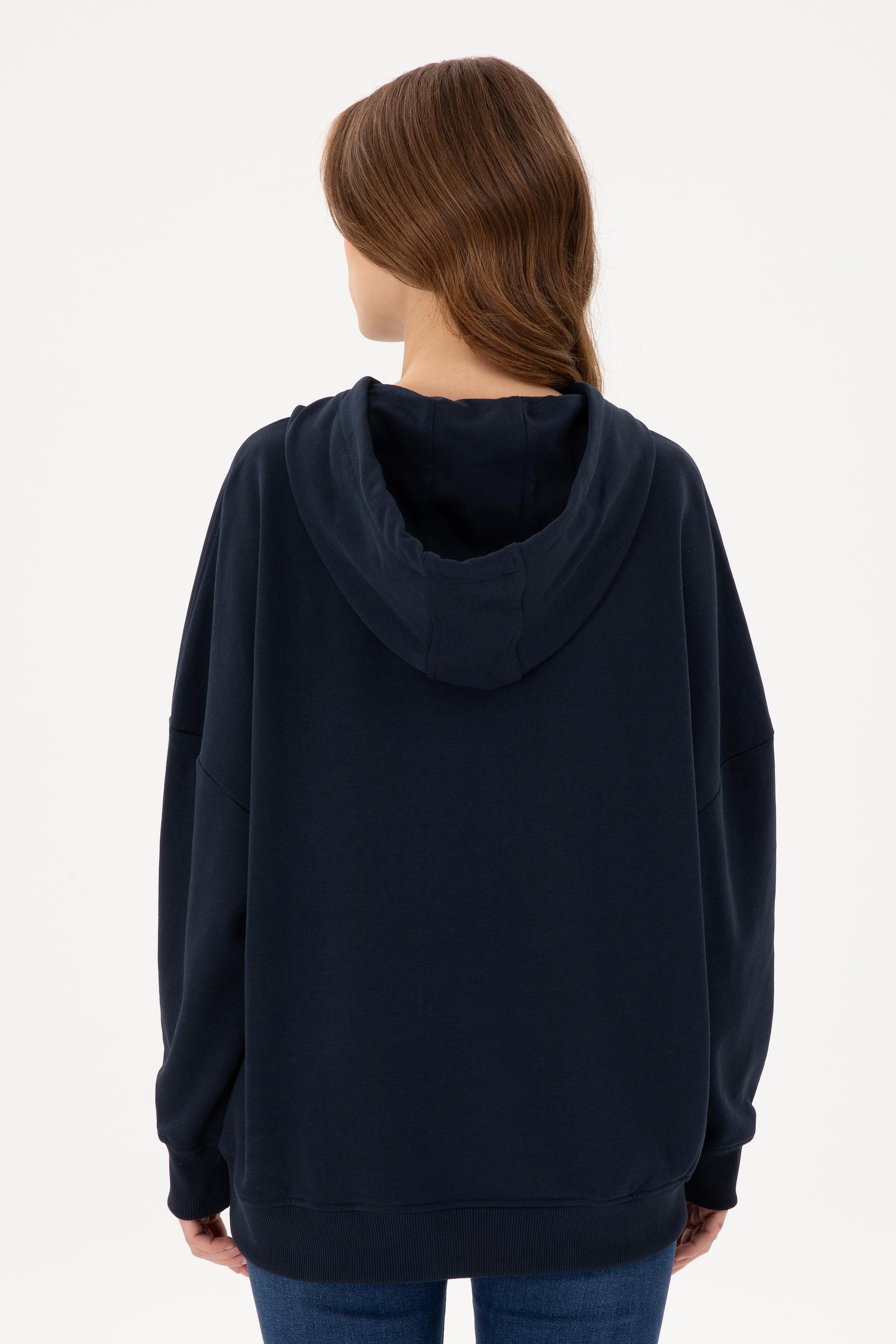 - Kadın Lacivert Kapüşonlu Basic Sweatshirt