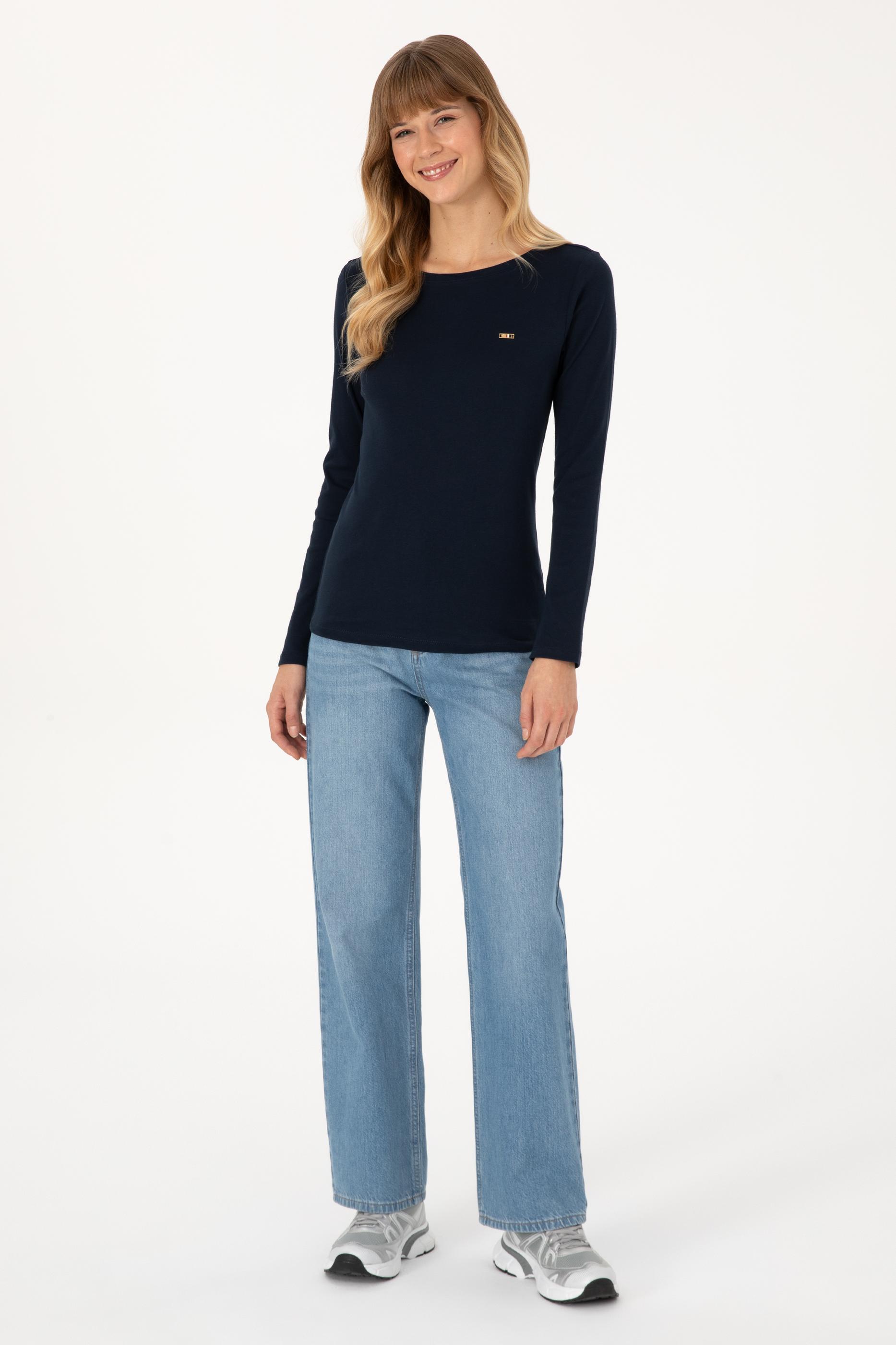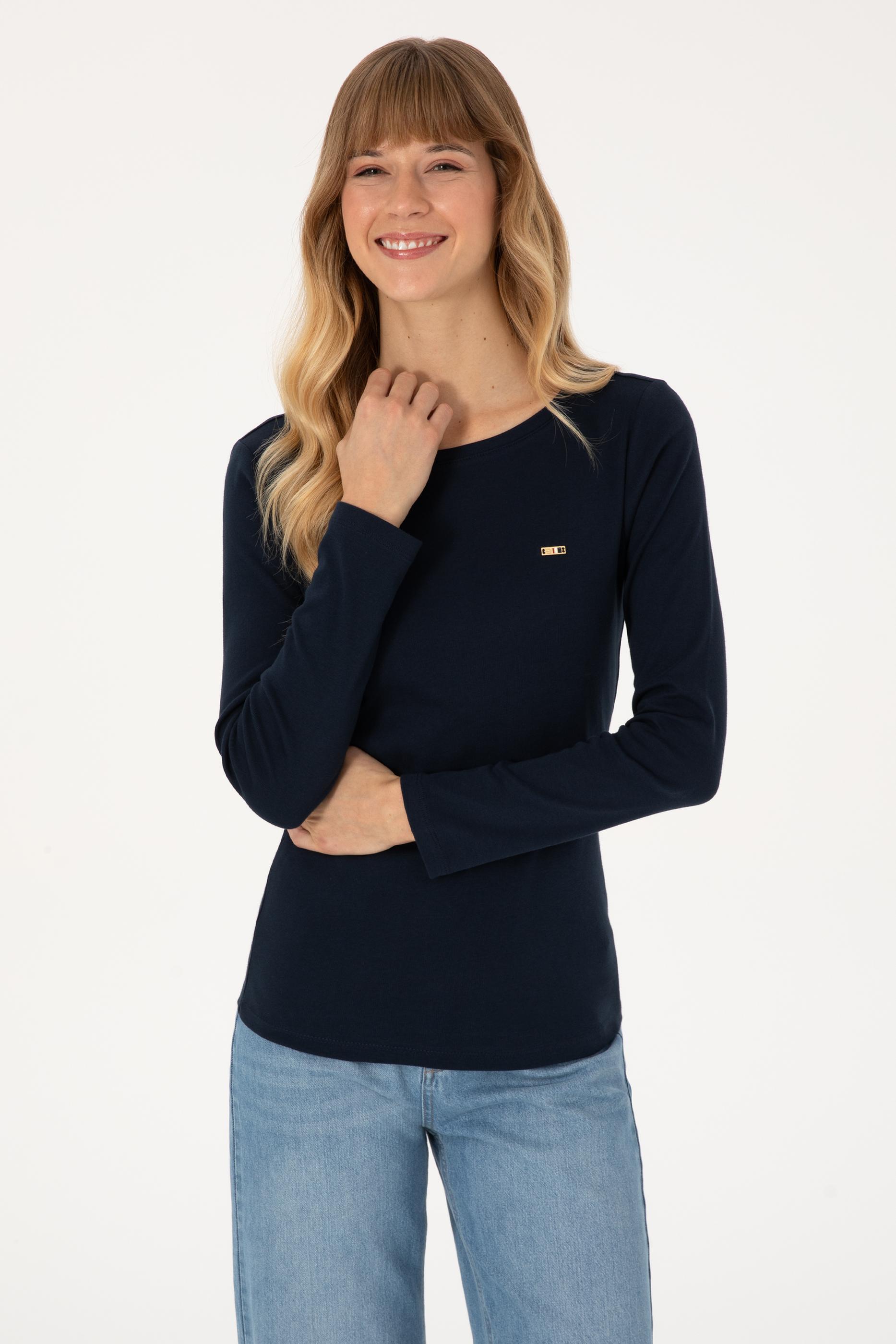 - Kadın Lacivert Slim Bisiklet Yaka Basic Sweatshırt