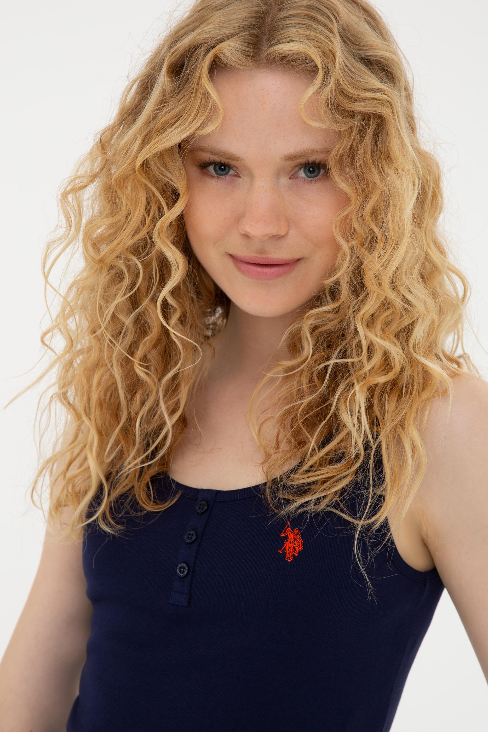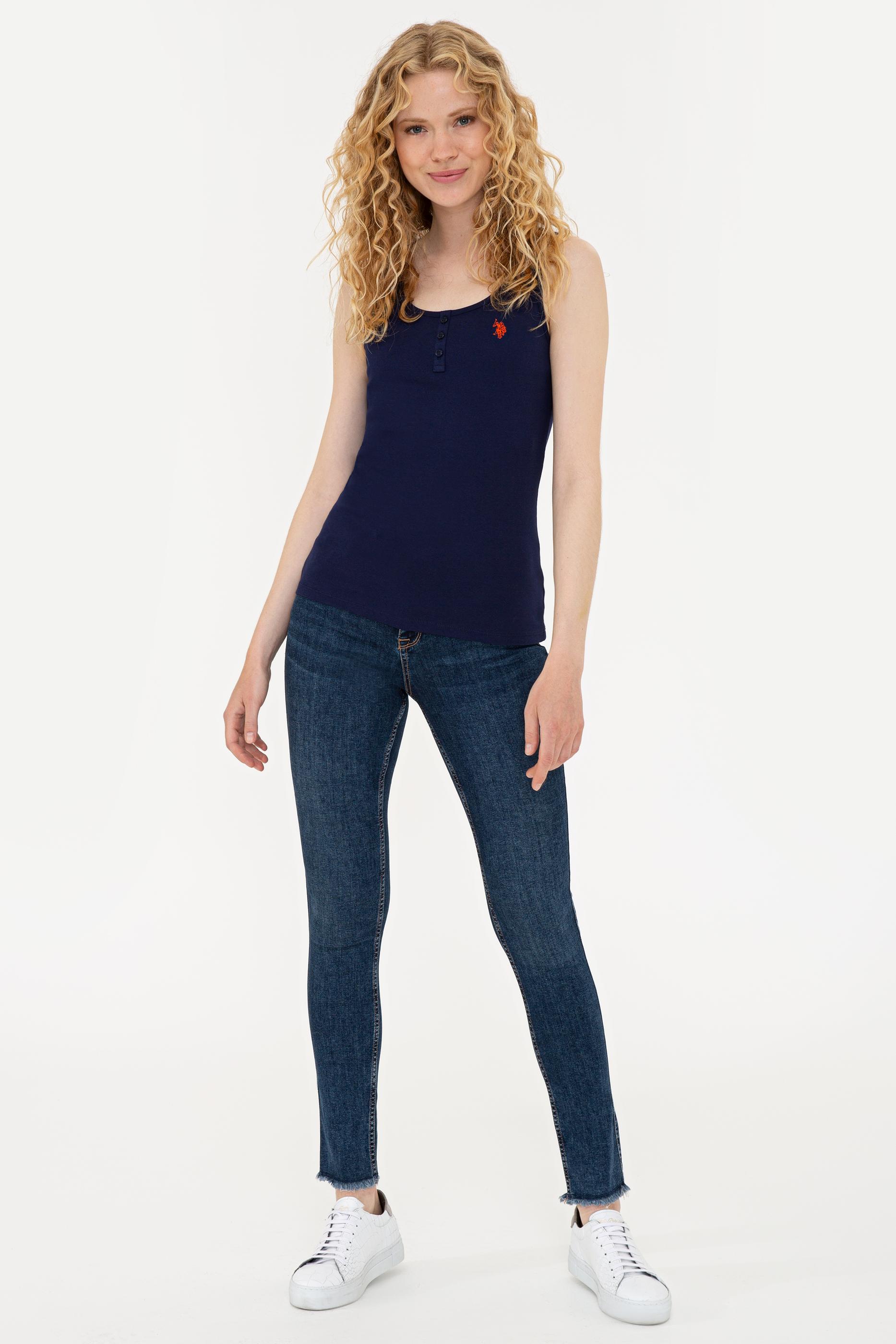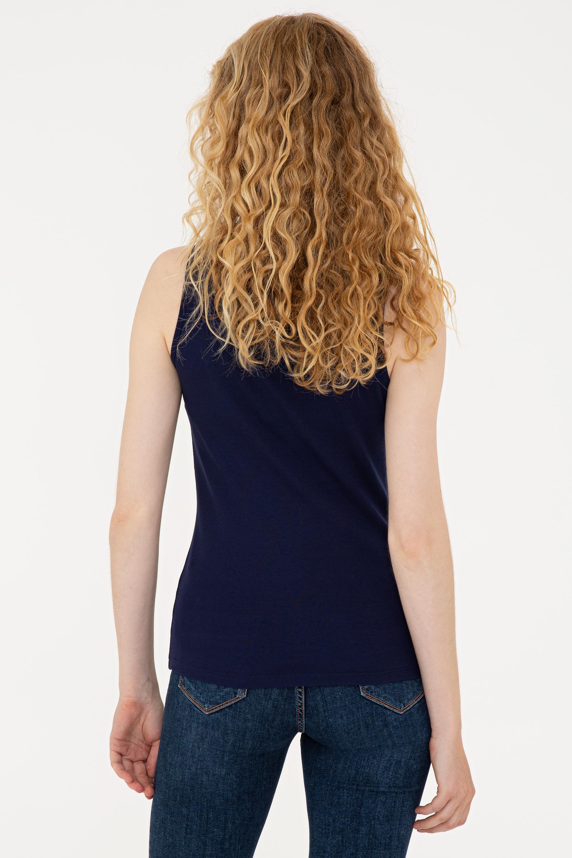 Kadın Lacivert Bisiklet Yaka Kolsuz Basic Tişört