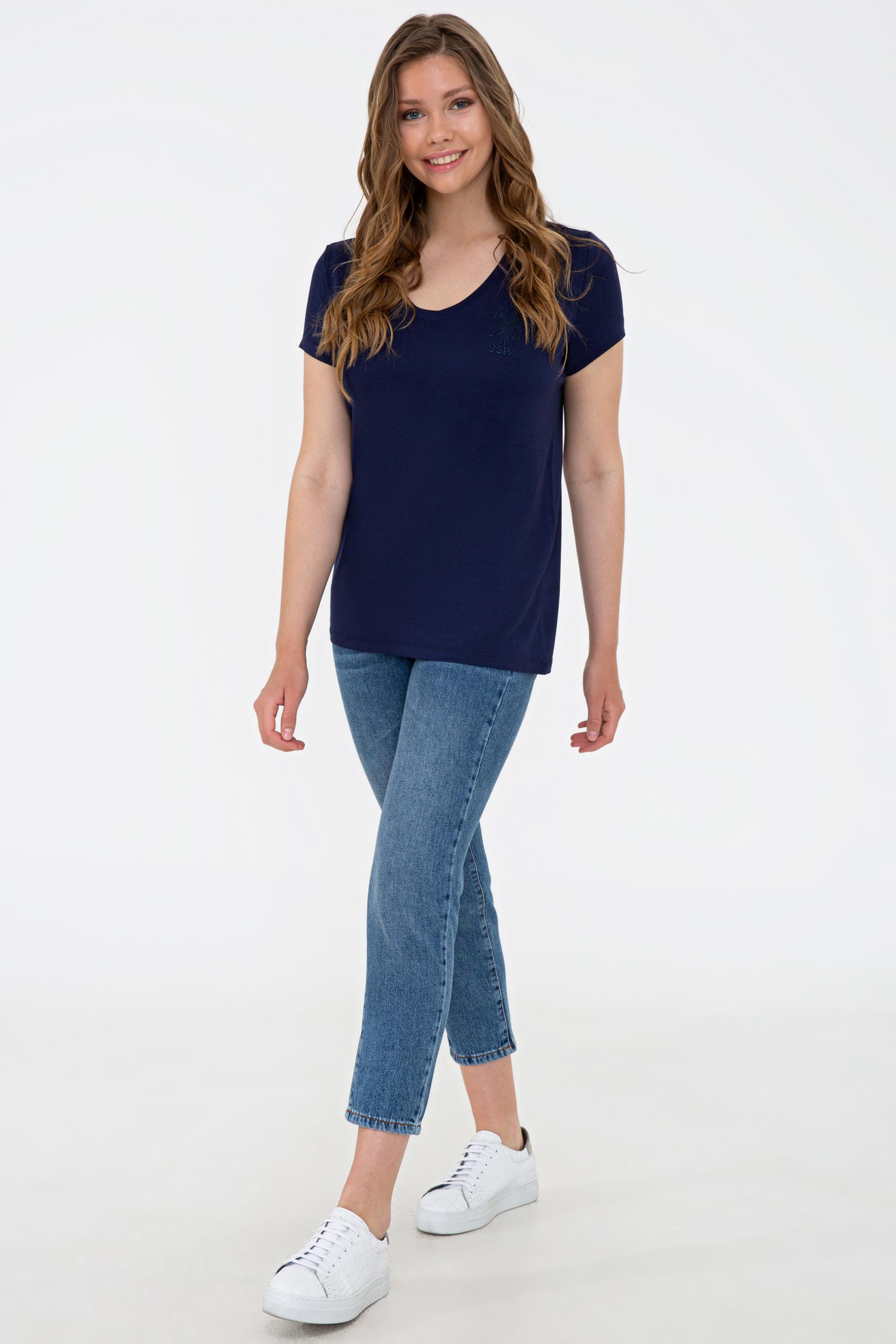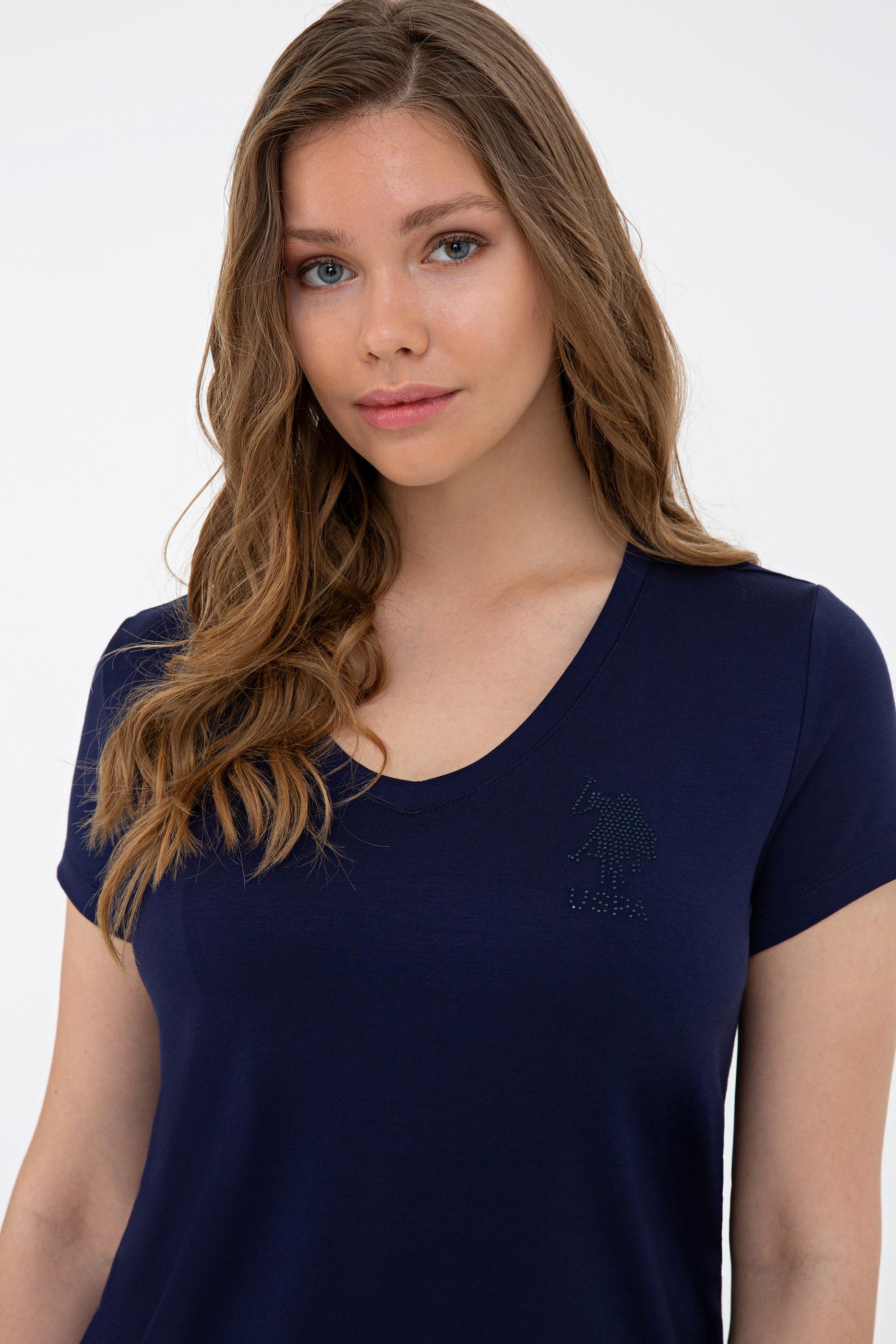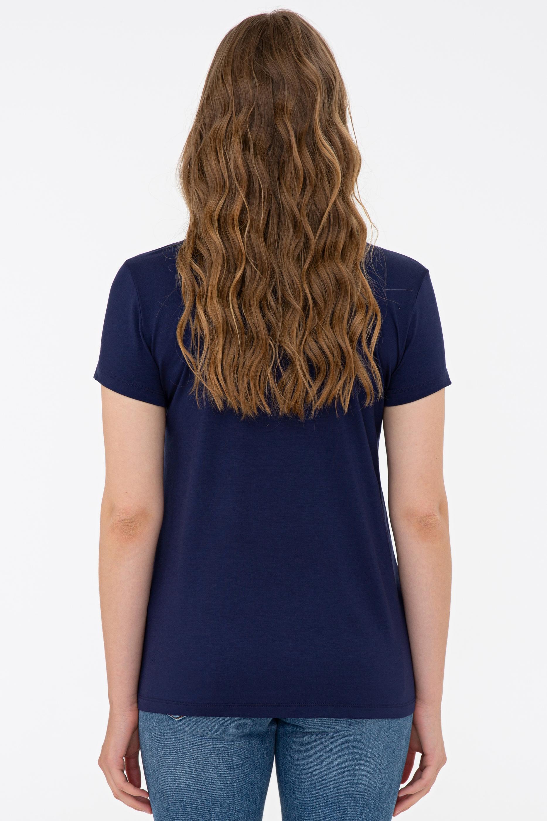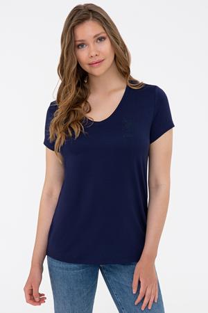 Kadın Lacivert V Yaka Basic Tişört