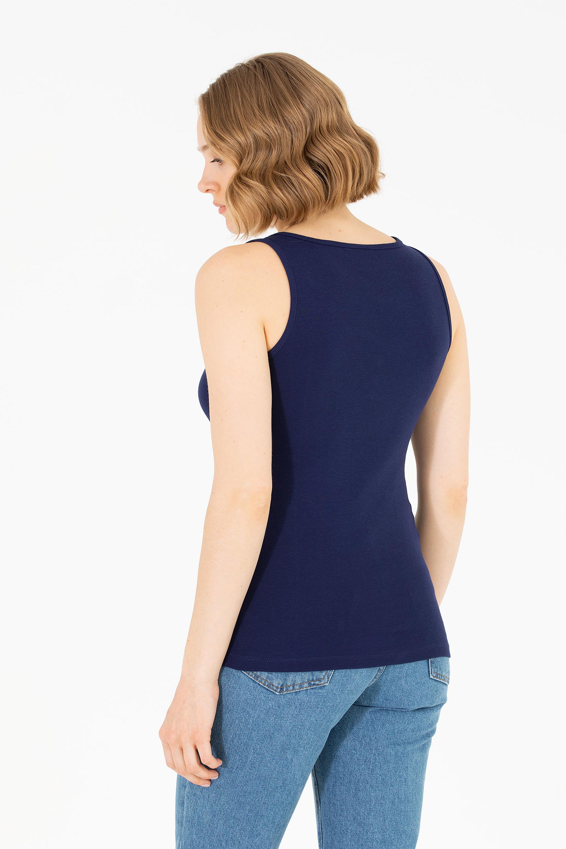 Kadın Lacivert Bisiklet Yaka Kolsuz Basic Tişört