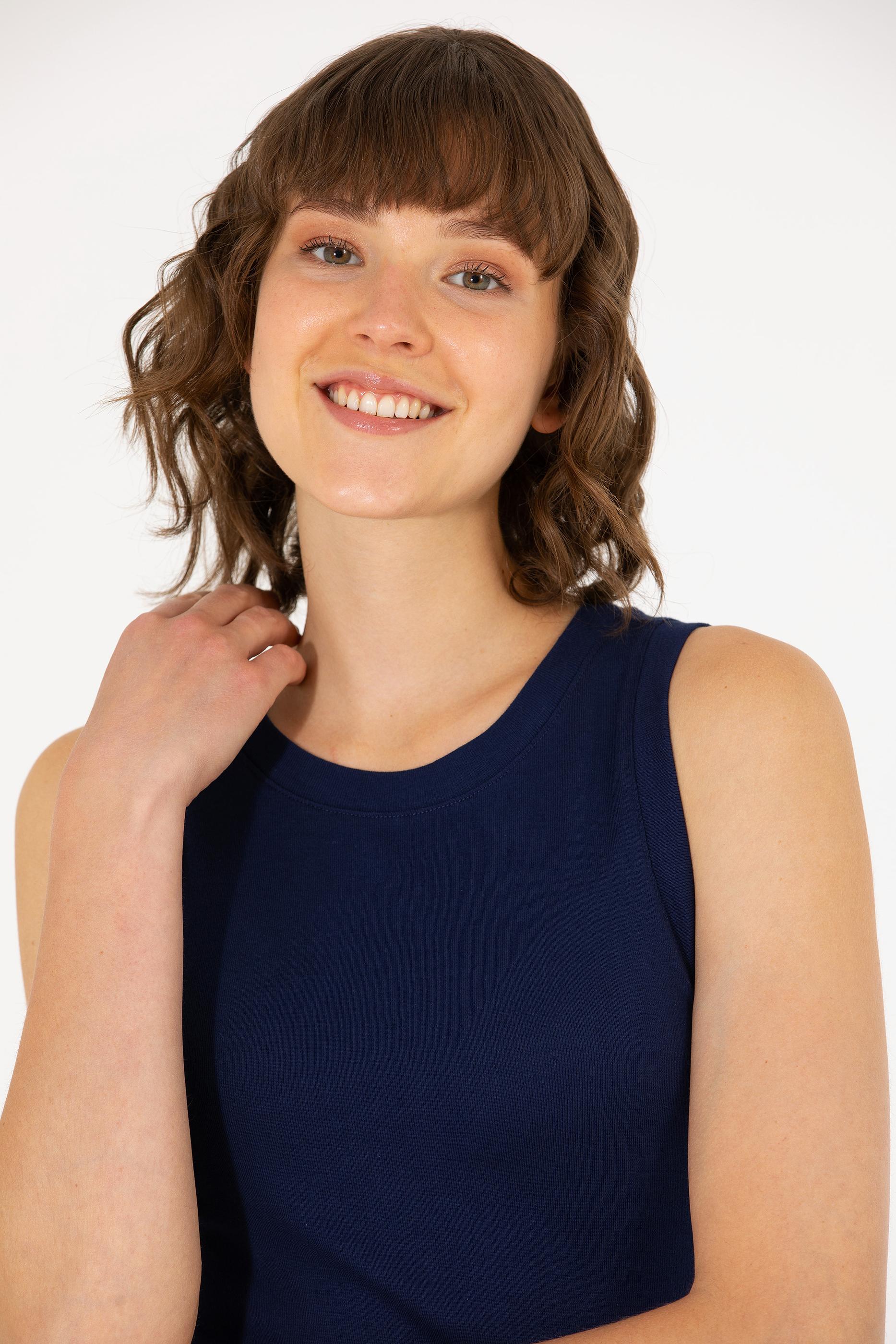 Kadın Lacivert Bisiklet Yaka Kolsuz Basic Tişört
