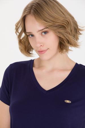 Kadın Lacivert V Yaka Basic Tişört