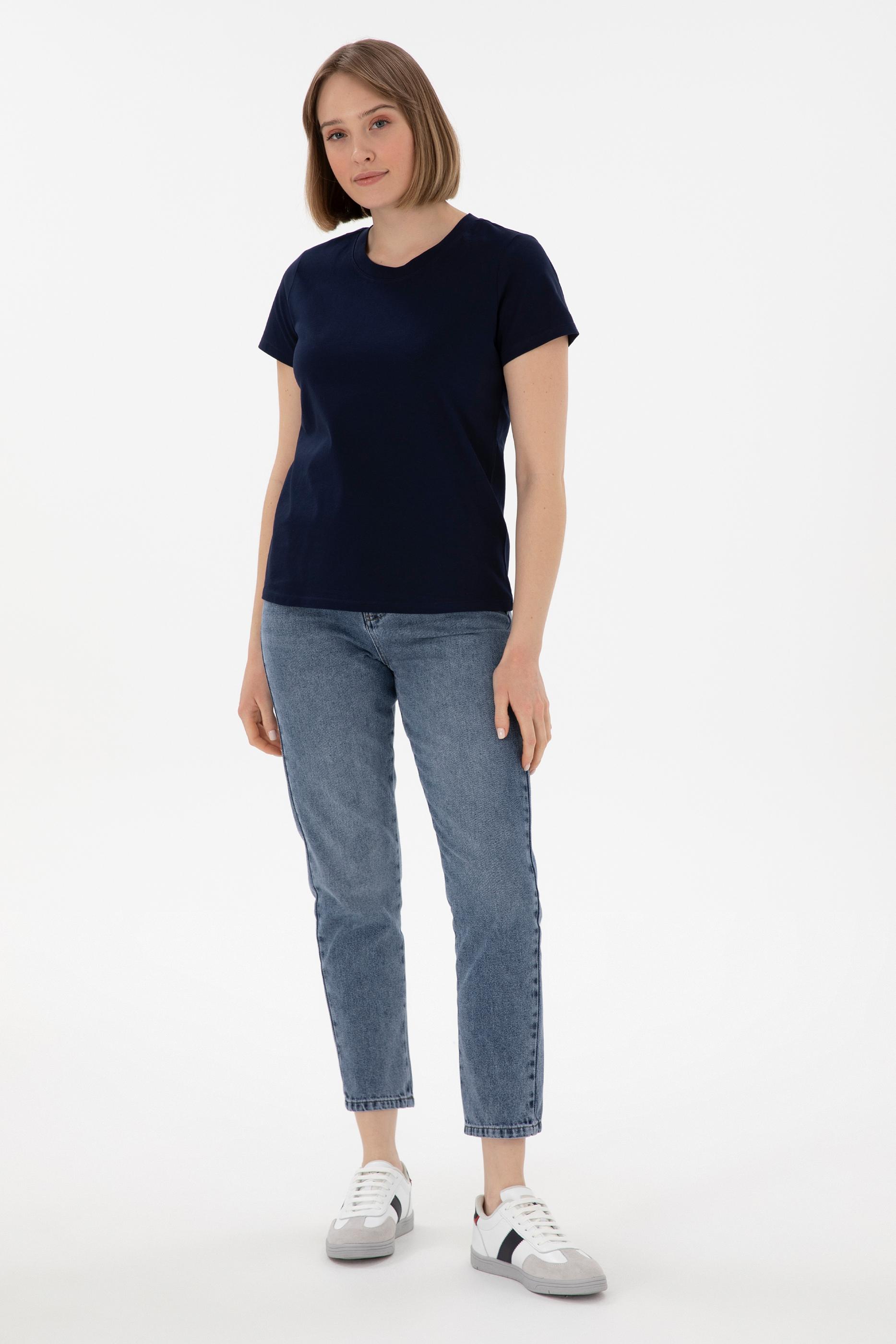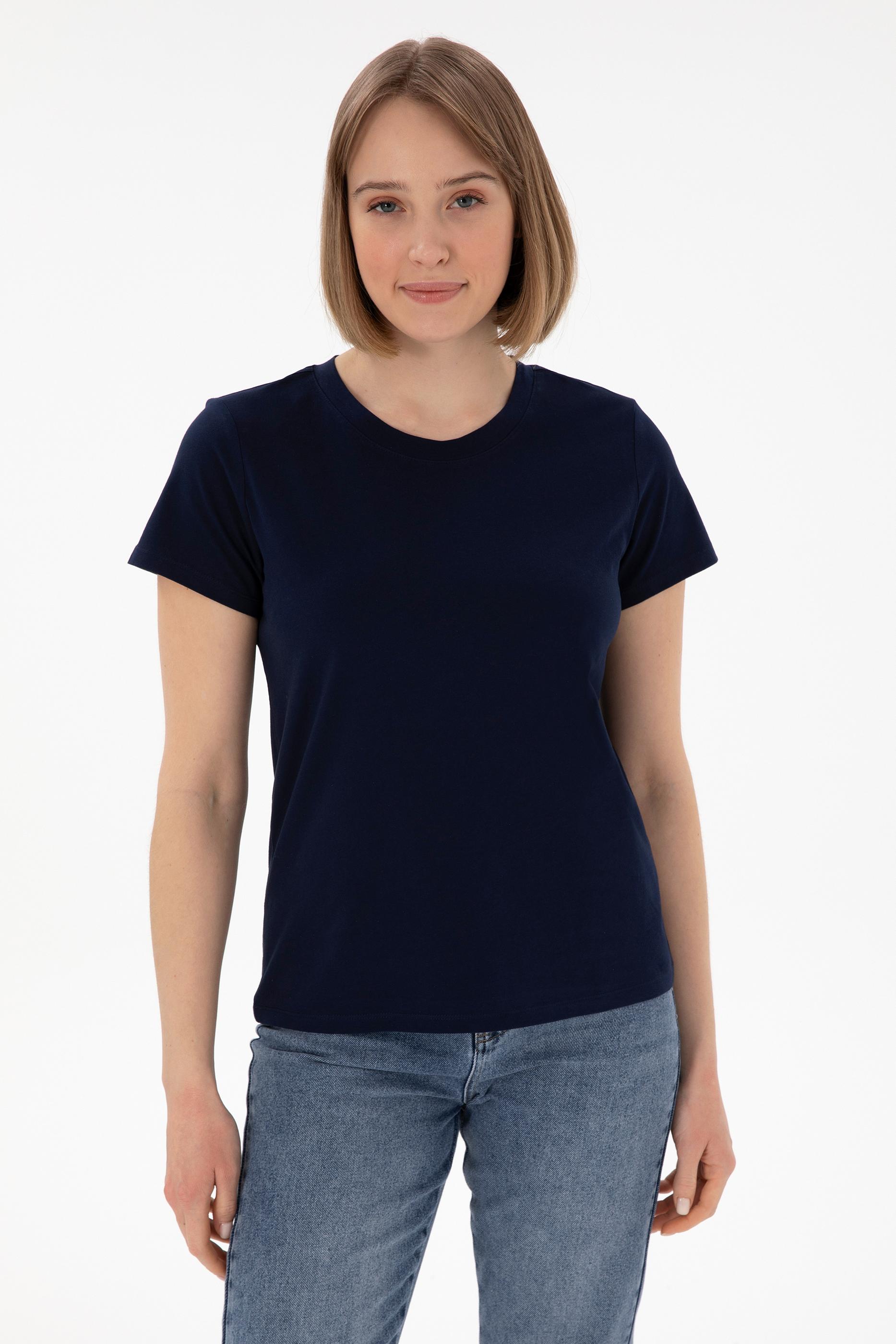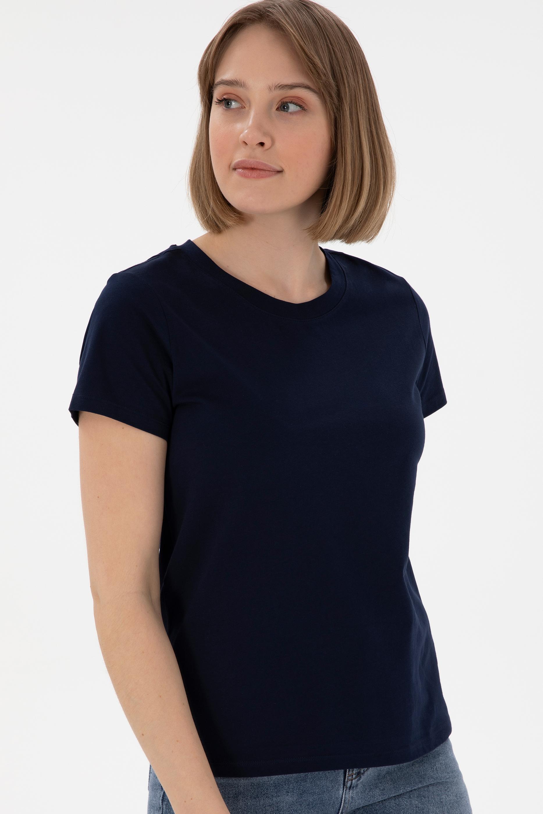 - Kadın Lacivert Bisiklet Yaka Basic Tişört
