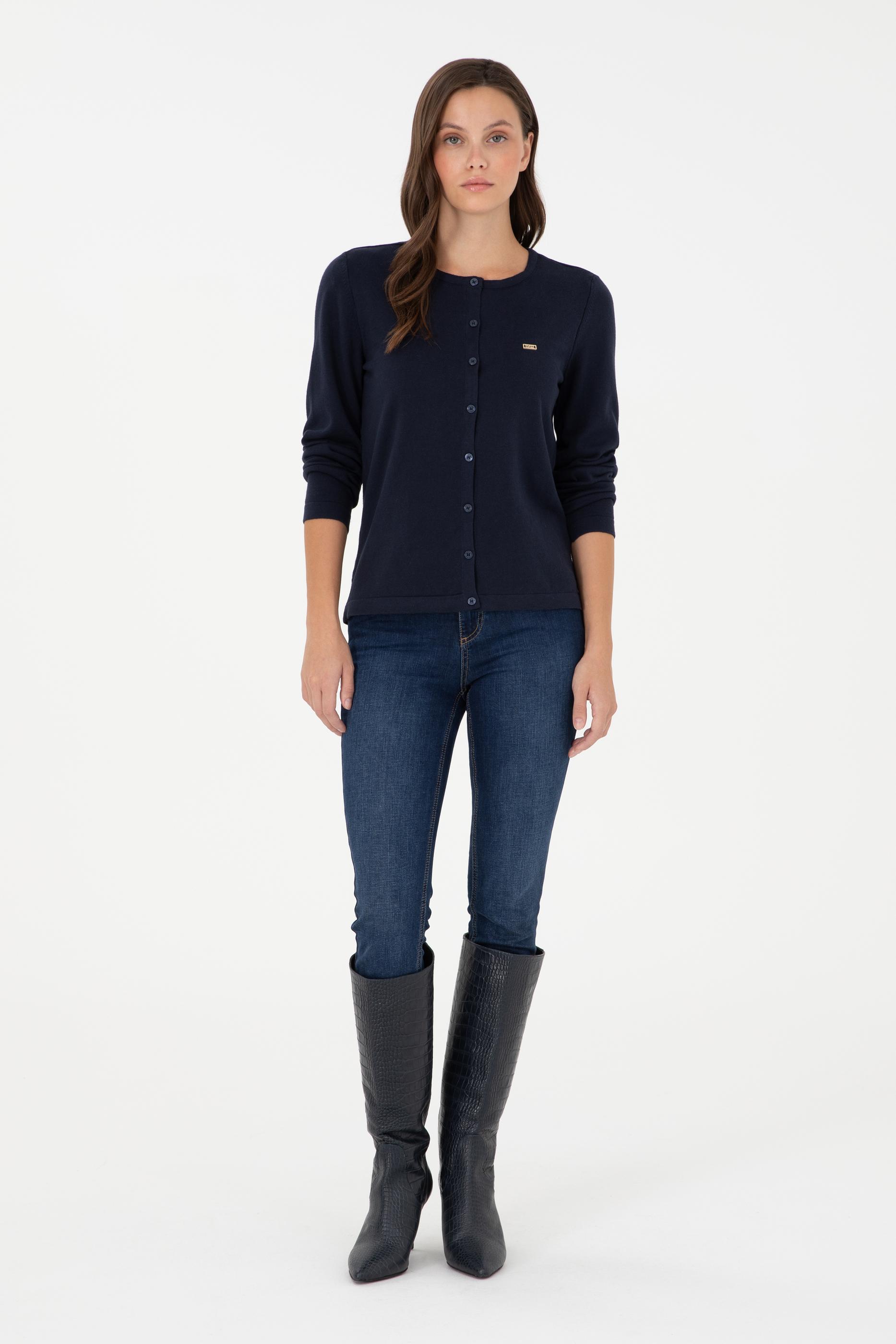 Kadın Lacivert Basic Triko Hırka