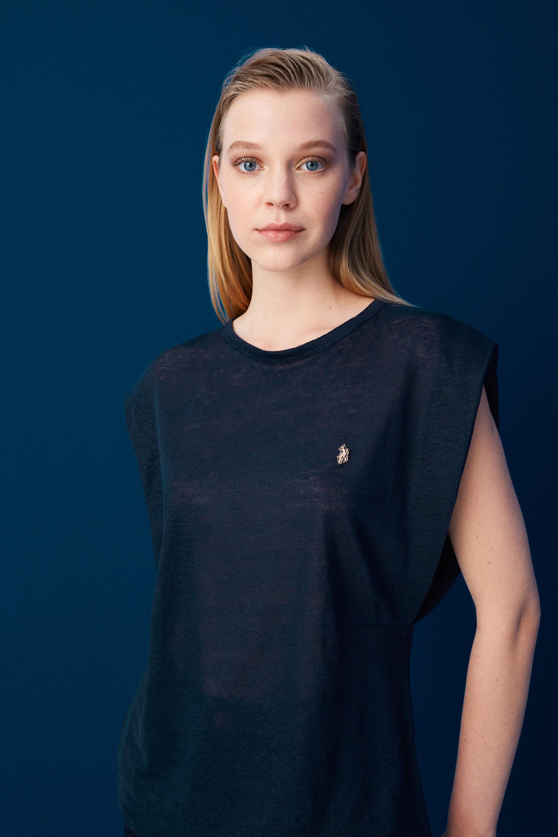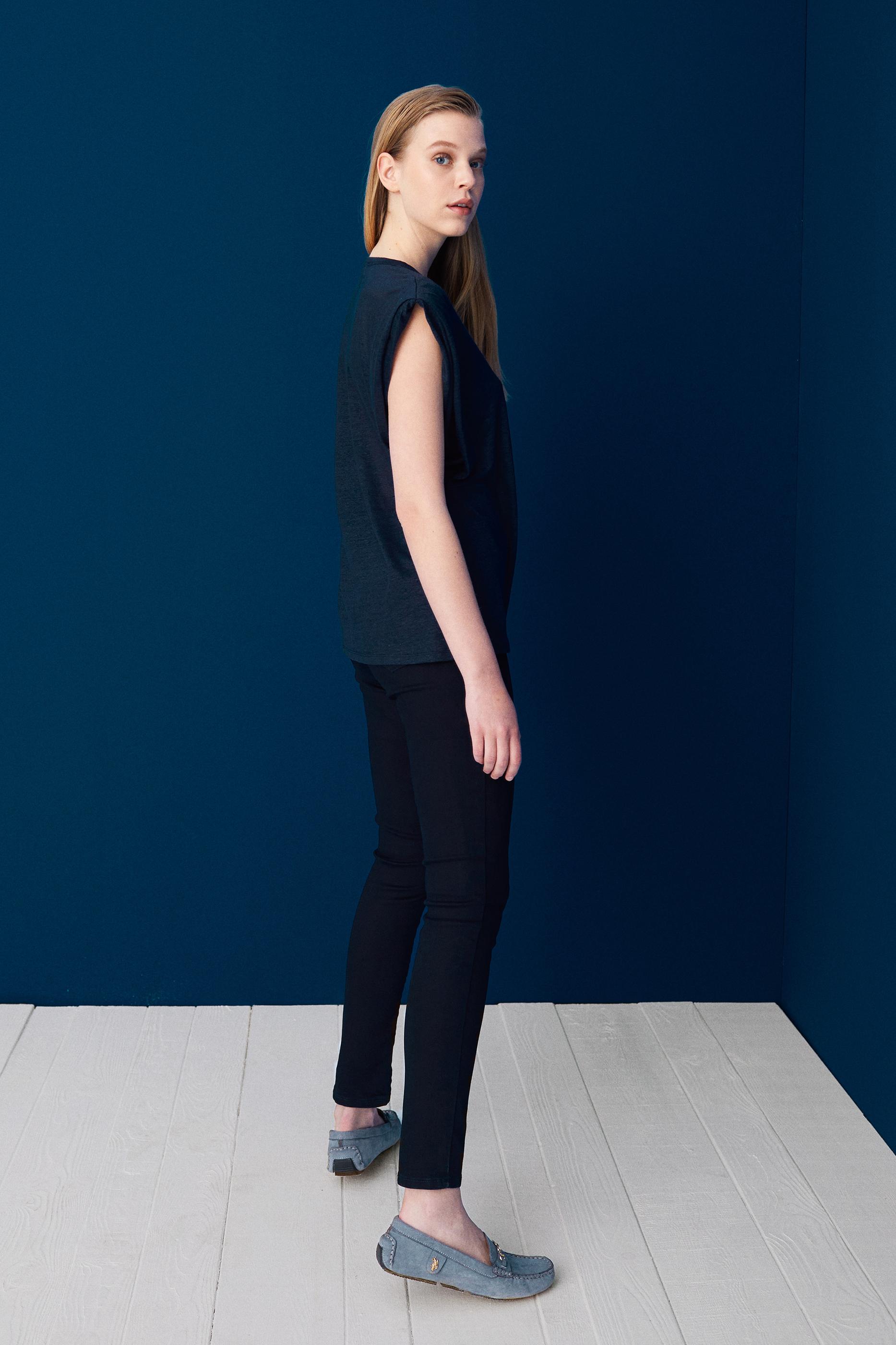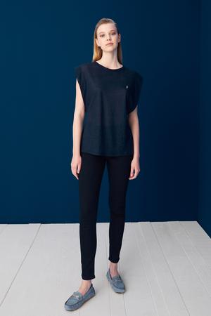 Kadın Lacivert Bisiklet Yaka Kolsuz Tişört