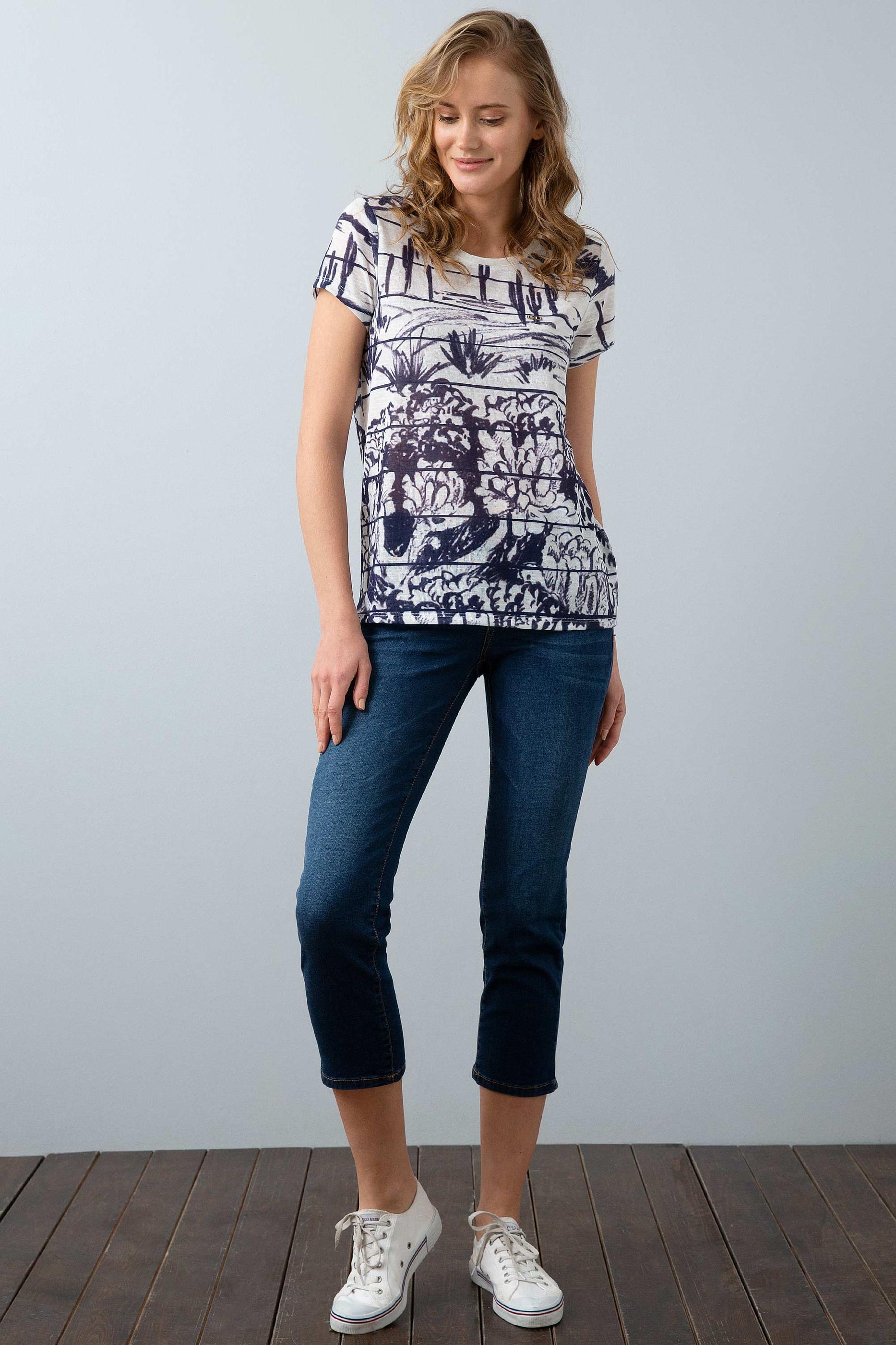 Kadın Lacivert Bisiklet Yaka T-Shirt