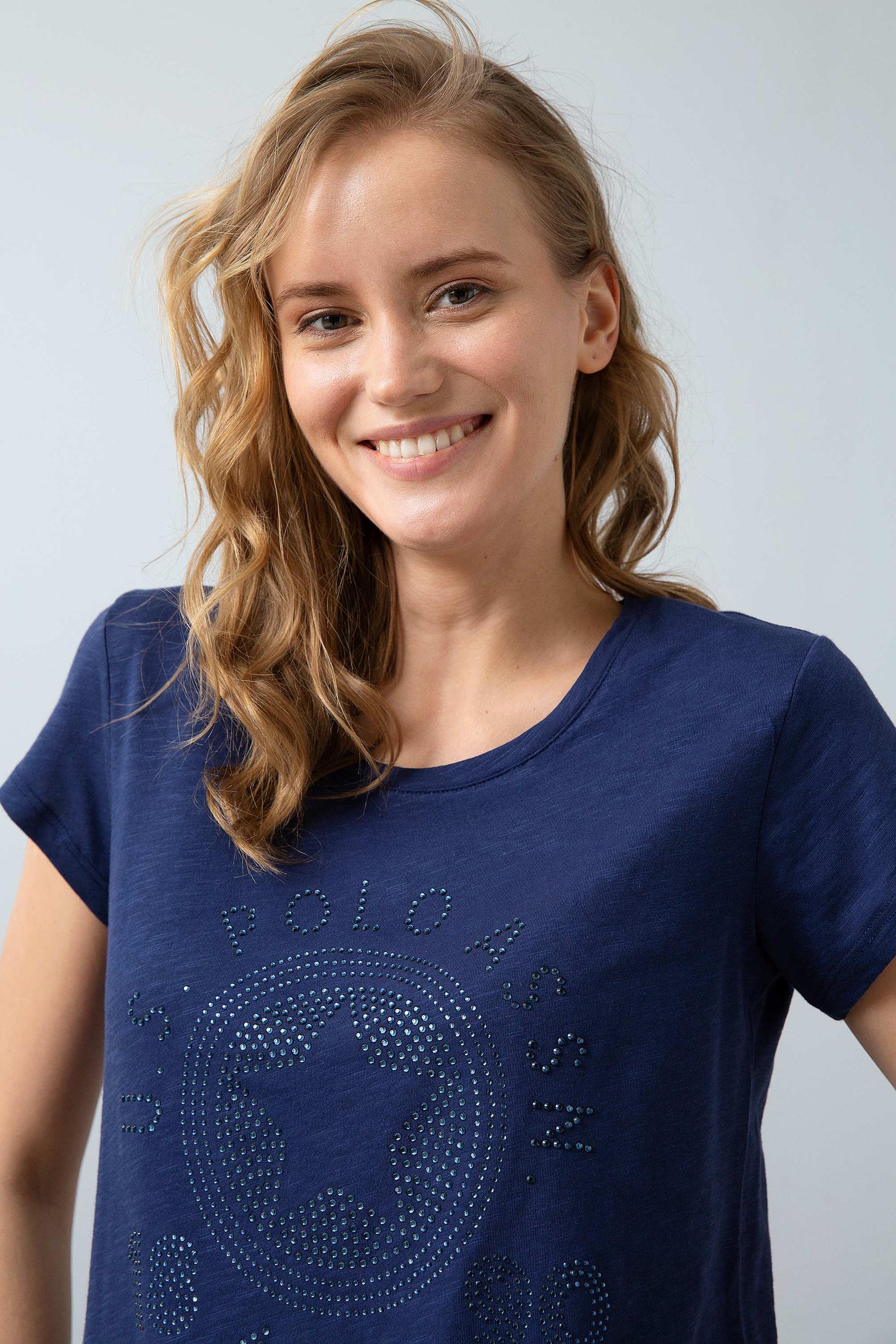 Kadın Lacivert Bisiklet Yaka T-Shirt