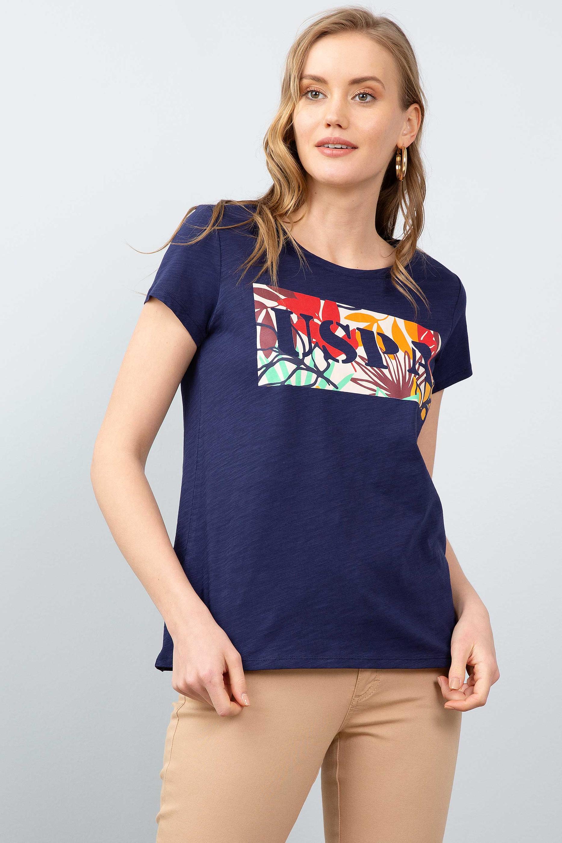 Kadın Lacivert Bisiklet Yaka T-Shirt