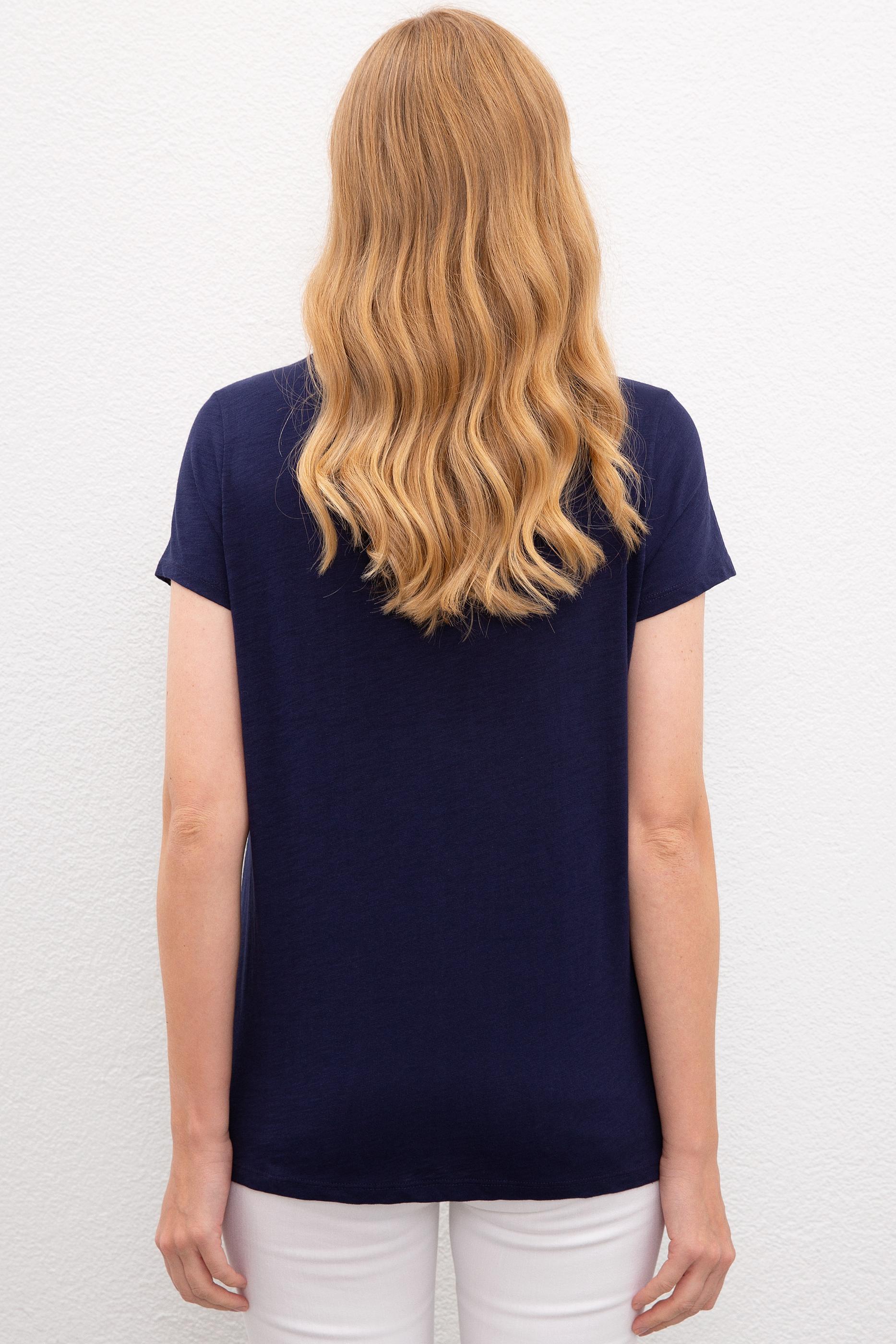 Kadın Lacivert Bisiklet Yaka T-Shirt