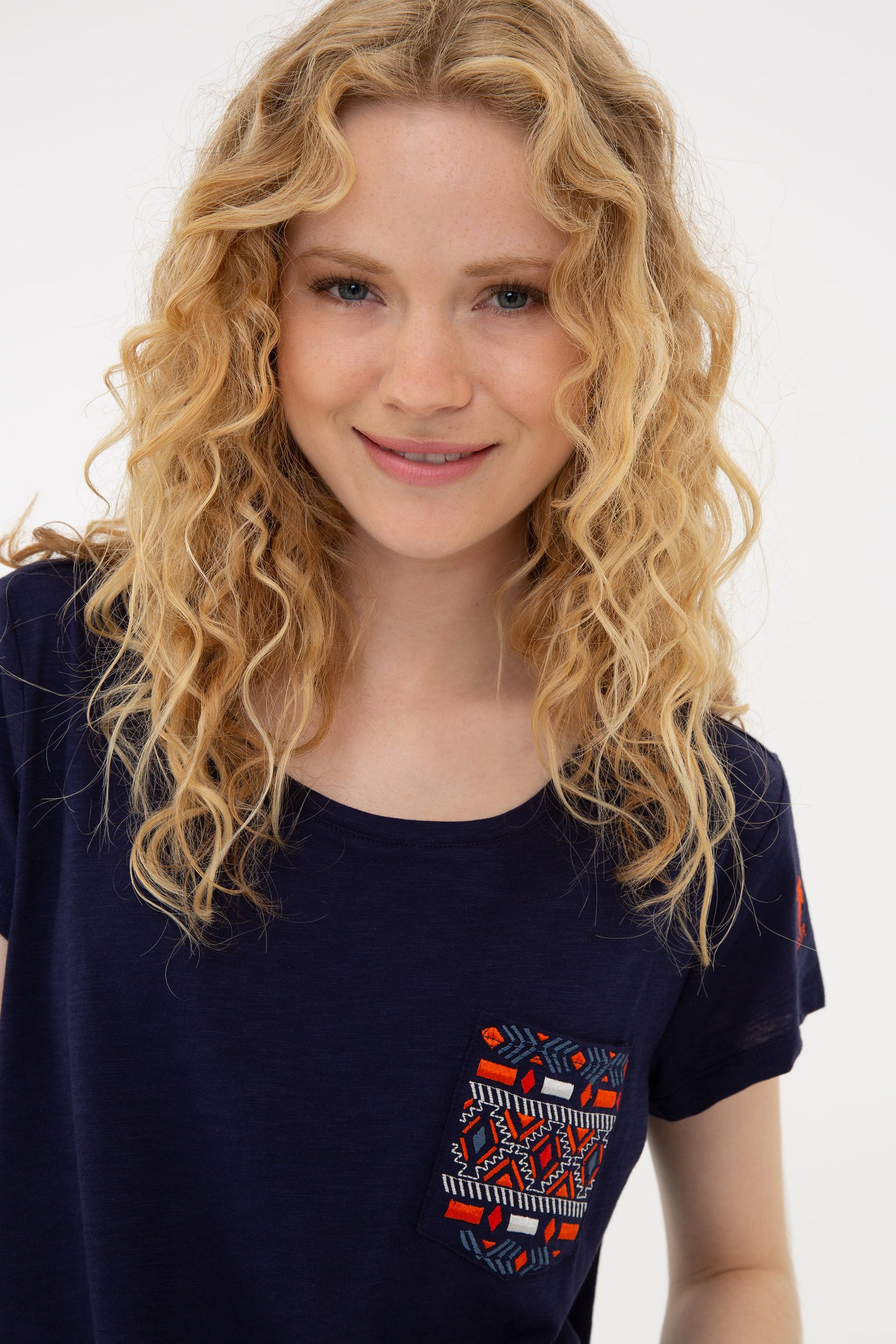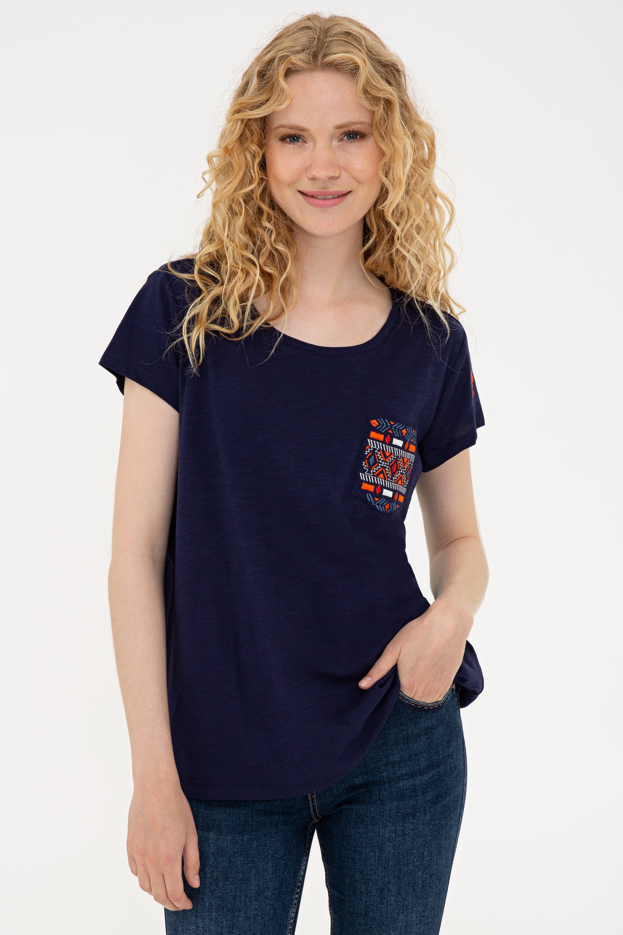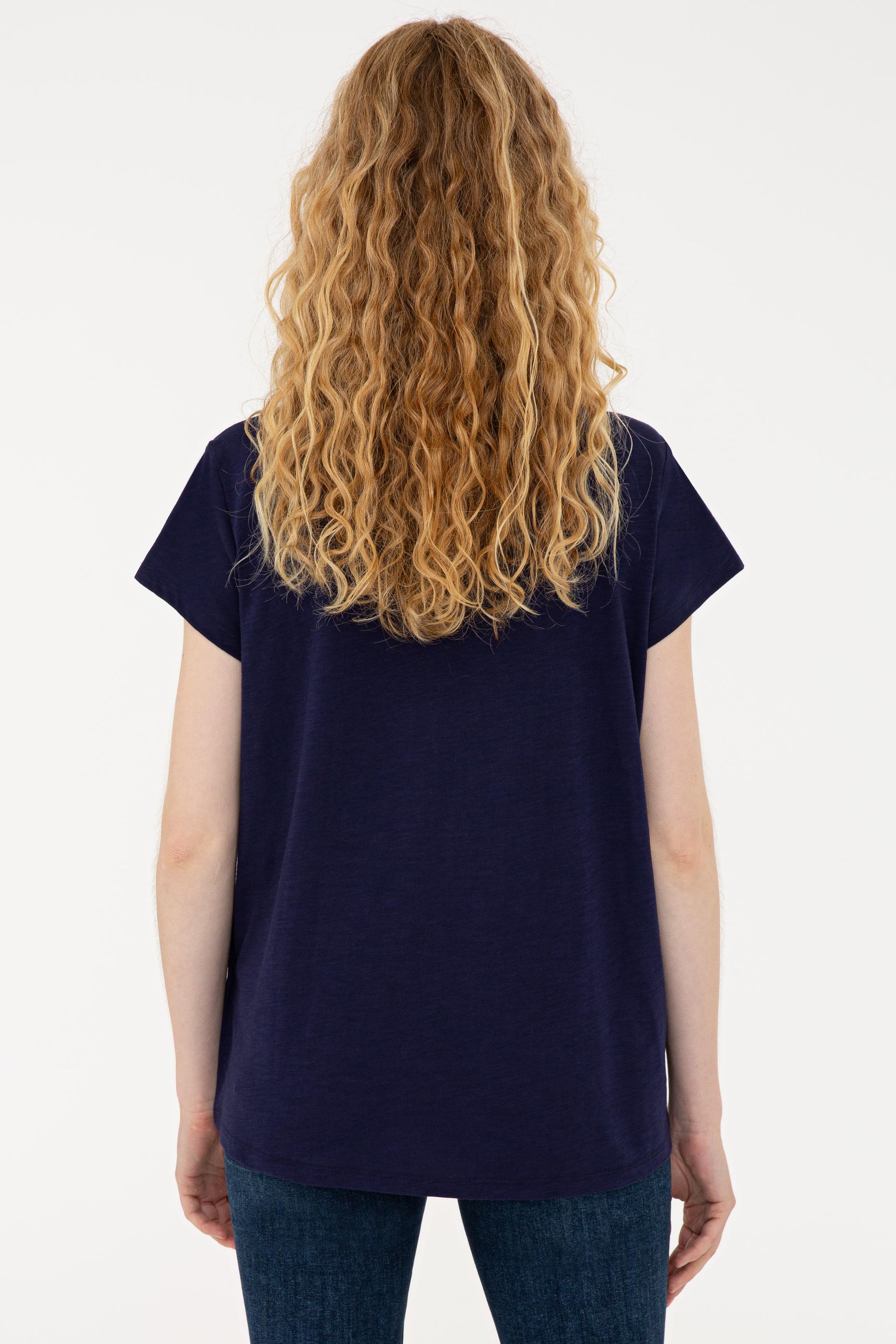 Kadın Lacivert Bisiklet Yaka T-Shirt