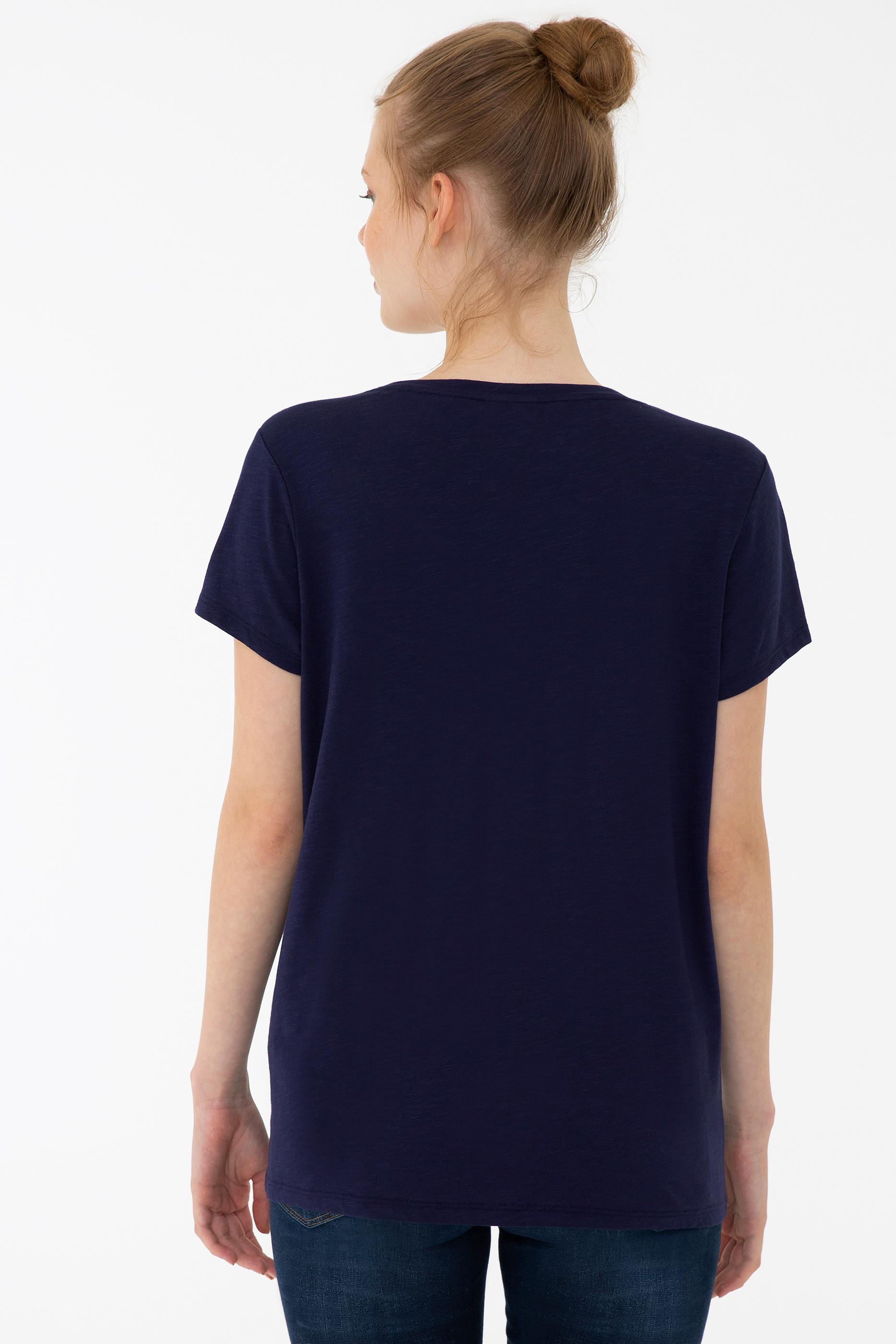 Kadın Lacivert Bisiklet Yaka T-Shirt