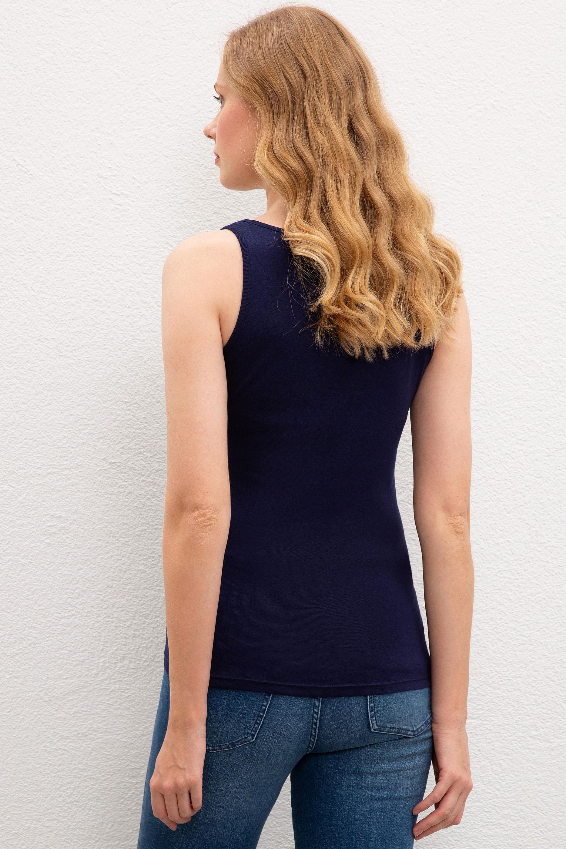 Kadın Lacivert Bisiklet Yaka T-Shirt Basic
