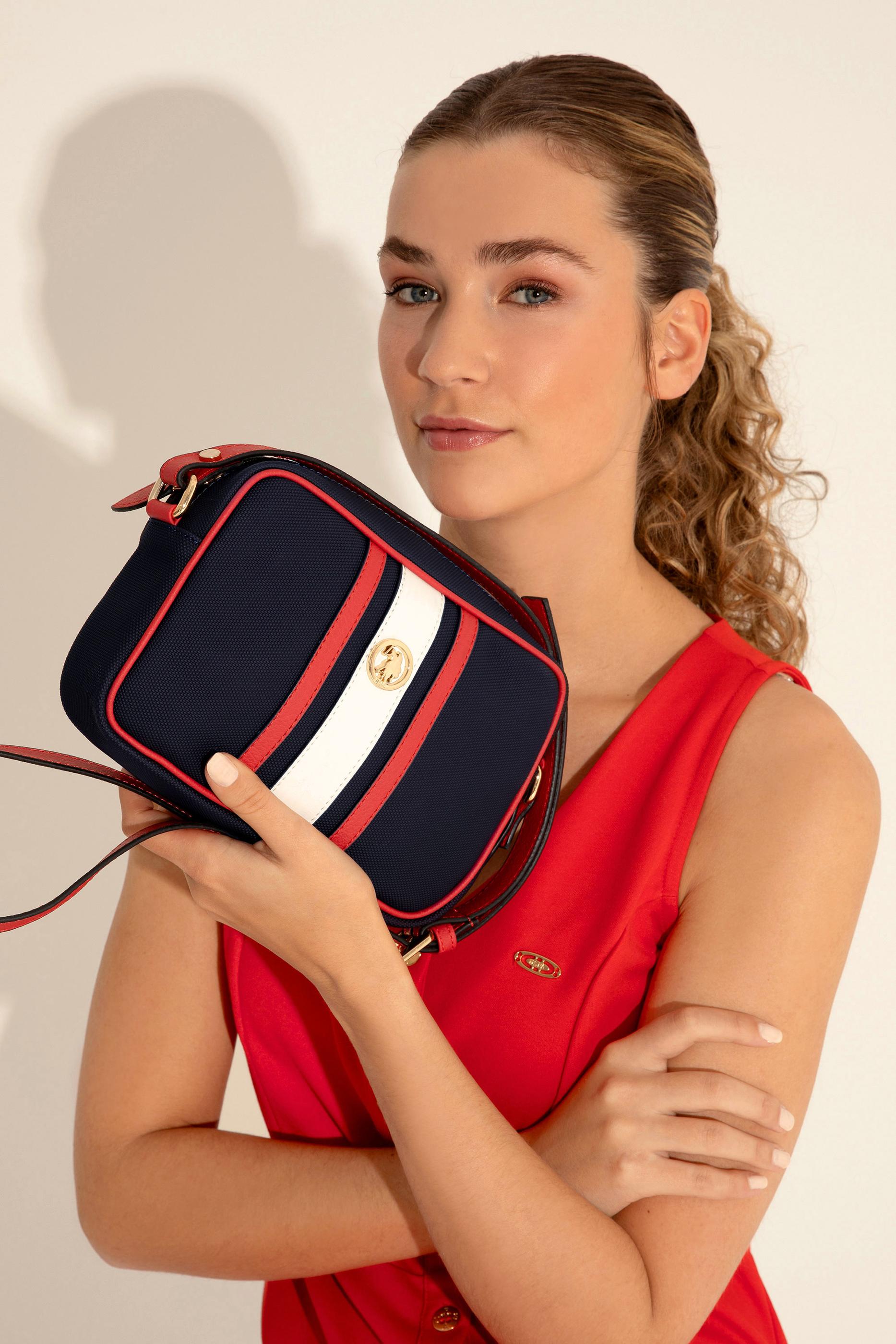U.S. Polo Assn. lacivert kadın çapraz çanta, bordo şerit detayları ve kompakt tasarımıyla sportif şıklığın en fonksiyonel hâlini sunuyor. Hafif yapısı ve ayarlanabilir omuz askısıyla gün boyu konfor sağlayan bu model, küçük boyutuna rağmen günlük temel eşyalarınızı taşıyabileceğiniz kullanışlı bir iç hacme sahiptir. Metalik logo rozetiyle tamamlanan tasarım, hem denim pantolonlar hem de casual elbiselerle kolayca kombinlenebilir. Hafta sonu gezilerinden şehir içi rutinlere kadar her ana eşlik edebilecek bu çanta, dinamik bir stilin vazgeçilmez parçasıdır.
