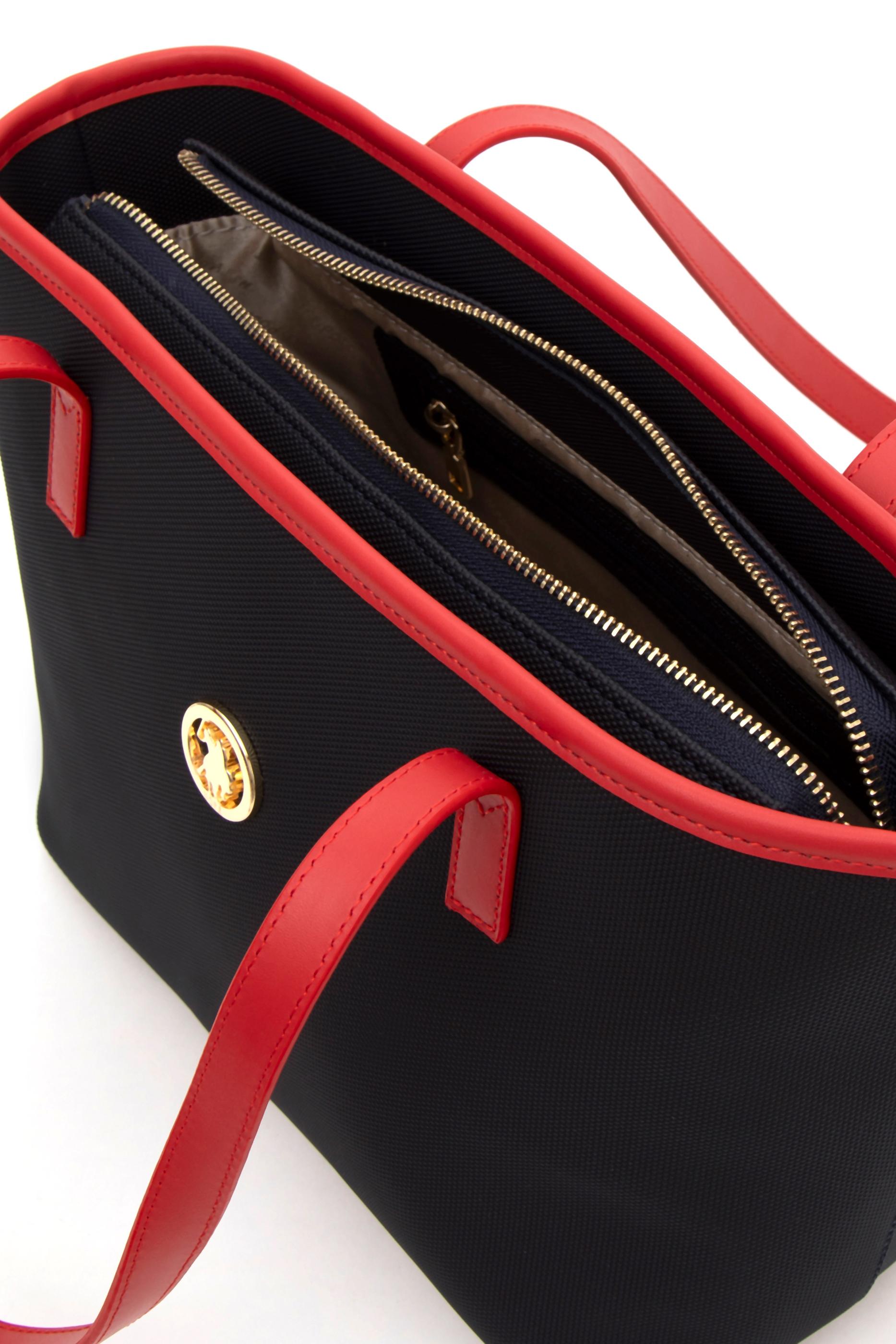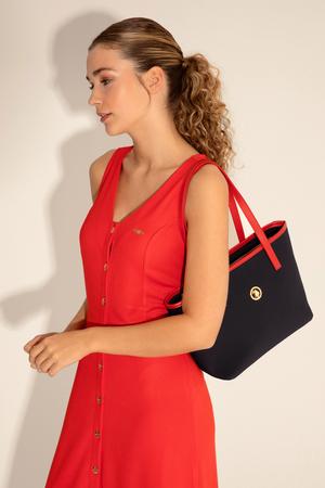 Lacivertin asaletiyle kırmızının enerjisini buluşturan U.S. Polo Assn. kadın omuz çantası, günlük stilinize dinamik bir dokunuş katıyor. Hafif yapısı ve geniş iç hacmi sayesinde günlük eşyalarınızı rahatça taşıyabileceğiniz bu model, kontrast renkli sap ve kenar detaylarıyla sportif ama şık bir duruş sergiler. Üzerindeki yuvarlak metal logo rozeti tasarımı zarifçe tamamlar. Omuzda taşımaya uygun uzun sap yapısıyla konfor sunan bu çanta, özellikle hafta sonu kombinlerinden yazlık şehir stiline kadar birçok farklı görünüme kolayca uyum sağlar.