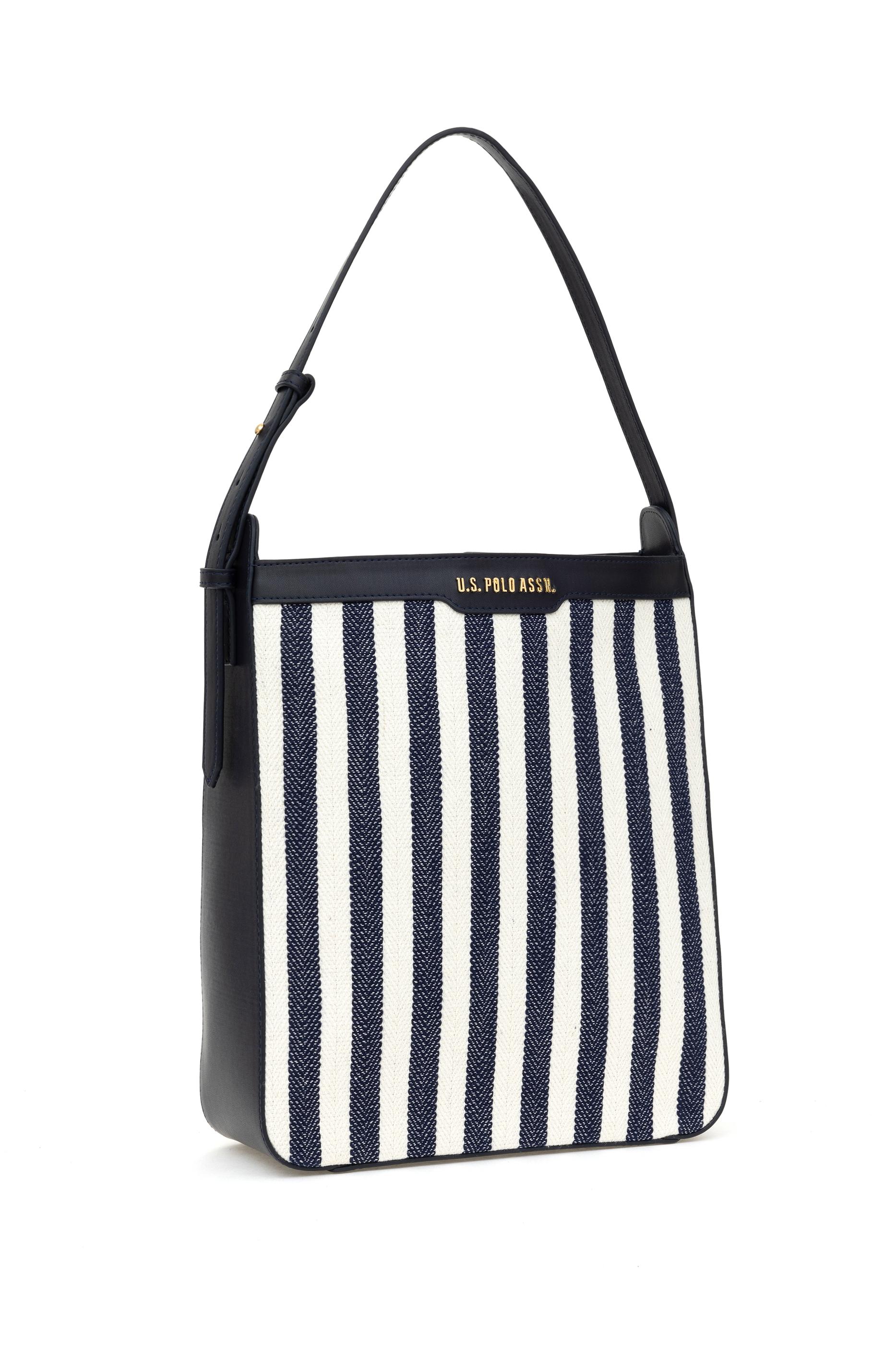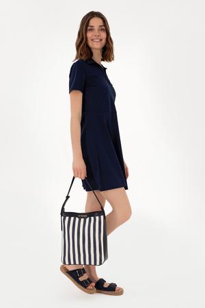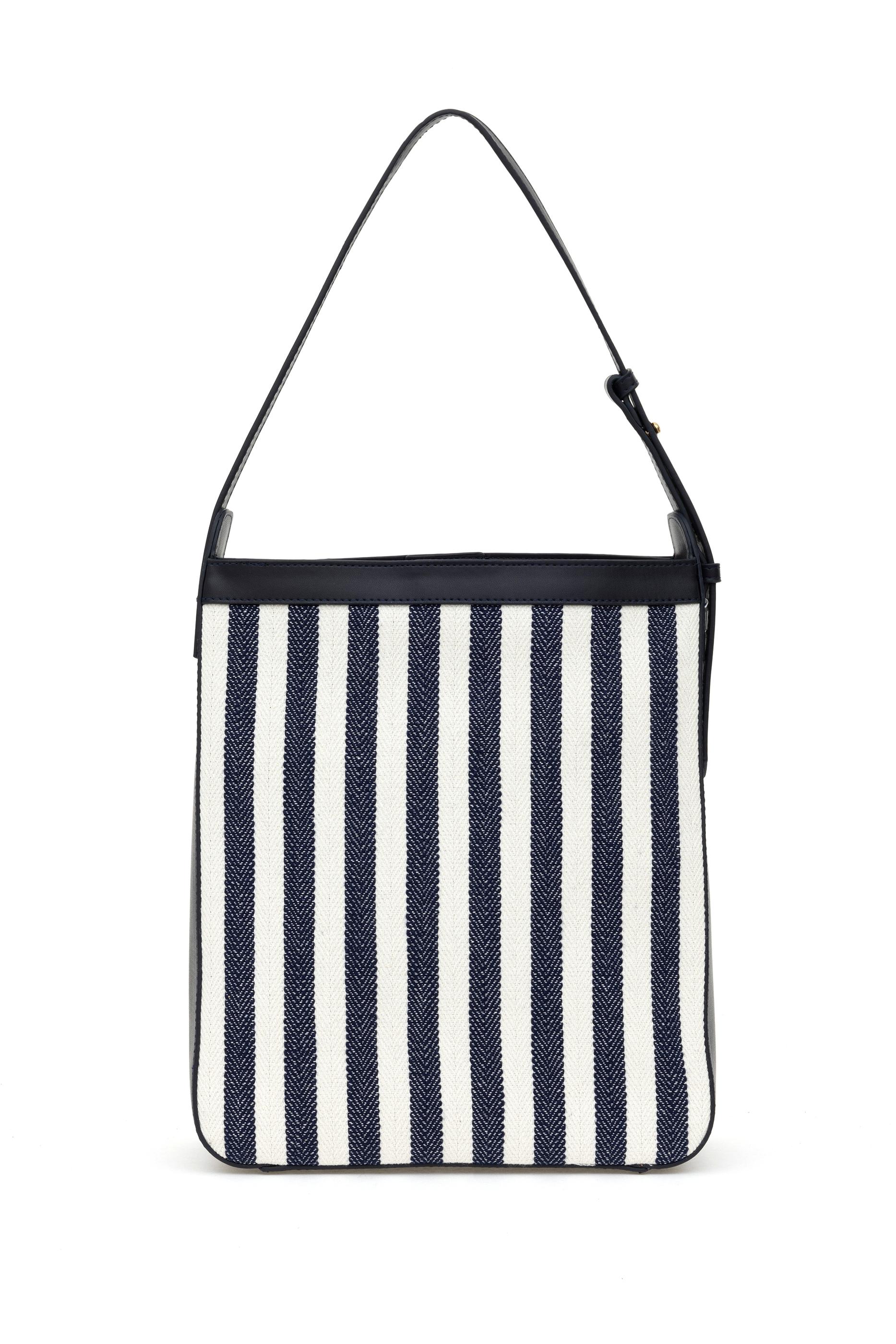 - Kadın Lacivert Çizgili Kanvas Kol Çantası