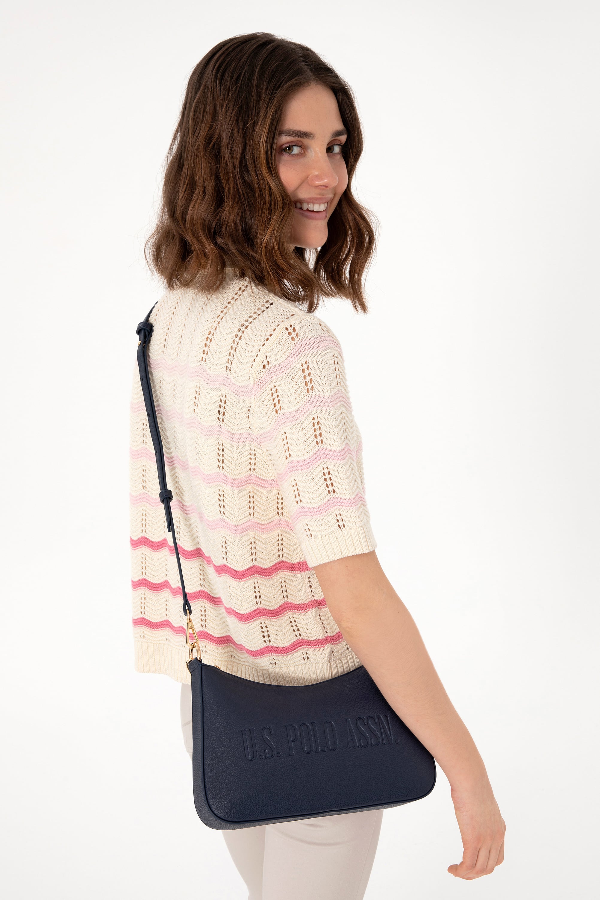 Zarafeti yalın bir formda sunan bu lacivert uzun askılı kol çantası, gold metal detaylarıyla şıklığını göz alıcı bir incelikle tamamlıyor. Yumuşak hatlara sahip kıvrımlı yapısı ve ayarlanabilir askısı sayesinde hem omuz hem çapraz kullanımda maksimum konfor sunar. Gündüzden geceye geçişte stilinizi sade ama etkileyici bir dokunuşla tamamlayan bu model, açık renk tonlarıyla yaz kombinlerinin vazgeçilmez tamamlayıcısı olmaya aday. Hem fonksiyonel hem de zamansız bir duruş arayanlar için ideal bir tercih.