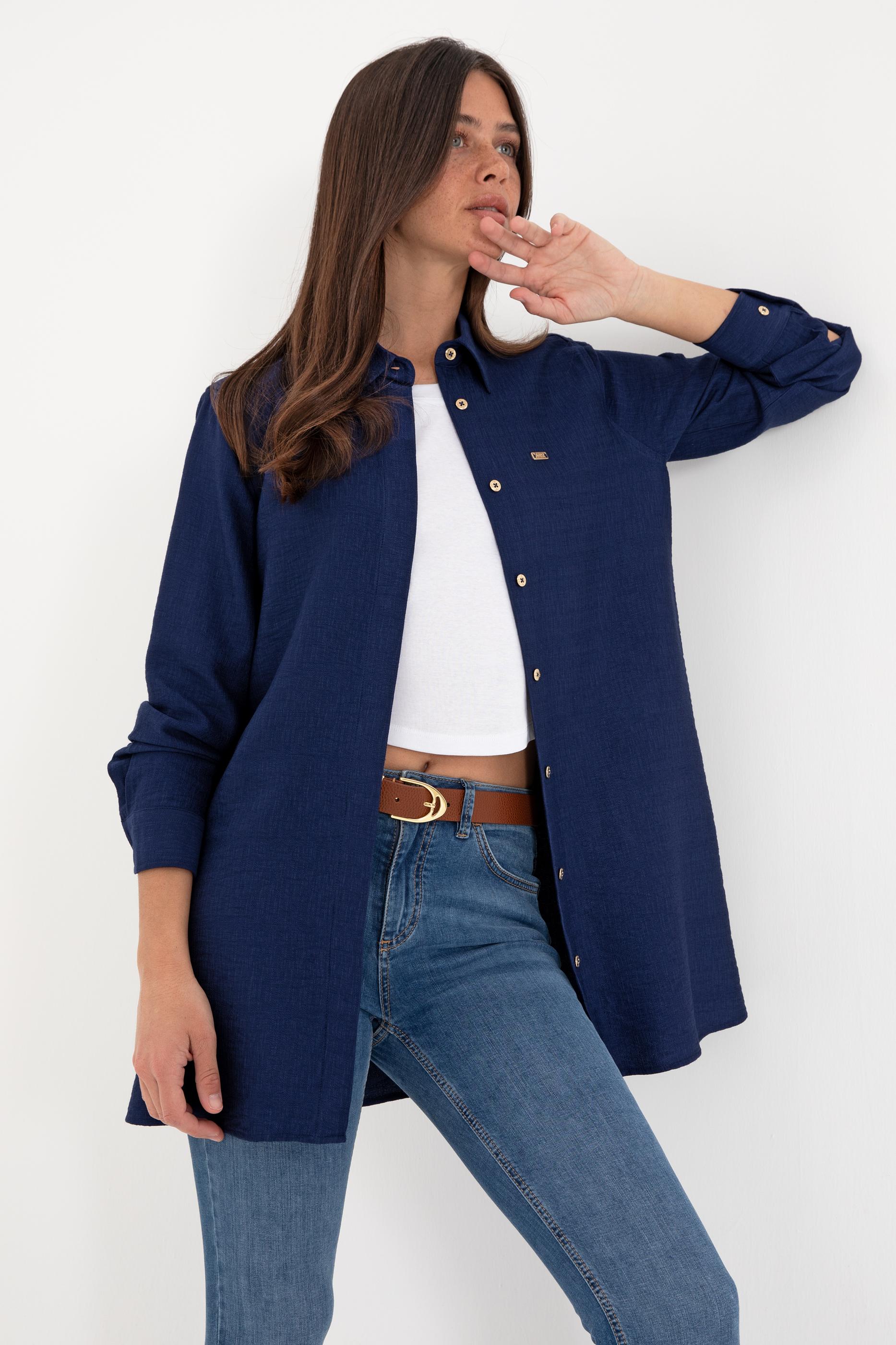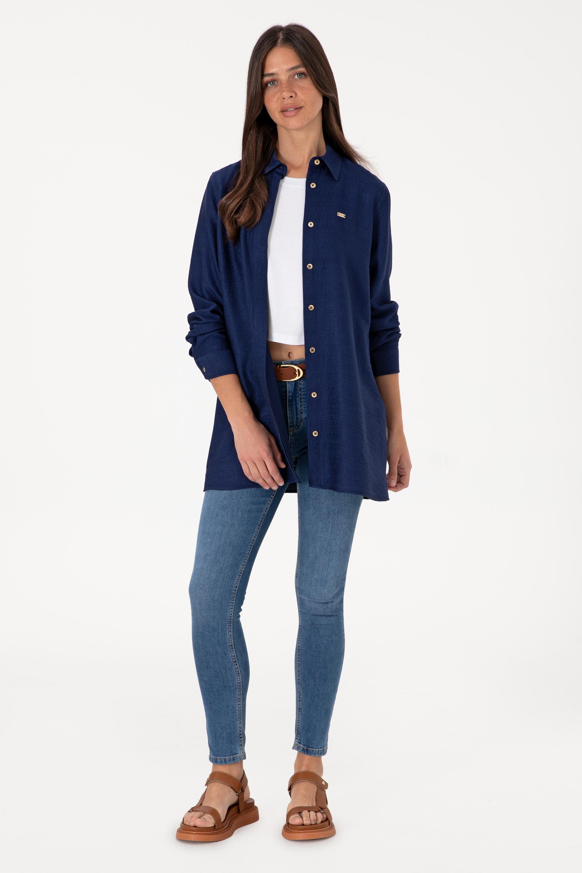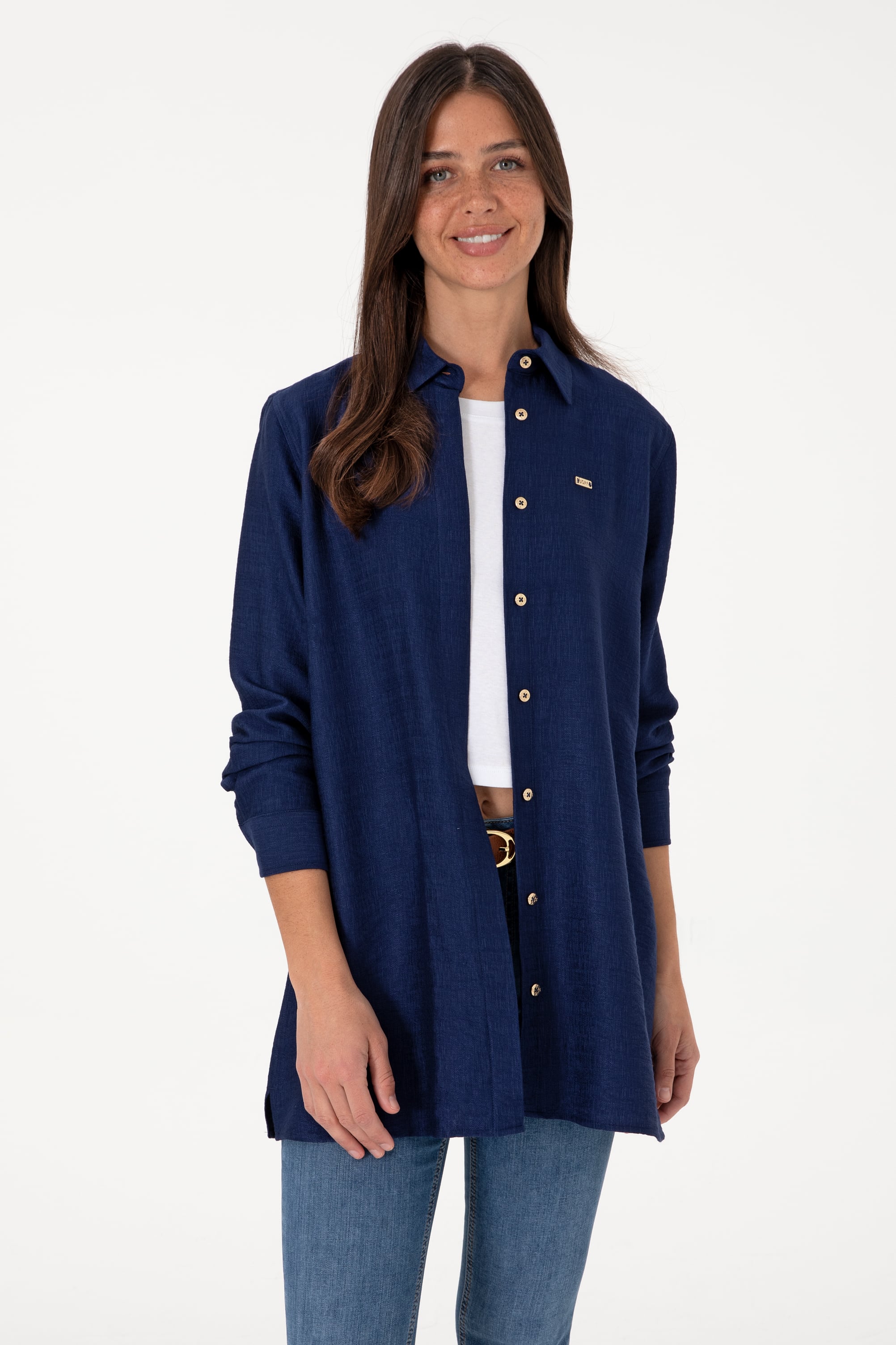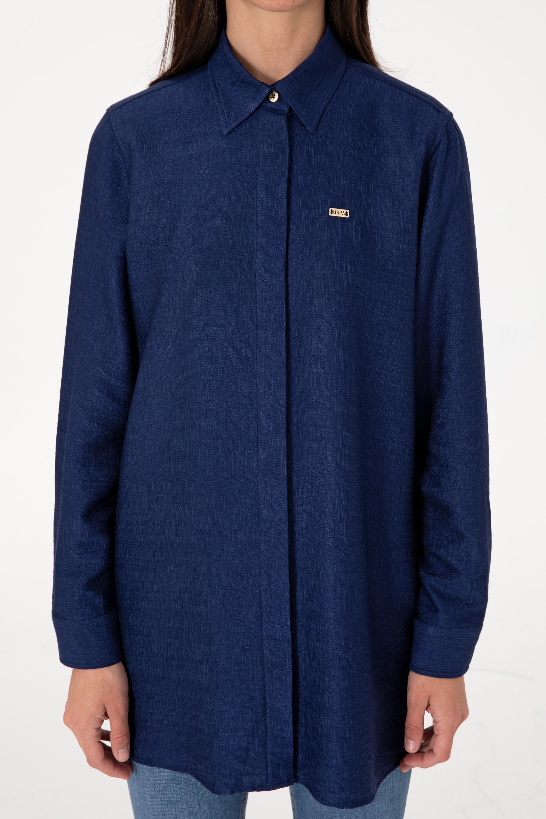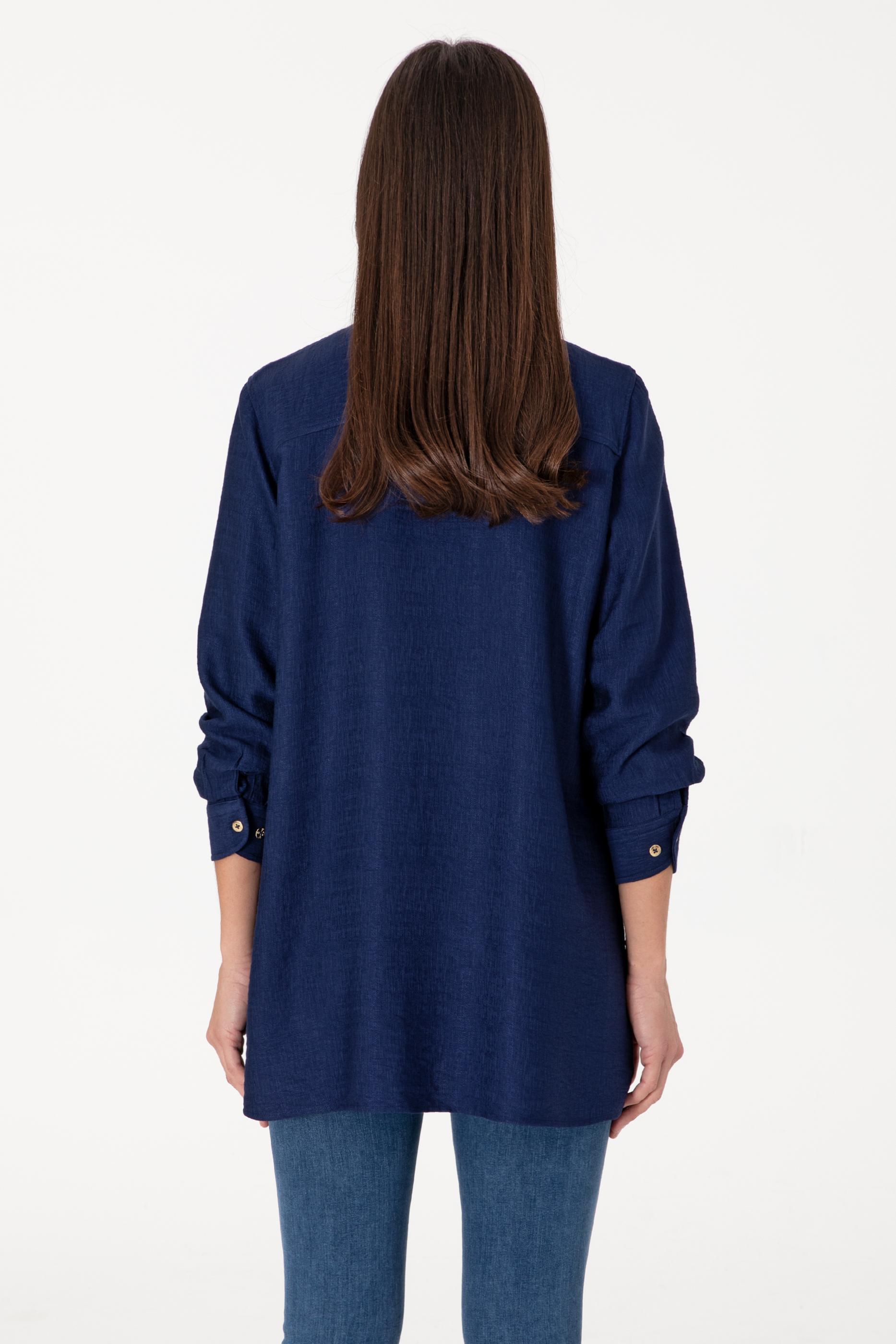 - Kadın Lacivert Dokuma Tunik Gömlek