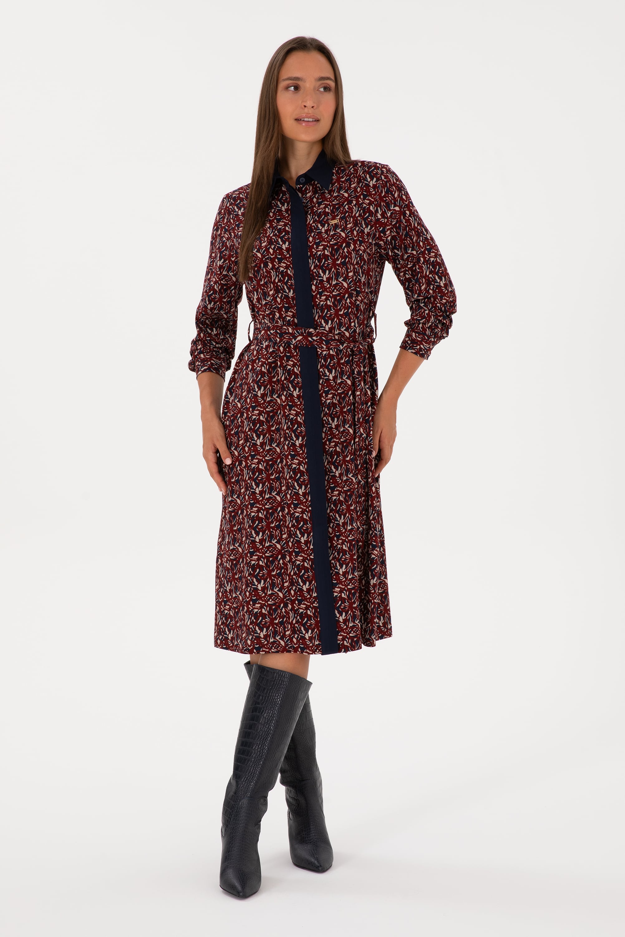 - Kadın Lacivert Kemerli Dokuma Elbise