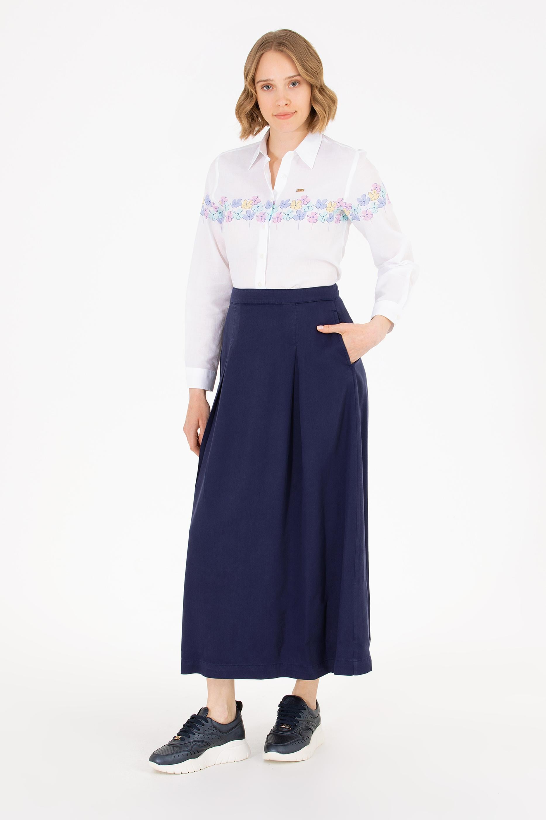 Kadın Lacivert Dokuma Etek