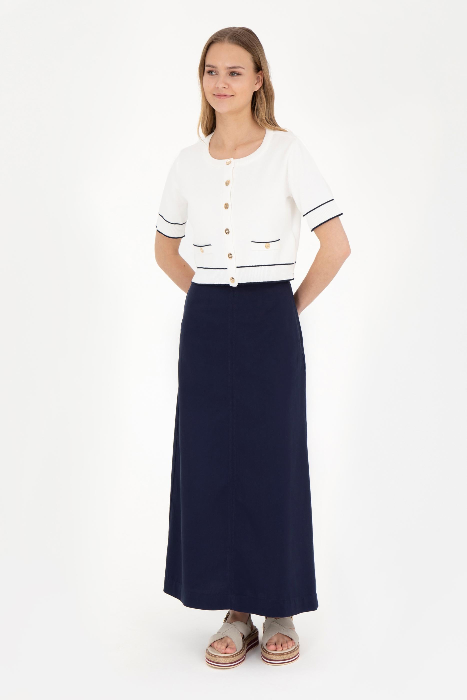 Kadın Lacivert Maxi Boy Dokuma Etek