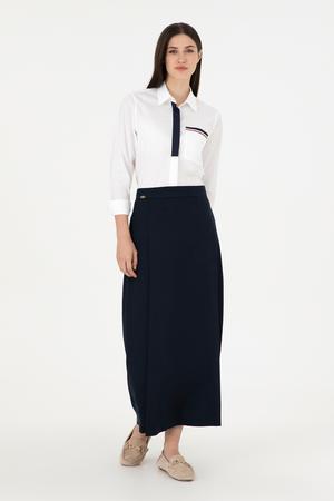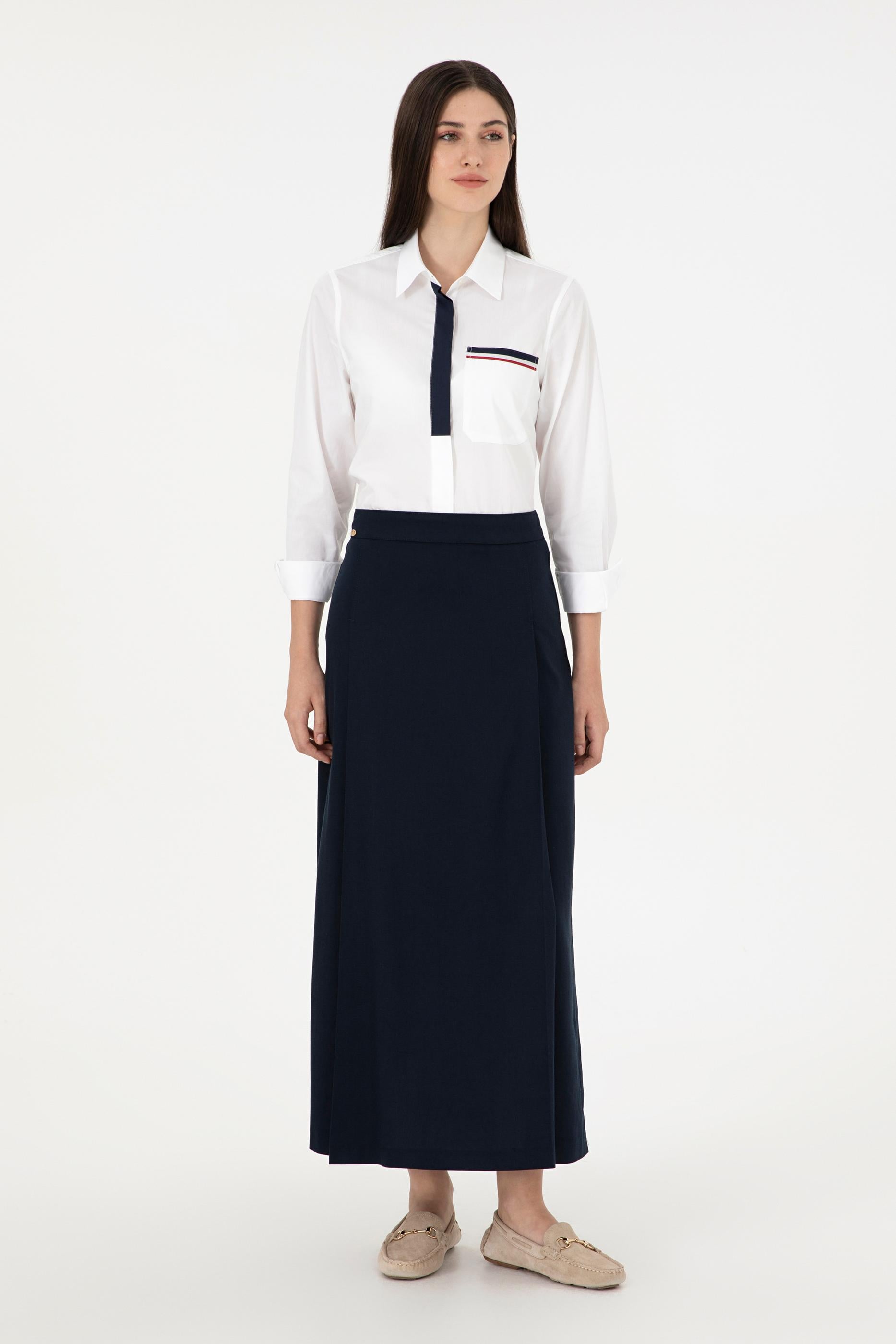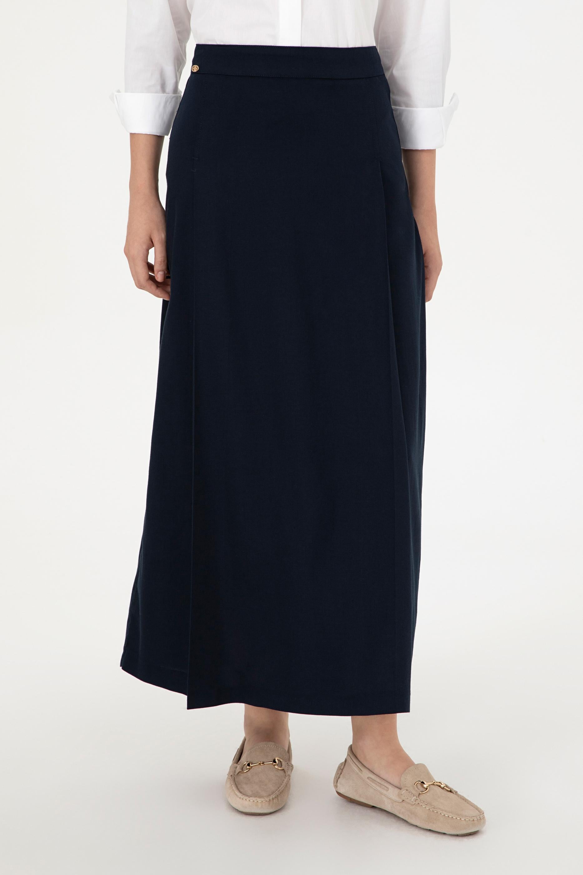 Kadın Lacivert Maxi Boy Dokuma Etek