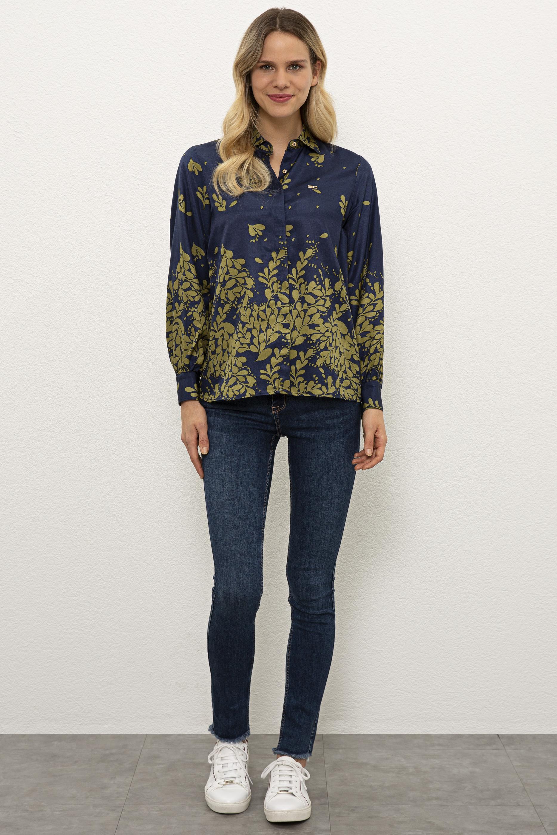 Kadın Lacivert Gömlek Uzunkol