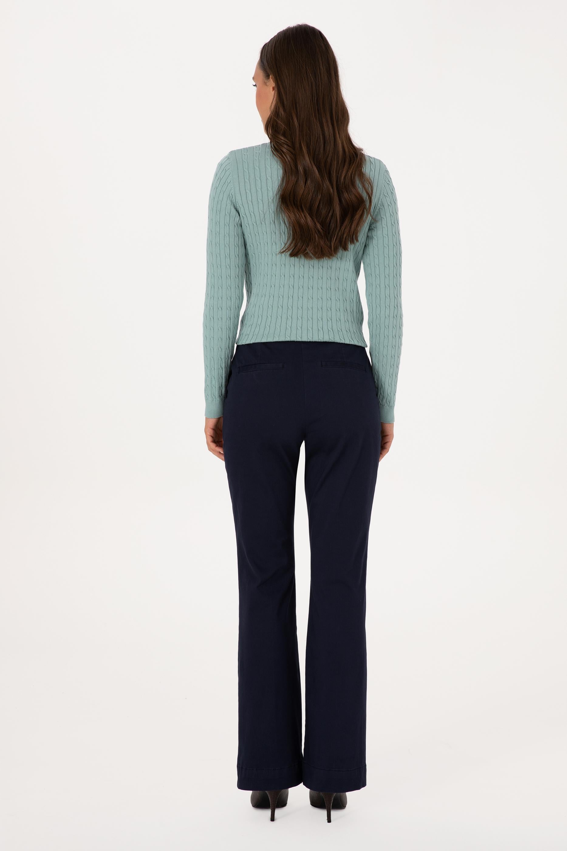 - Kadın Lacivert Slim Flare Fit Kanvas Pantolon