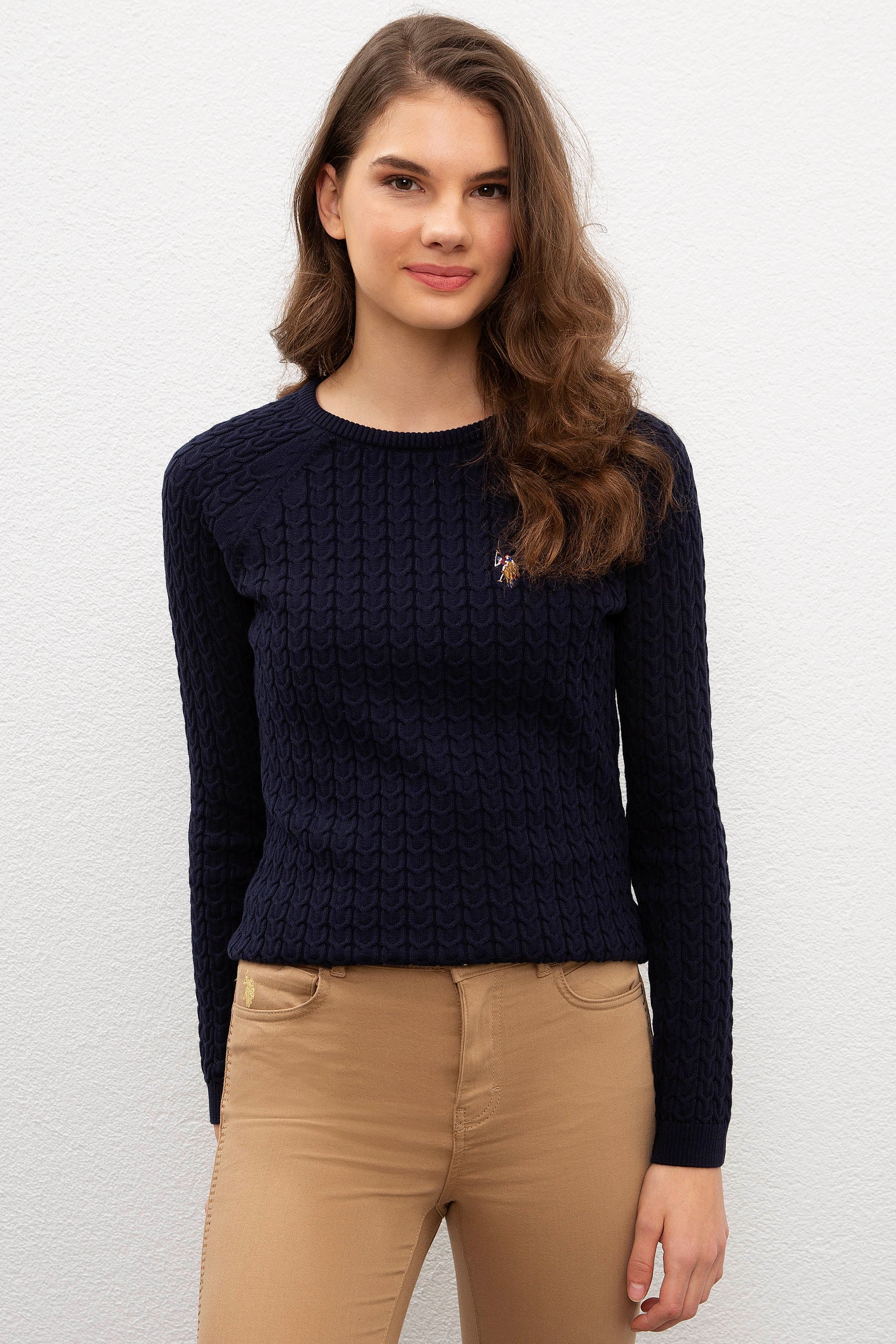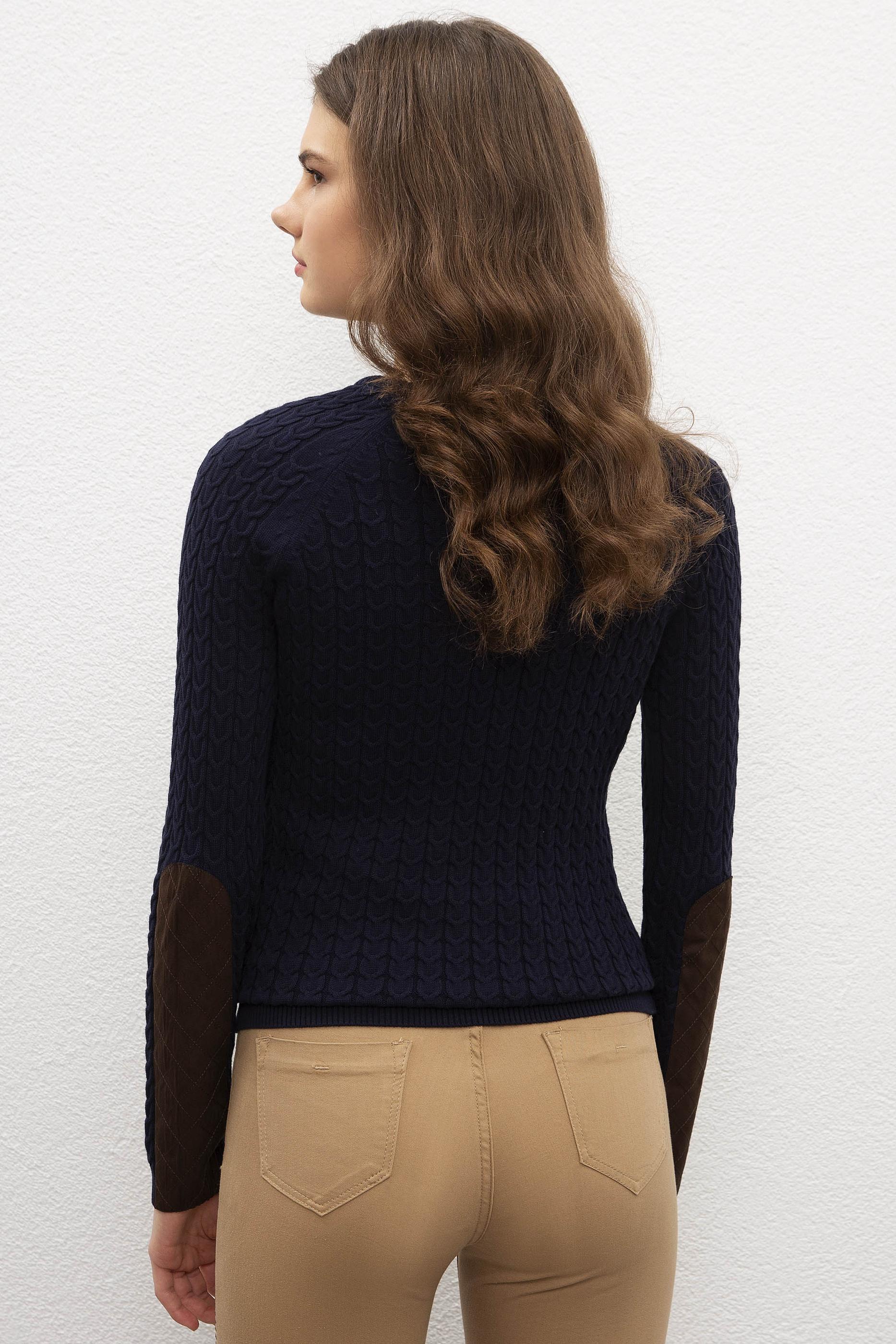 Formda görünüm sunan slim fit kadın triko kazak modelimiz saç örgüsü detaylarla benzersiz bir tasarım niteliği kazanıyor.