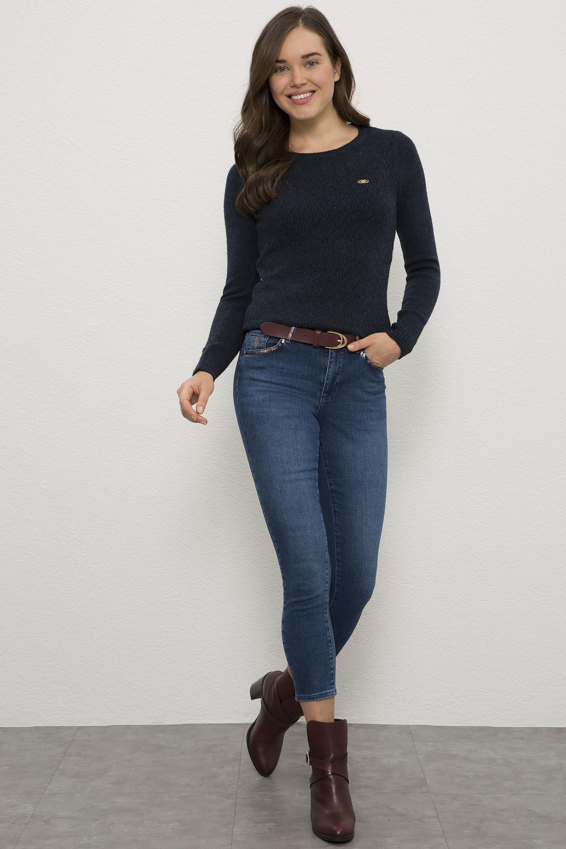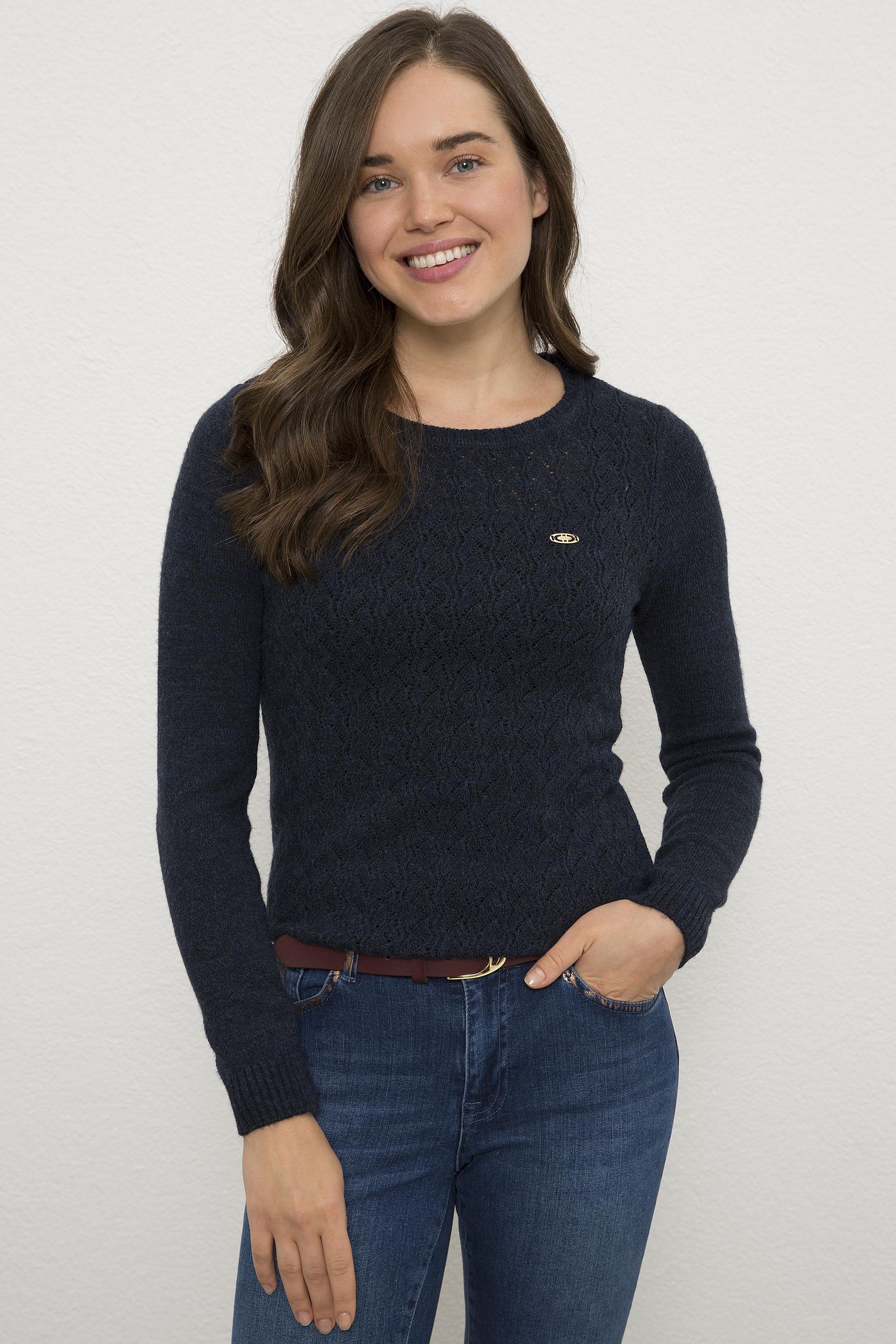 Slim fit kesimiyle vücudunuza oturarak güzel bir görünüm sağlayan bisiklet yaka ajurlu kadın triko kazağımız ile tüm gözler üzerinizde olacak.