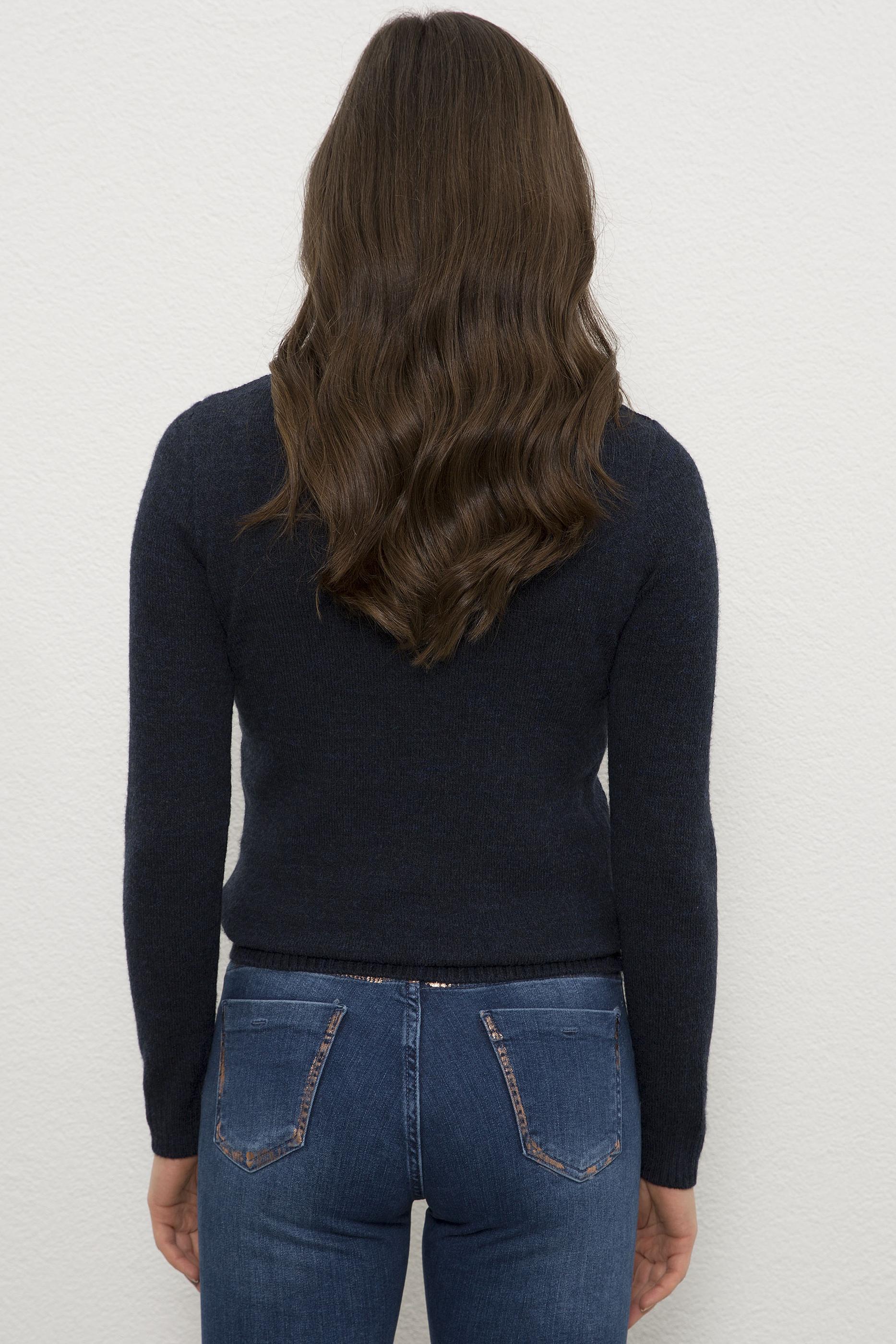 Akrilik, polyester ve poliamid karışımlı bisiklet yaka kadın triko kazağımız nefes alabilen yapıya sahip olduğu için cildinizi alerjik reaksiyonlara