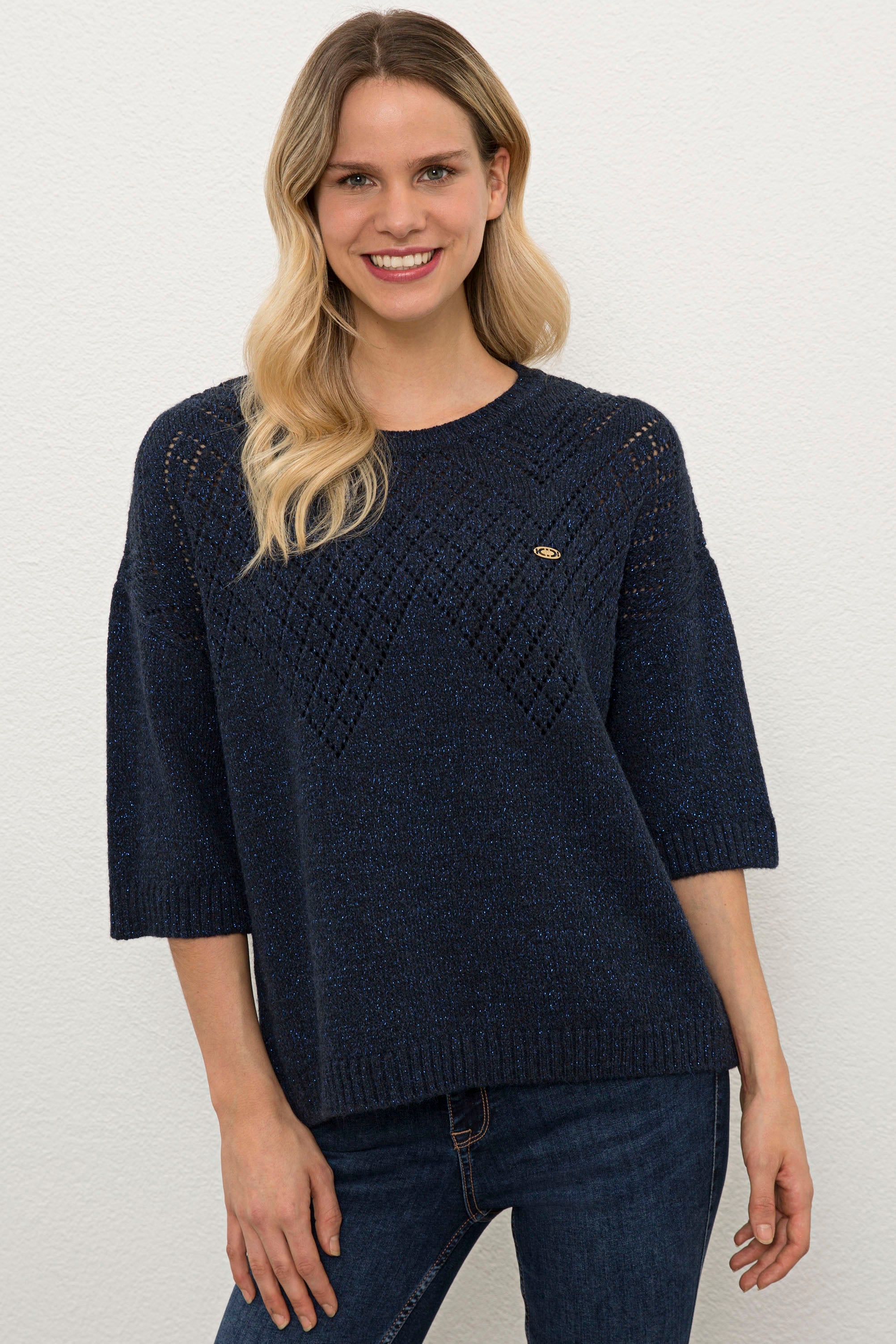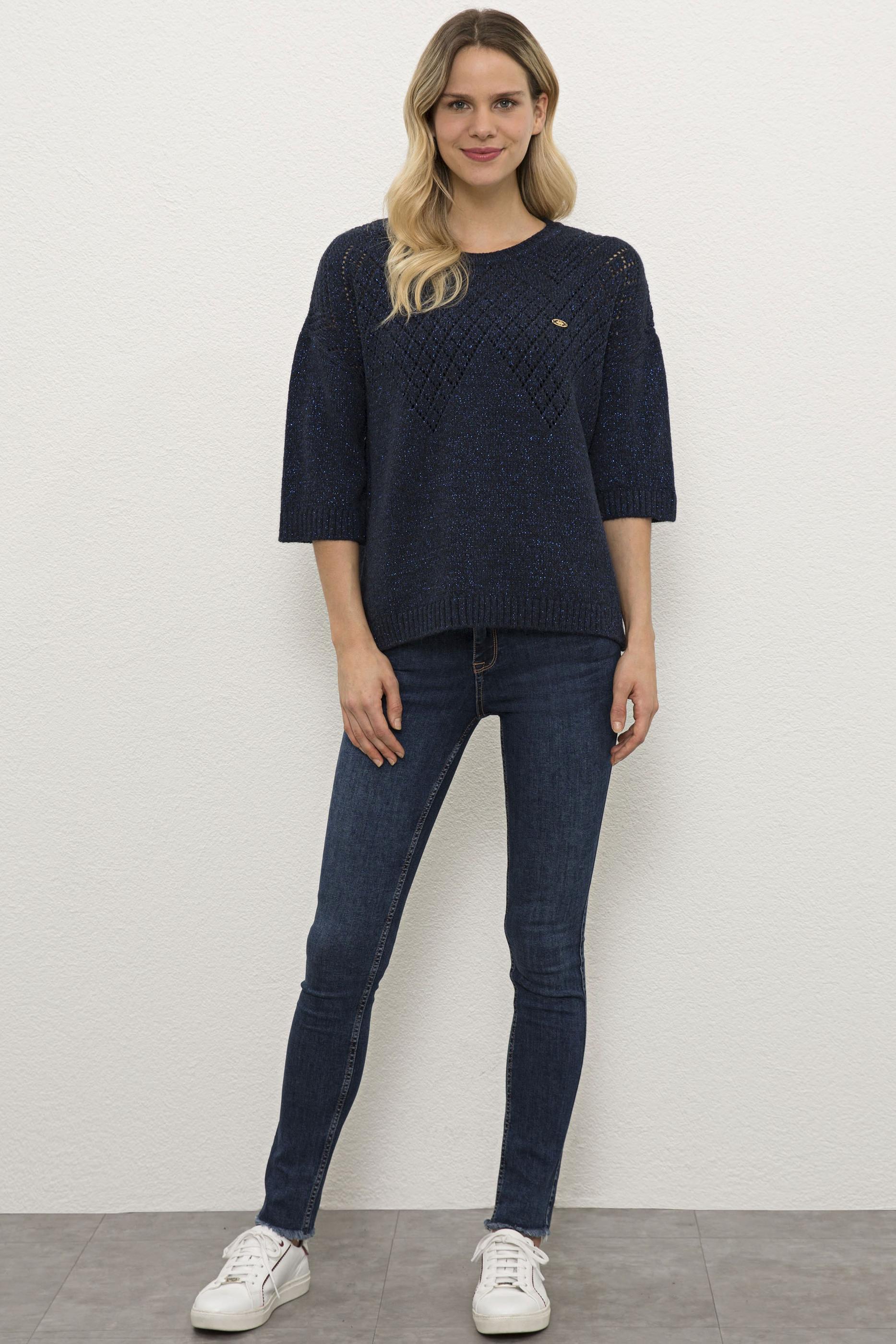Ajur detayıyla da şık görünümünü desteklediğimiz oversize kadın triko kazak modelimiz kıyafetlerinize sezon trendlerini yansıtarak dinamik