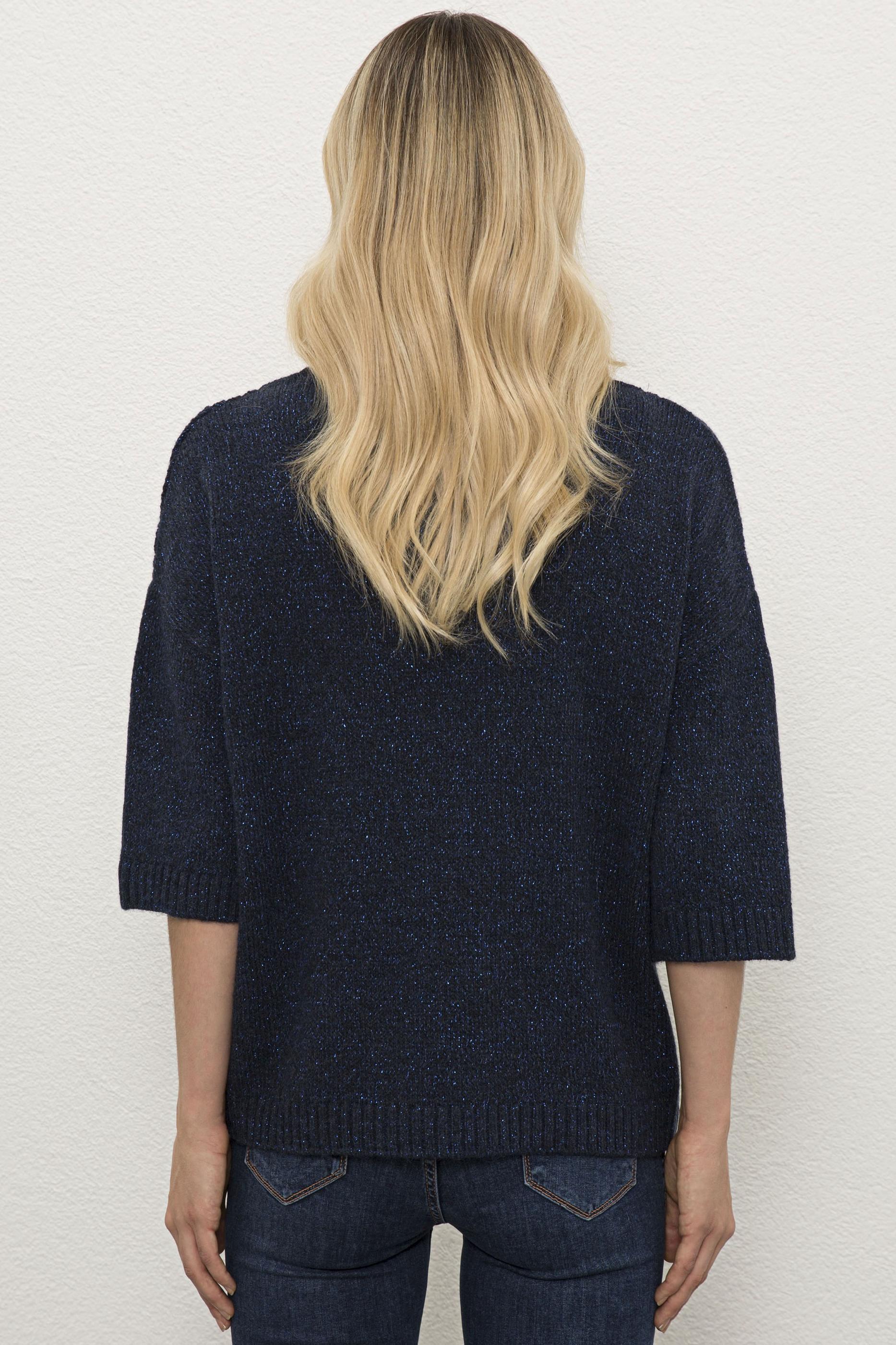 %85 akrilik, %9 poliester ve %6 polyamid karışımlı bisiklet yaka kadın triko kazak modelimiz 3/4 kol tasarımıyla öne çıkıyor.