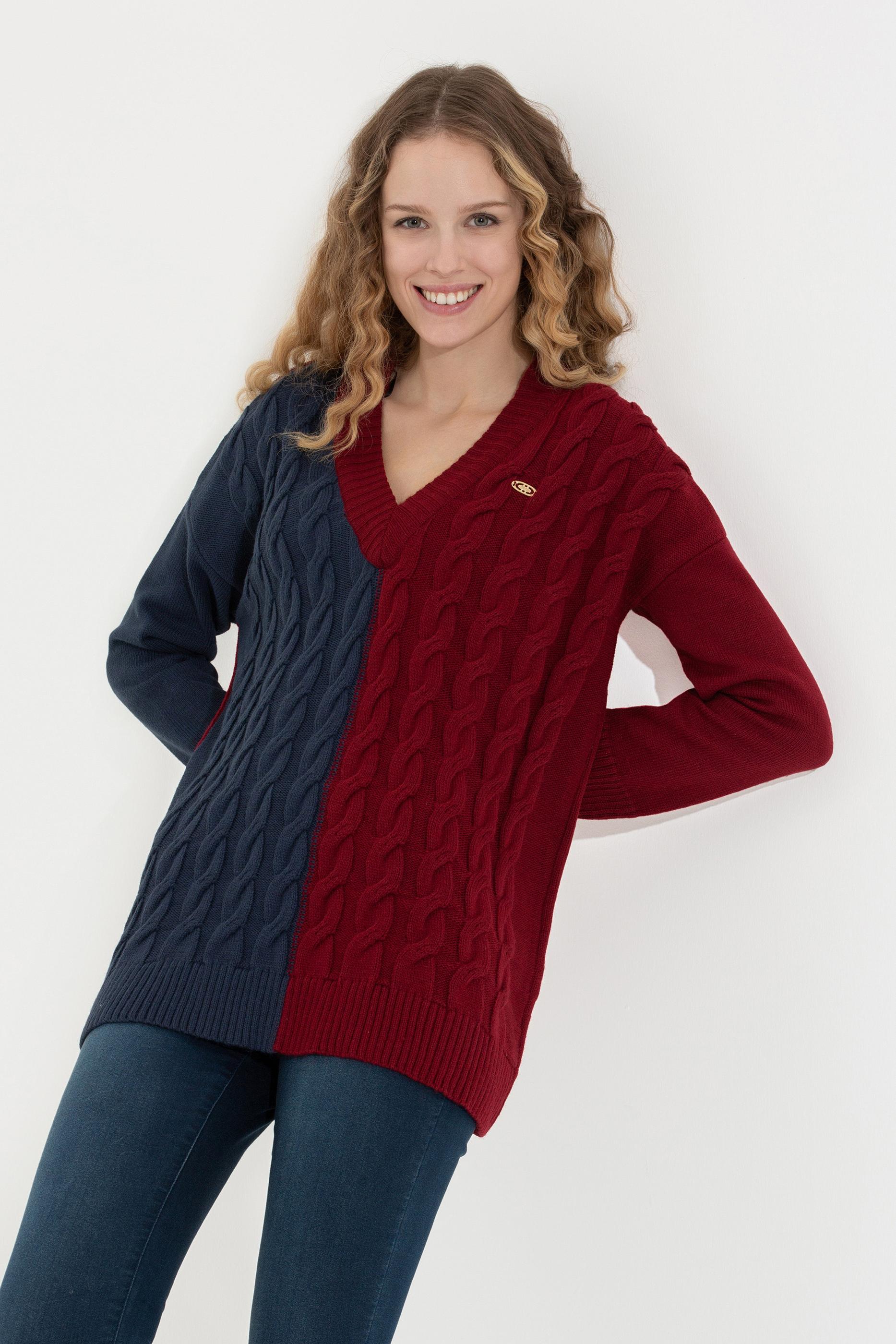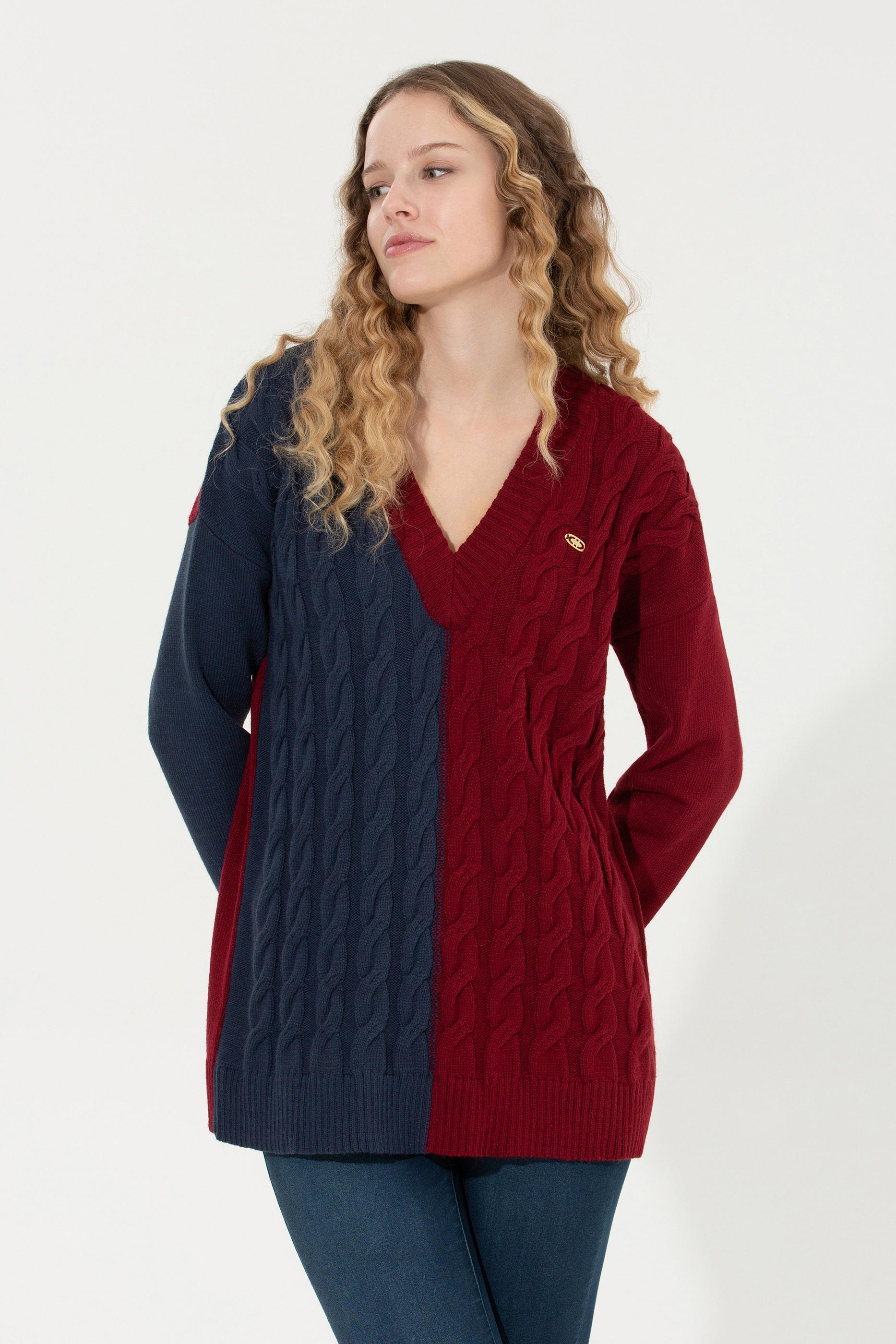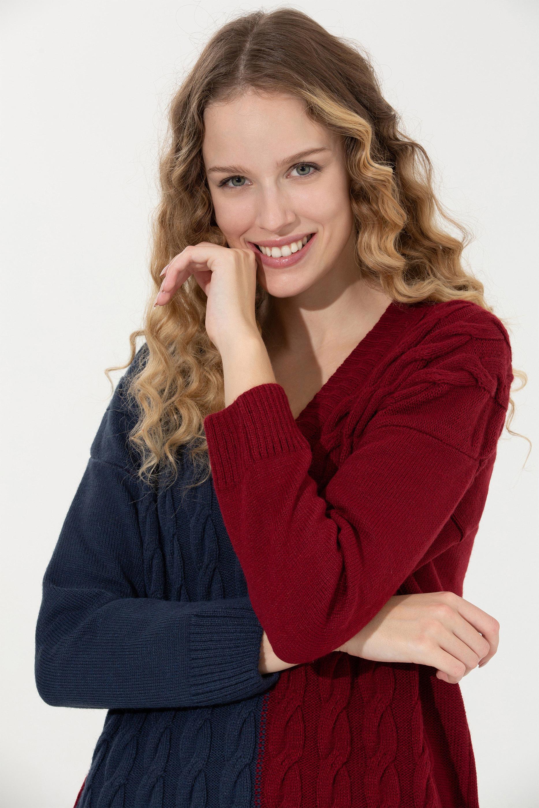 Kadın Lacivert V Yaka Kazak