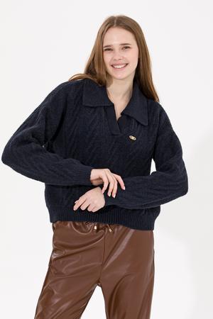 Kadın Lacivert V Yaka Kazak - 50256636008
