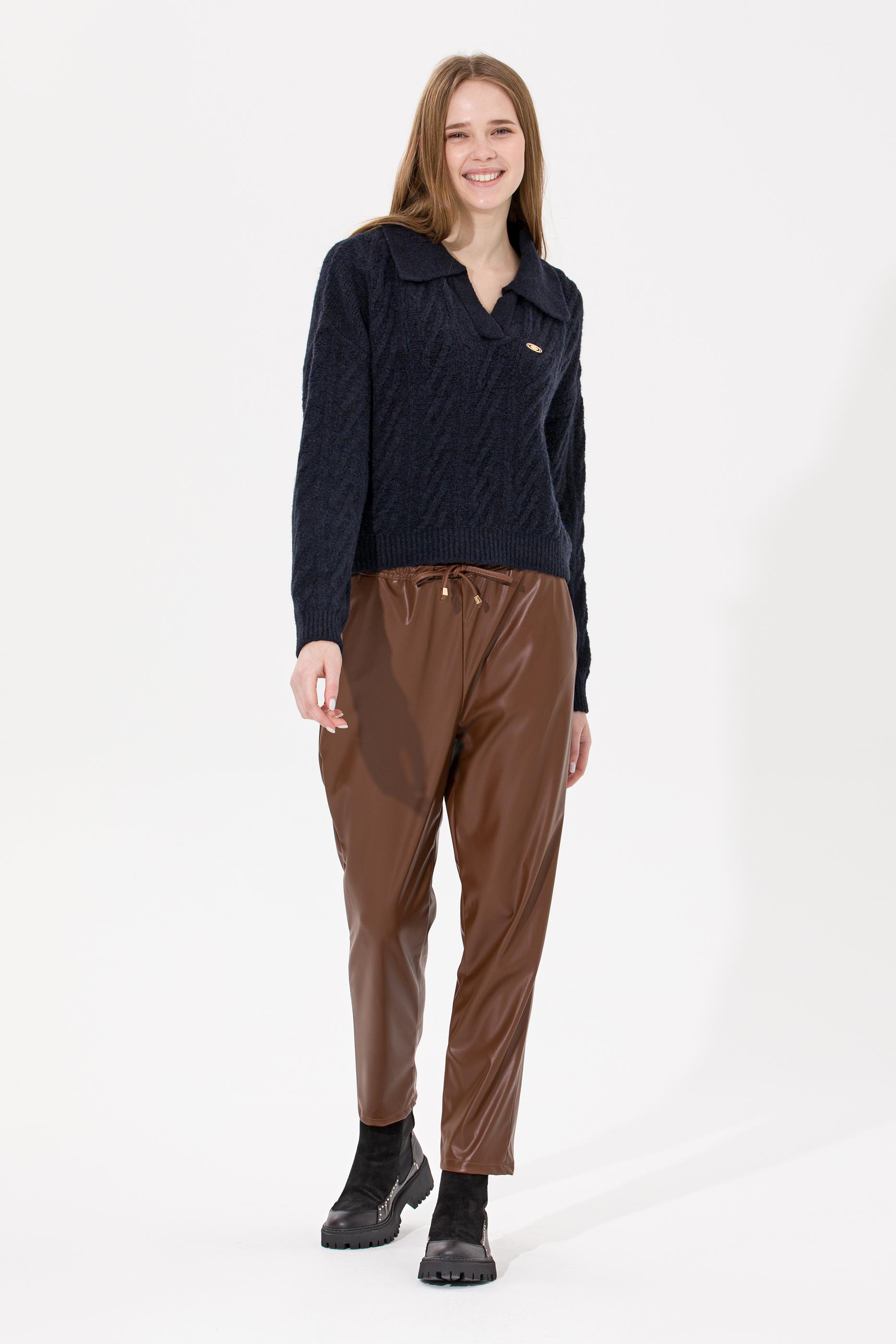 Kadın Lacivert V Yaka Kazak