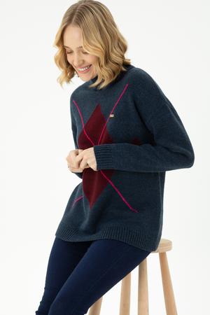 Kadın Lacivert Balıkçı Yaka Kazak